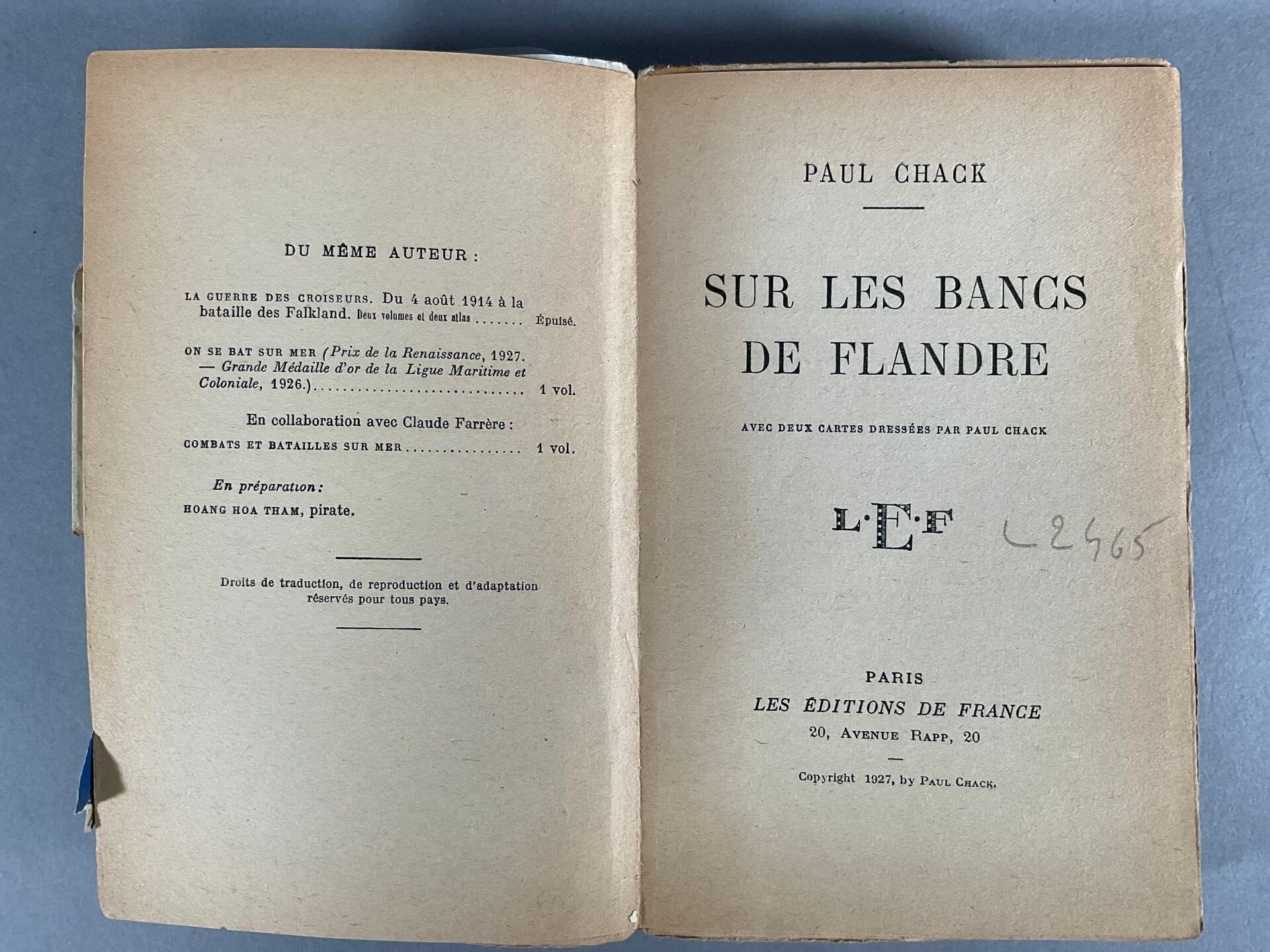 - CHACK (Paul). Sur les bancs de Flandre. In-12 paperback with dispatch.