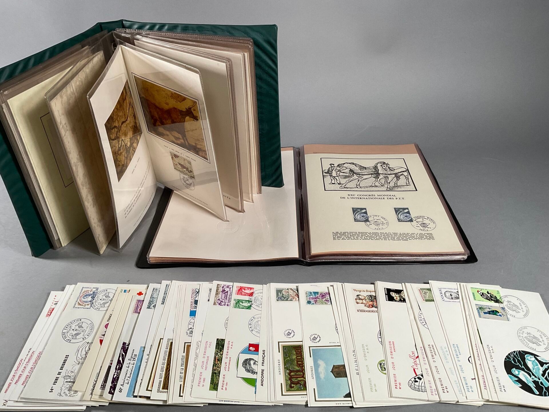 - 2 albums, including First Day stamps cancelled on their descriptive cards, some of which are numbered, around fifty stamped "Valeurs à Recouvrer" envelopes from 1936 to 1940 and various stamped envelopes from France and abroad.
