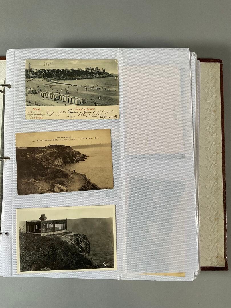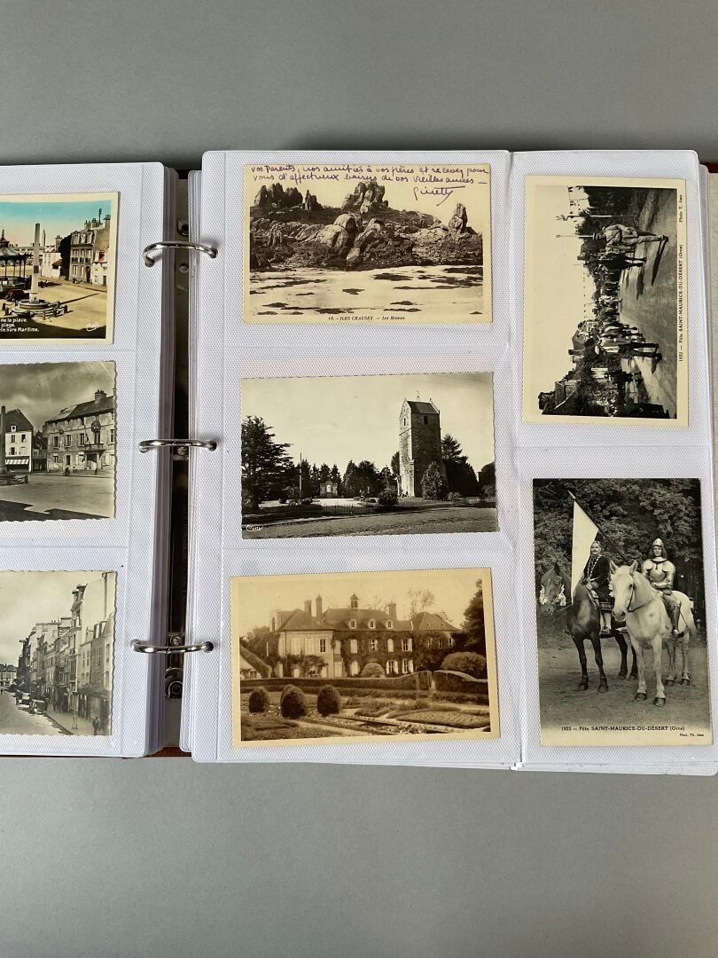 [POSTCARDS]. Album of approximately 375 old postcards on Brittany including Morlaix, Brest, Quimper, Quimperlé, Lorient, Breton costumes, French towns including Cherbourg, Angers, Cholet, Menton Cannes, Nices, the Nices carnival and miscellaneous.