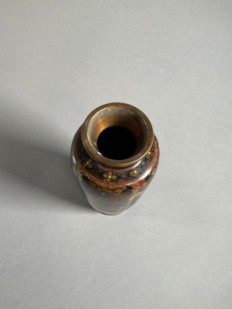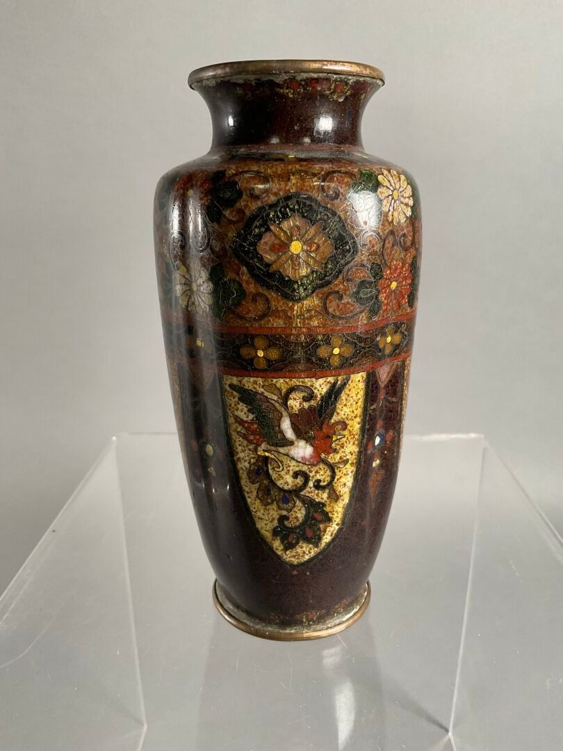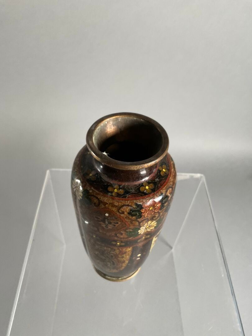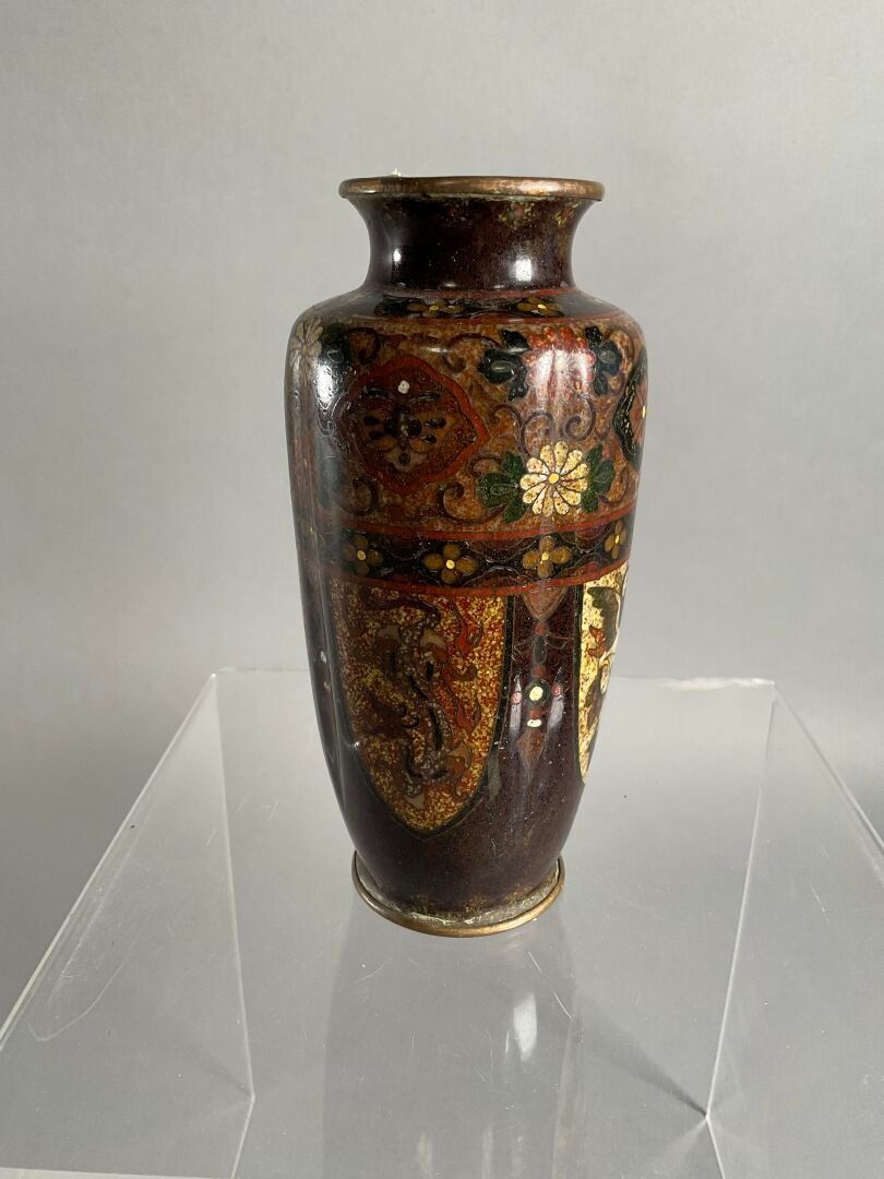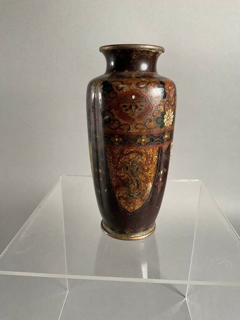 A small cloisonné copper vase decorated with dragons, birds, butterflies and flowers (Worn, chips)