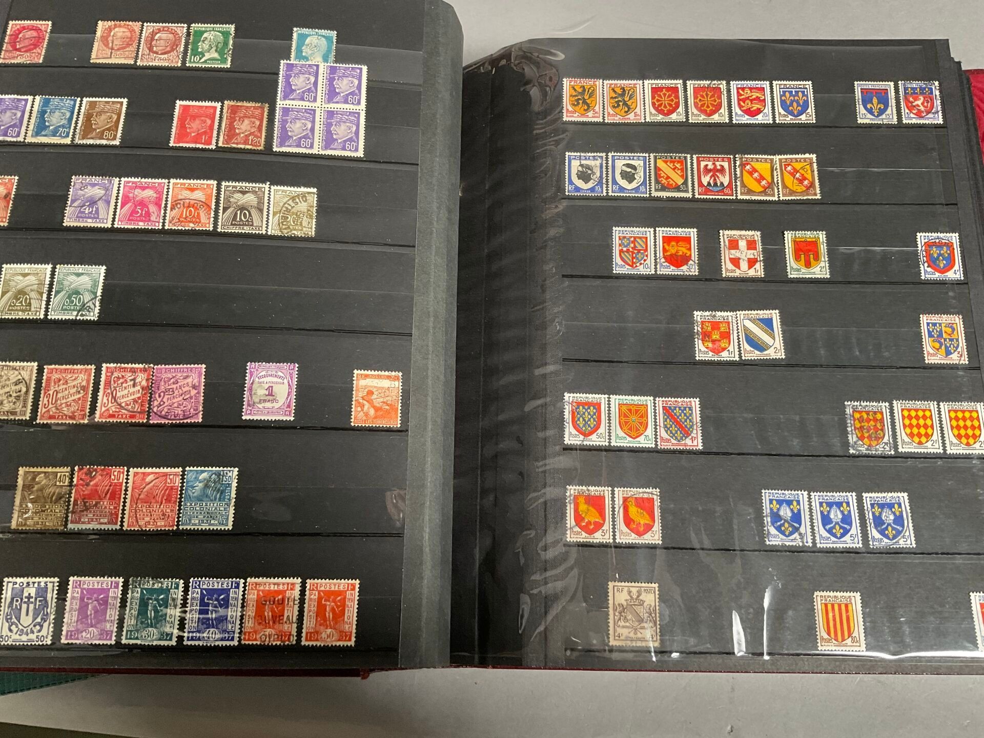 Set of 4 albums and one box of stamps, some mint, including …