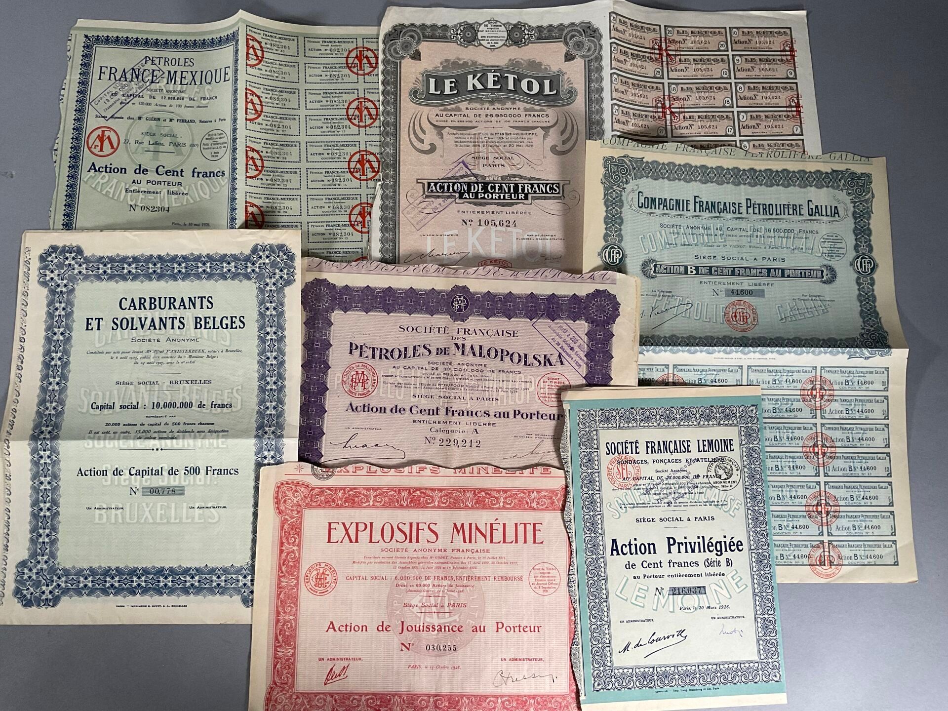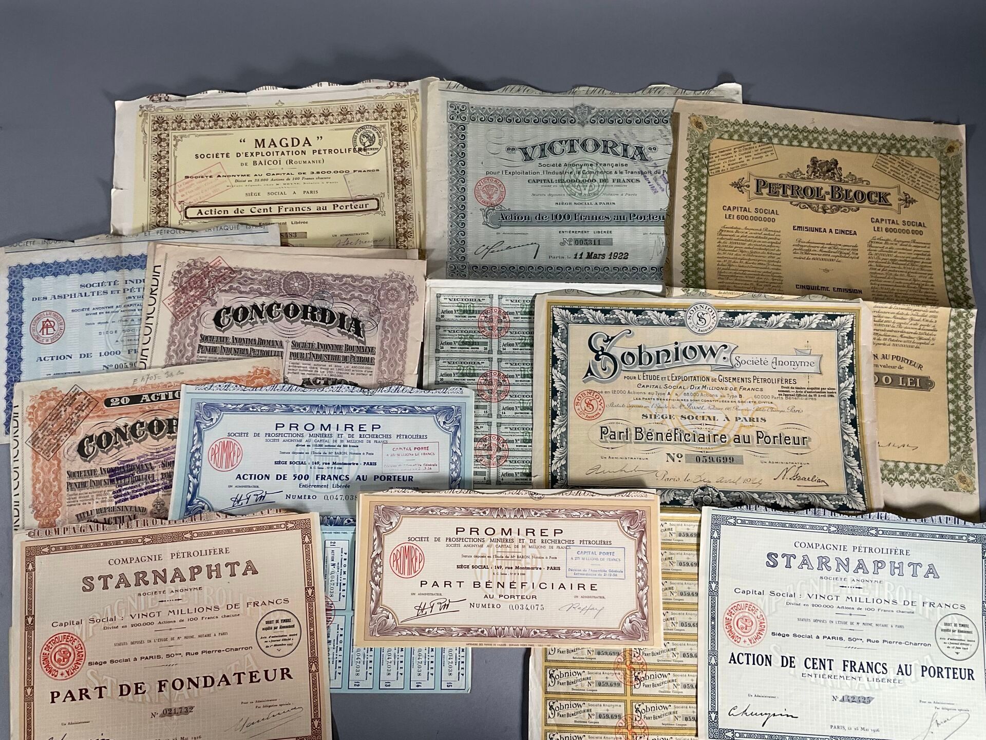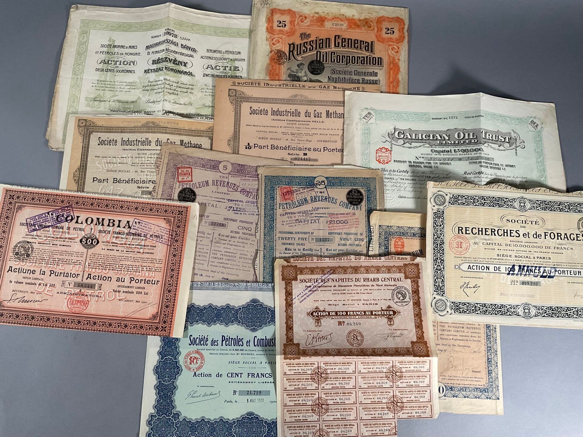 Batch of bearer shares of oil companies dating from the beginning of the