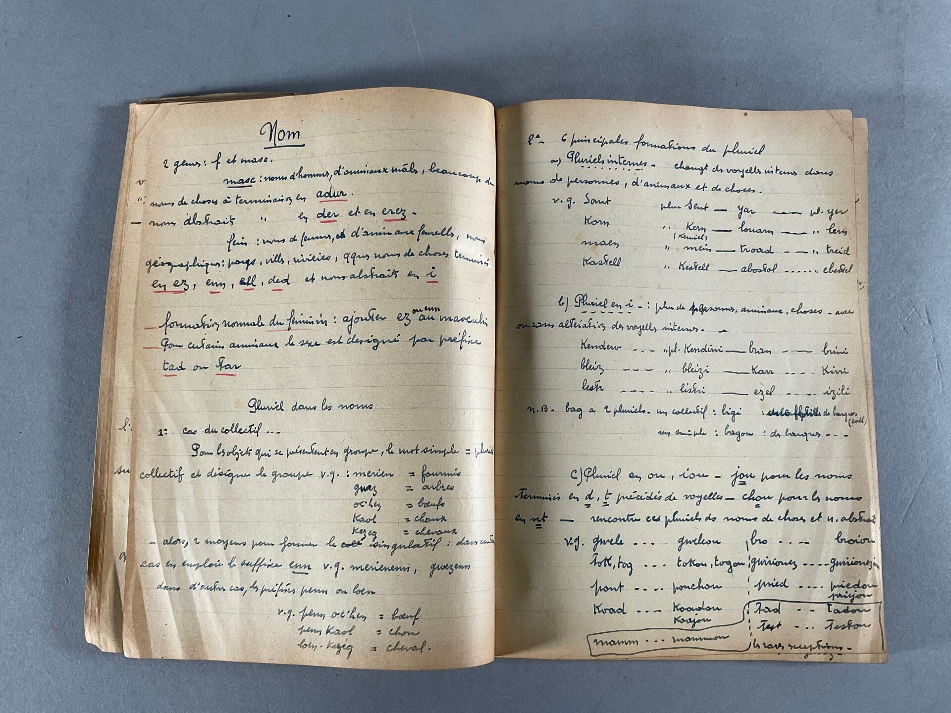 Manuscript Breton-French lexicon produced around 1940. In the volume