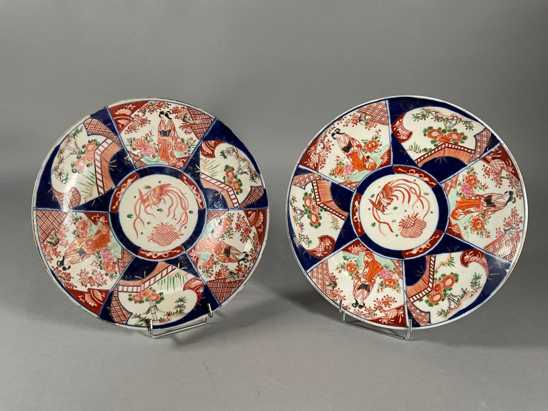 Pair of polychrome enamelled porcelain dishes with IMARI dec…