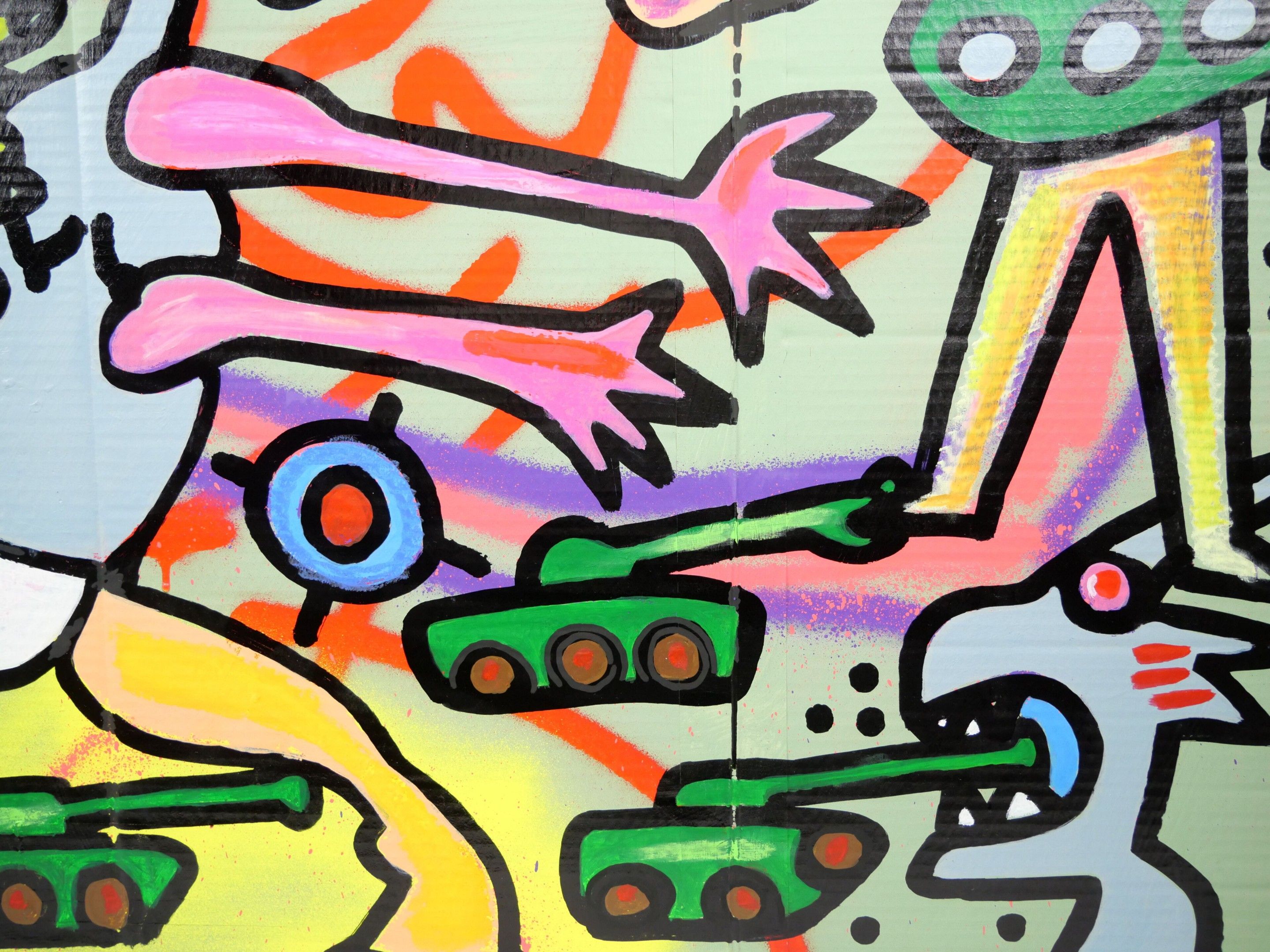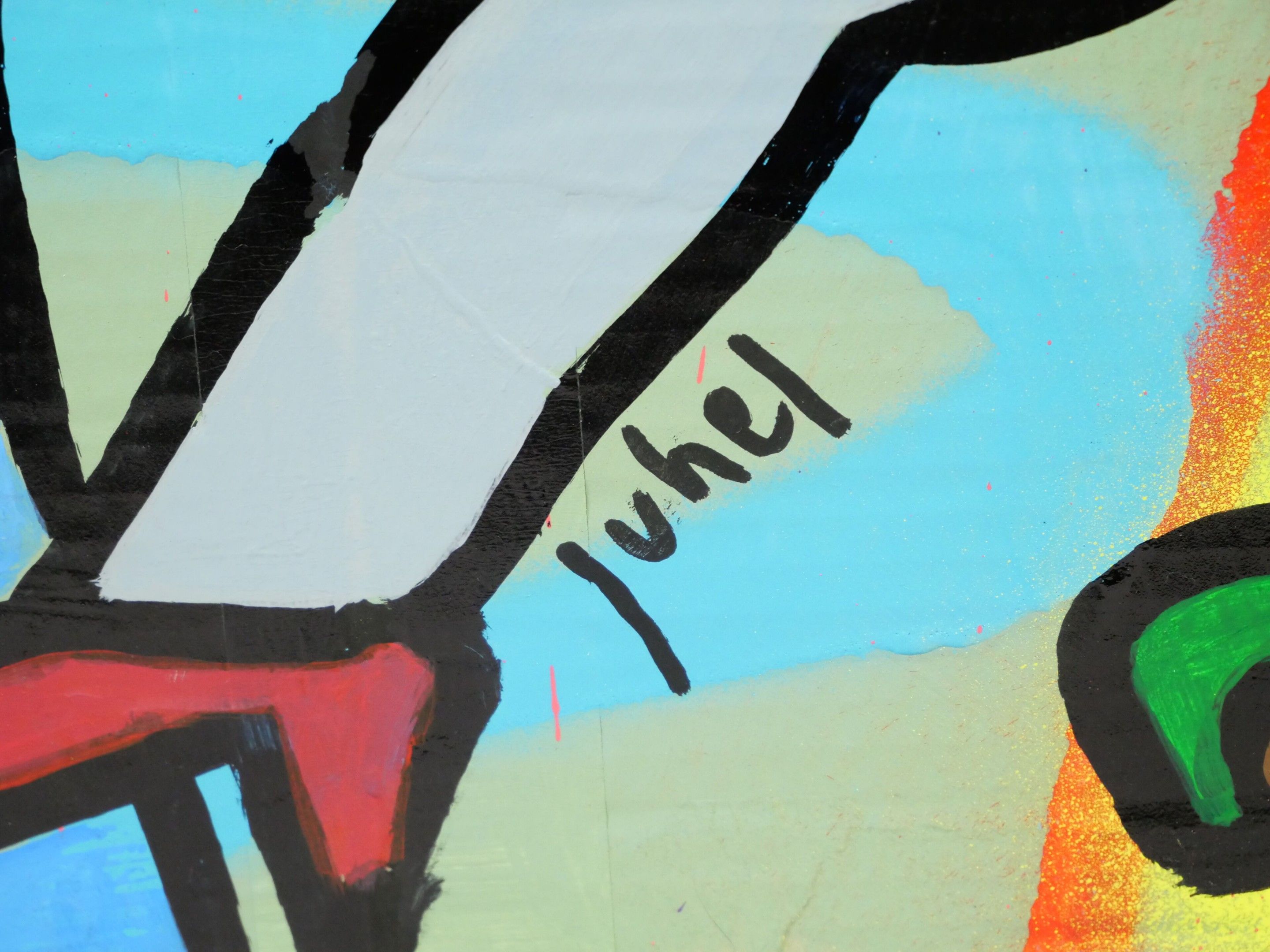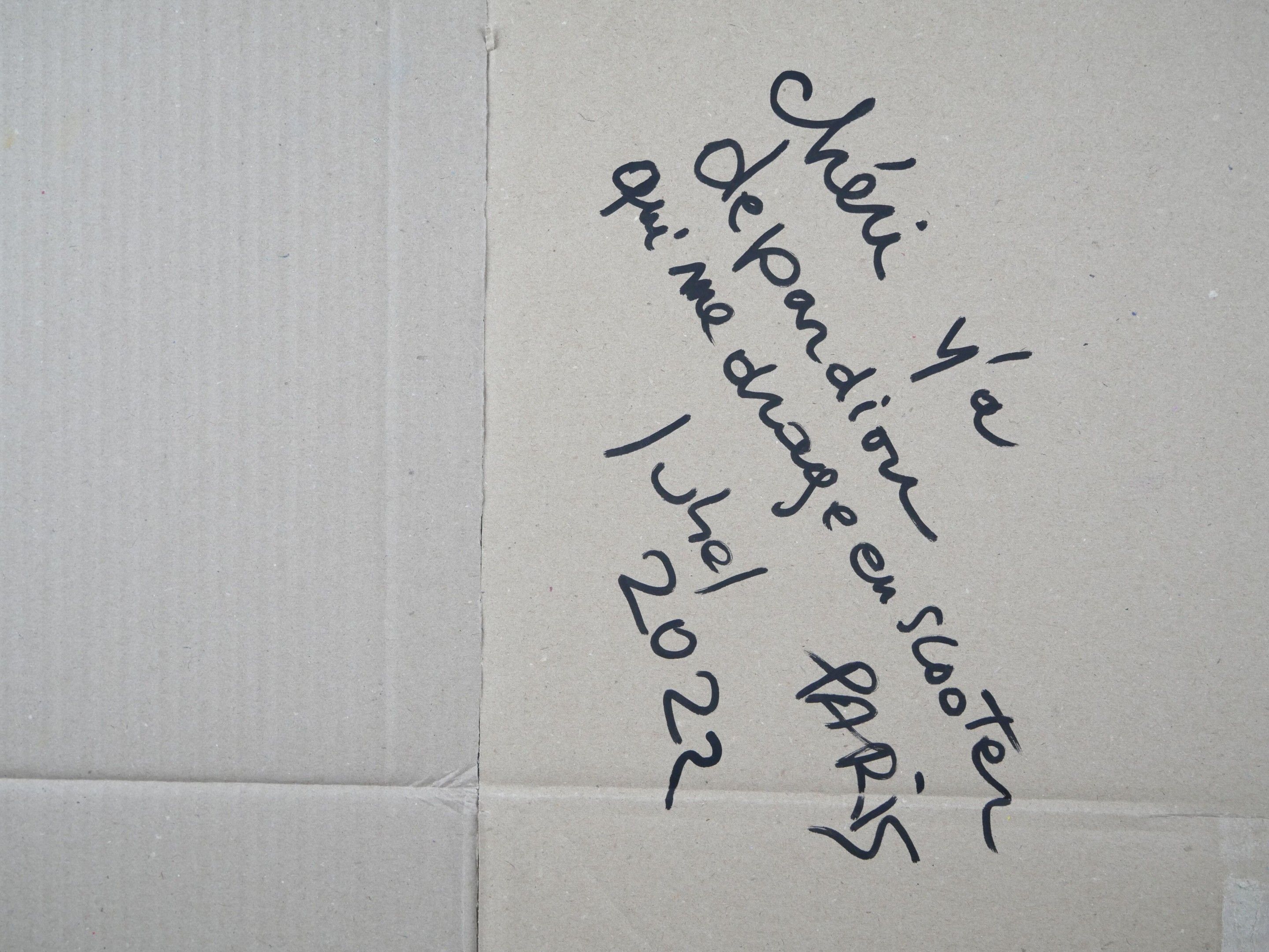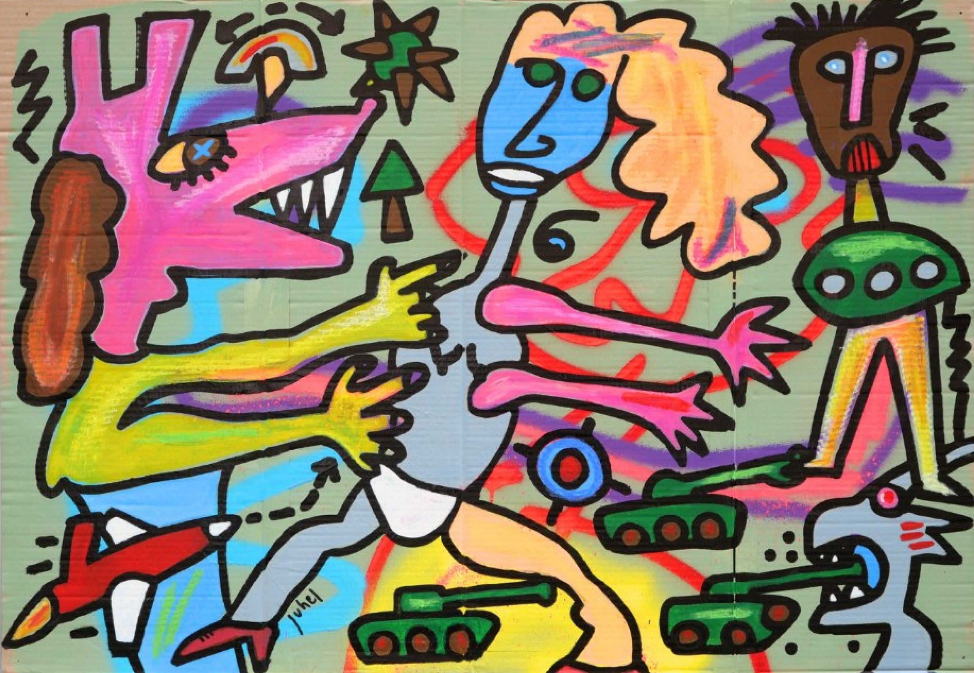 Spray paint, acrylic, pastel and posca on cardboard, signed lower left, countersigned, titled and dated 2022 on the back.