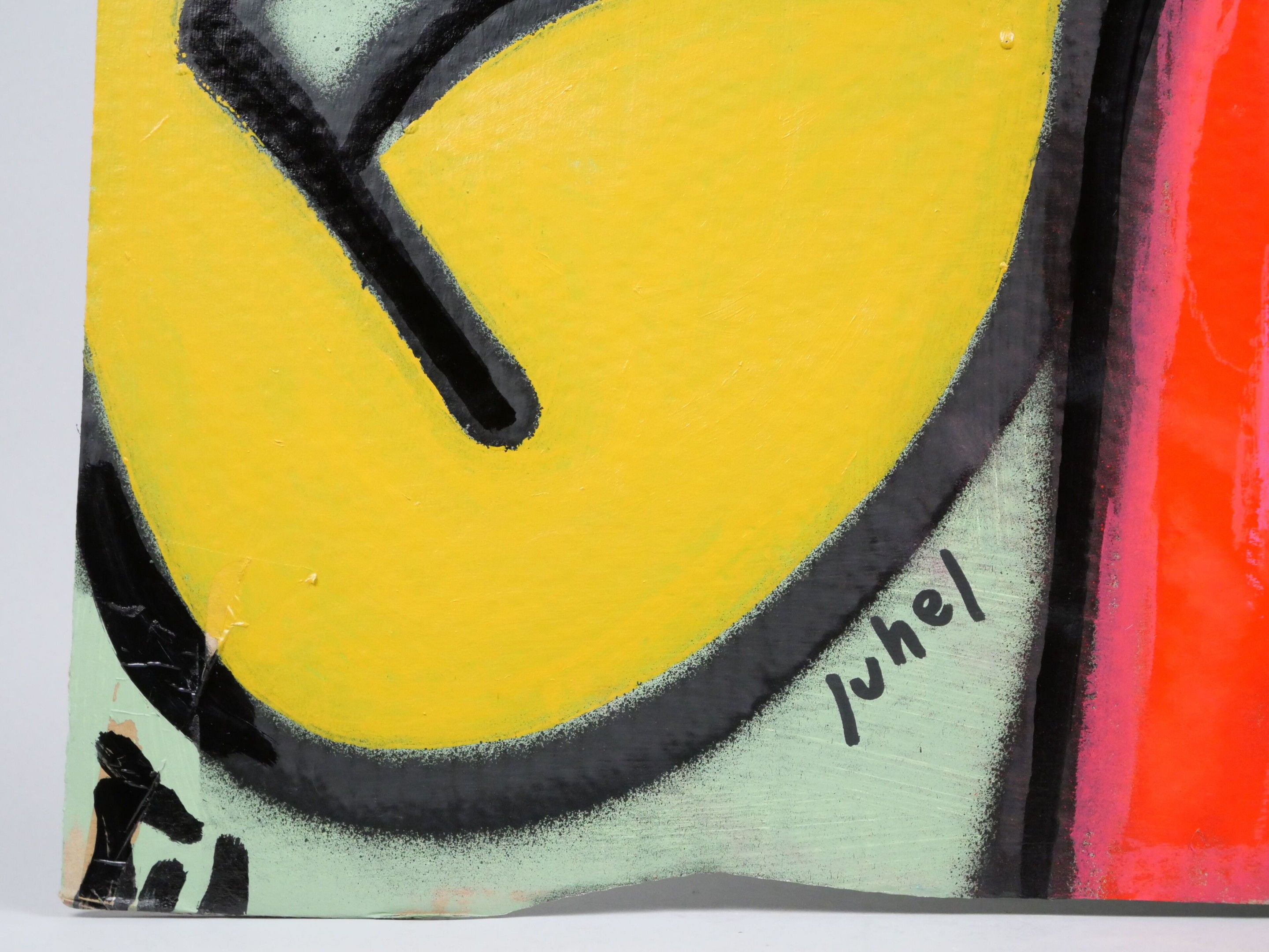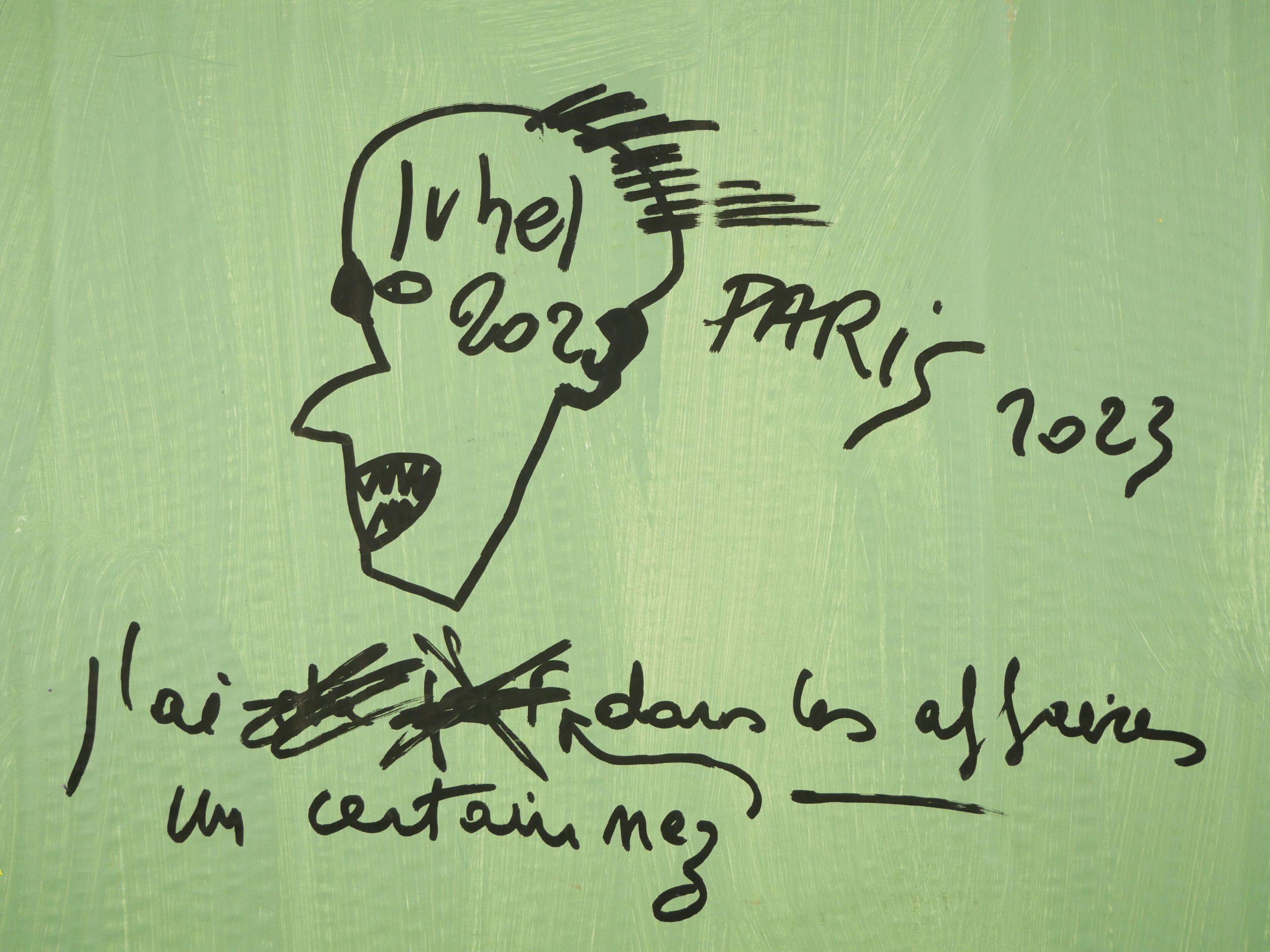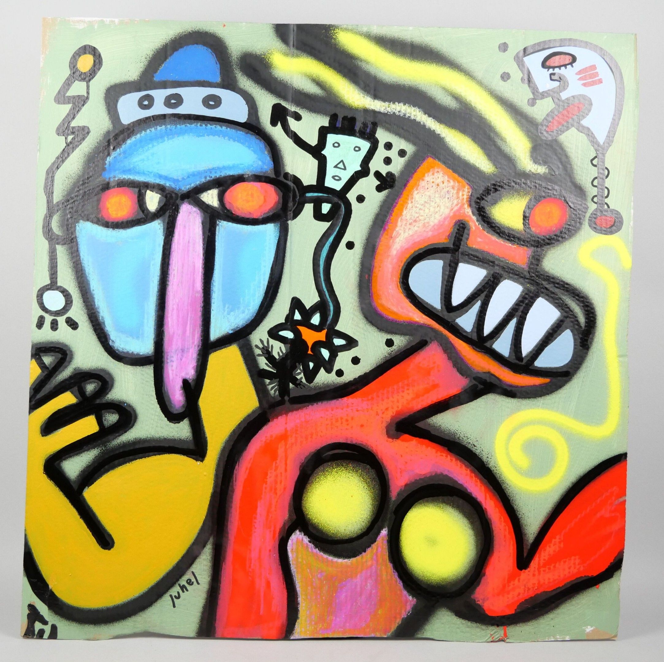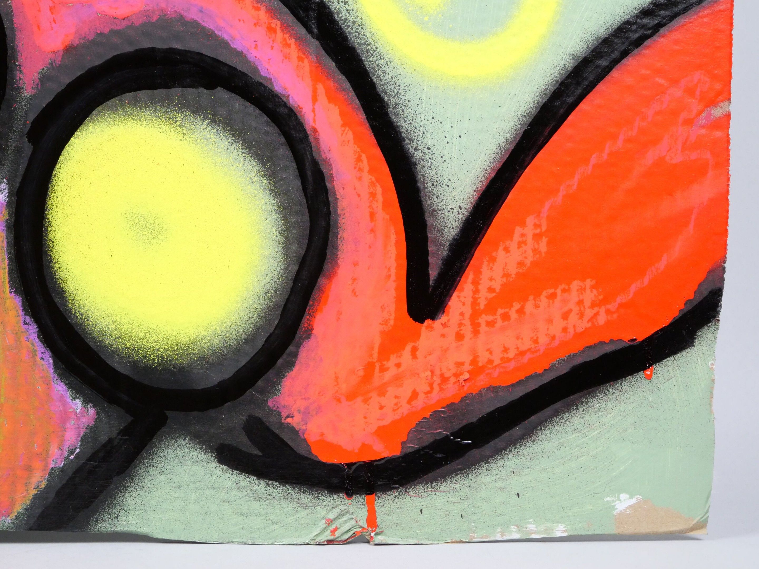 Aerosol, acrylic, pastel and posca on board, signed lower left, countersigned, titled and dated 2023 on the back.