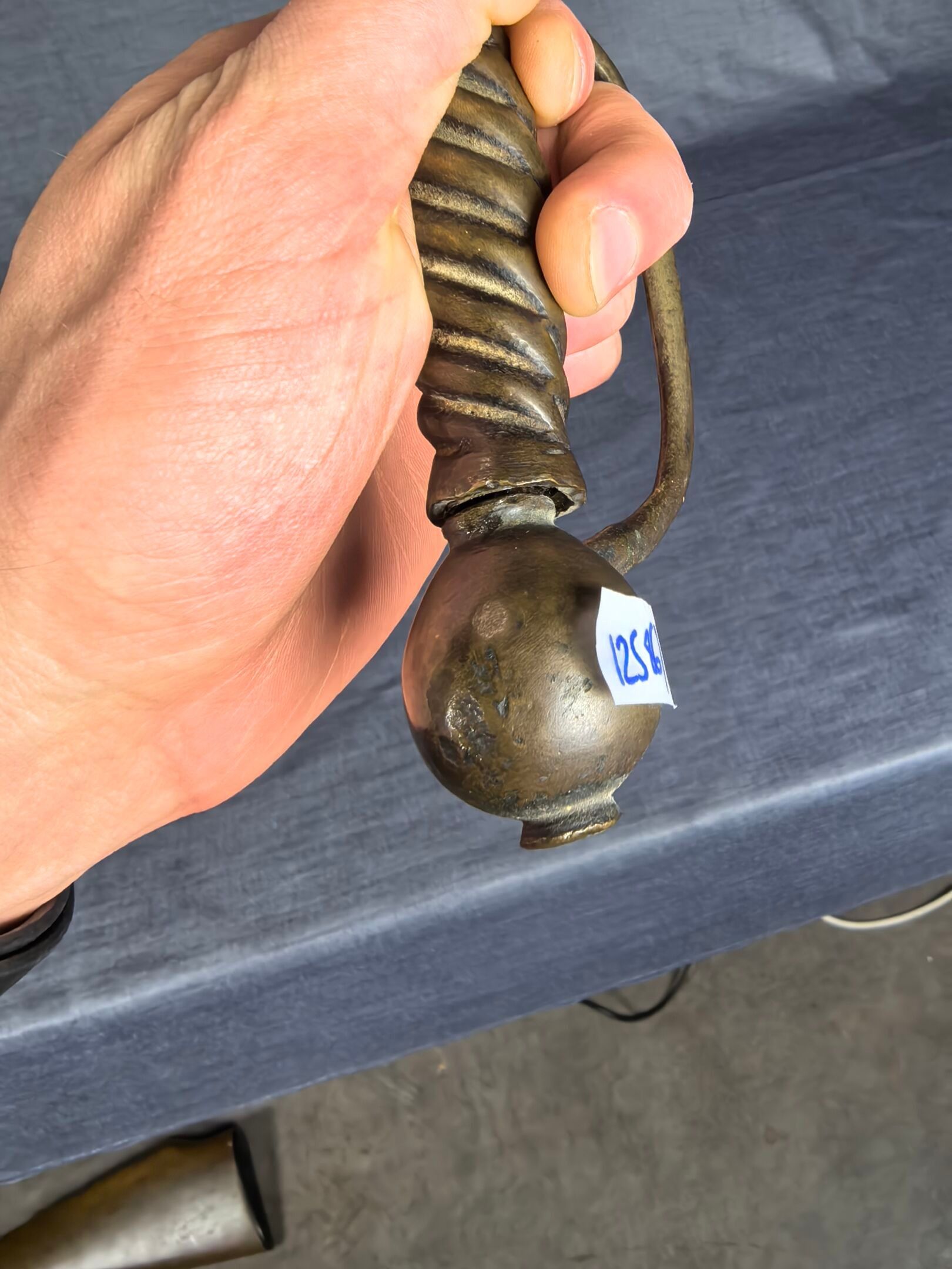 Wear, oxidation and missing gilding, no scabbard. The rope and part of the guard are missing.