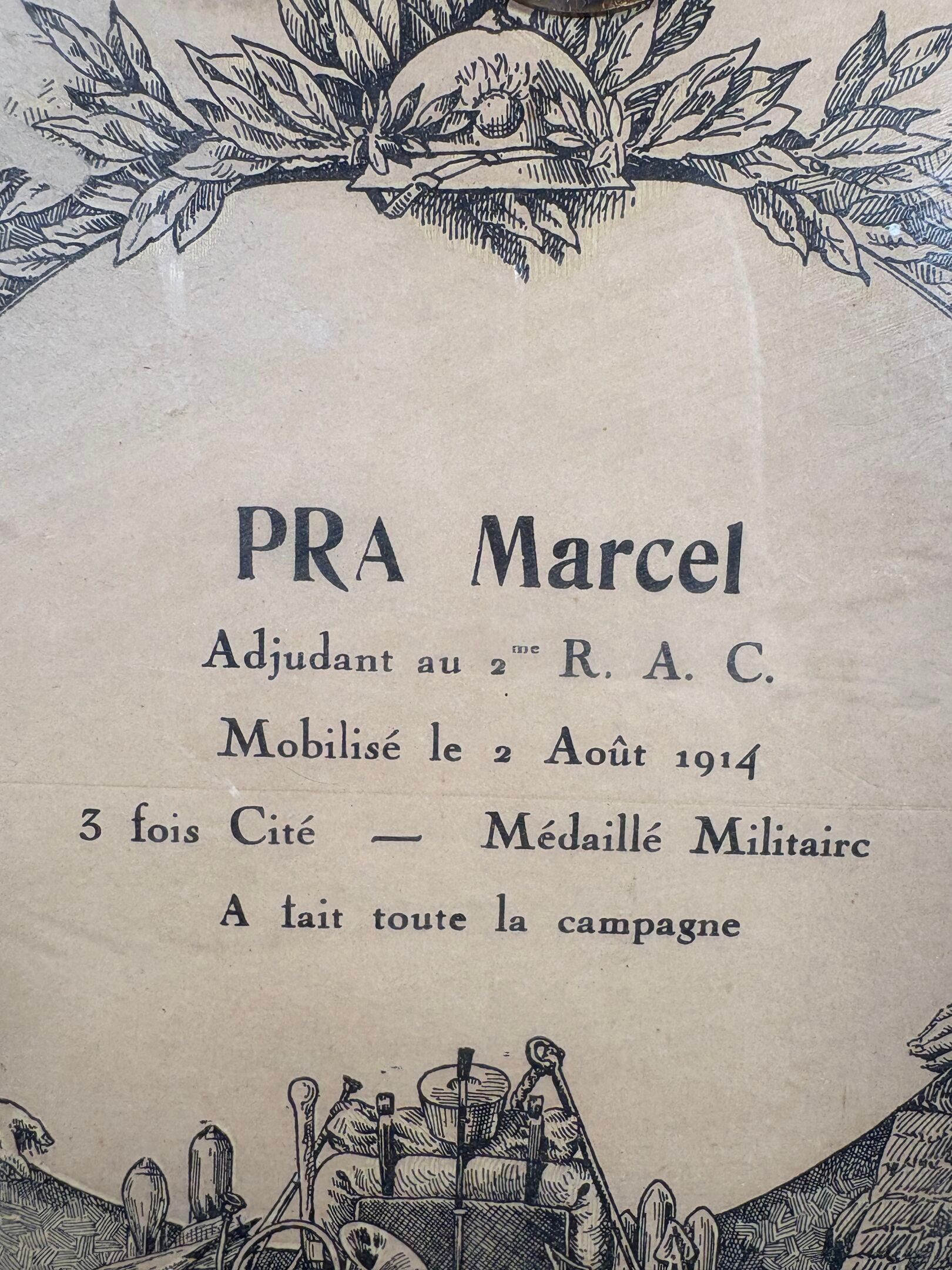Medallion frame - PRA Marcel Adjutant in the 2 nd R.