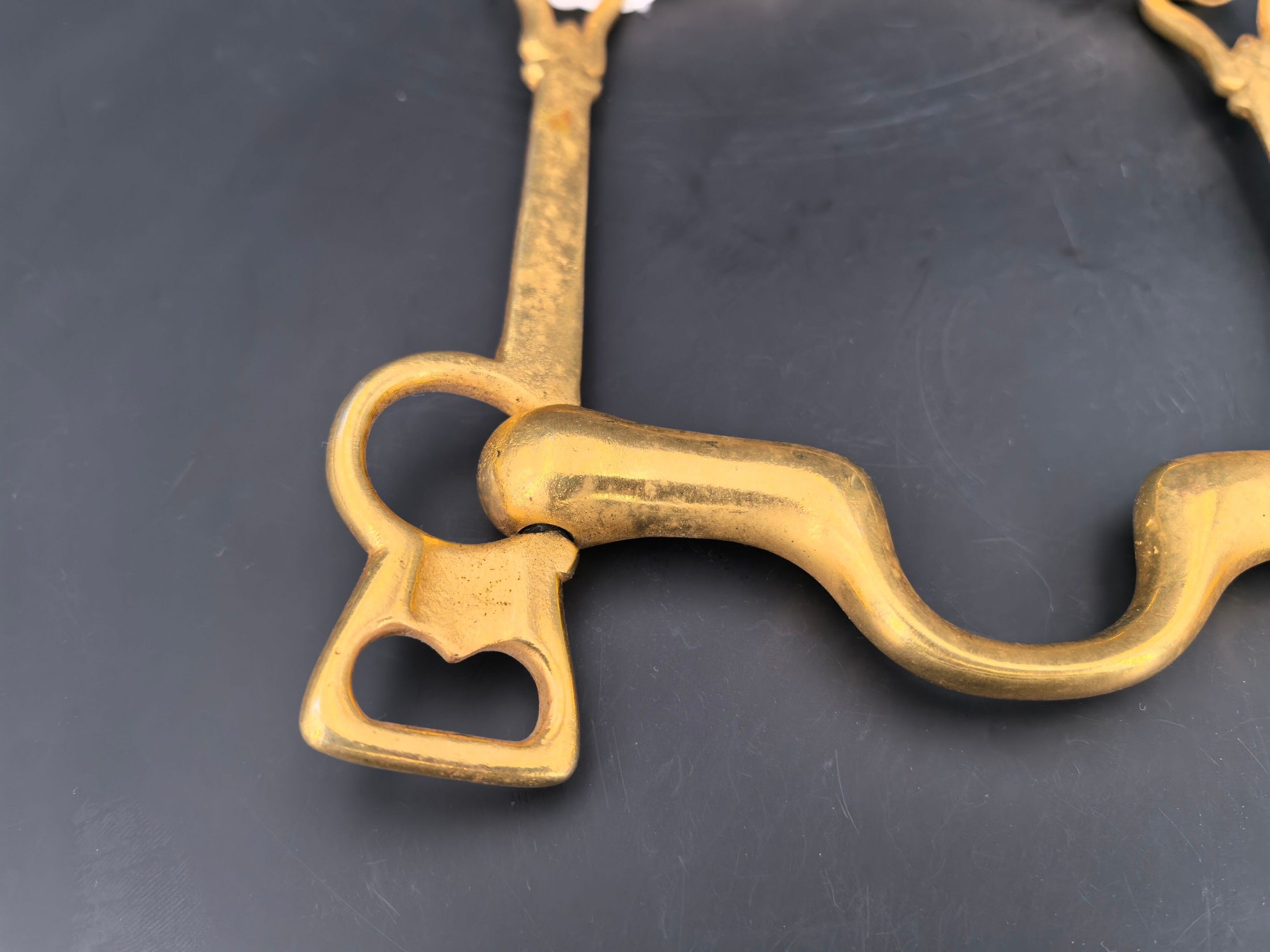 Brass cavalry officer's bit, lever model with movable limbs …