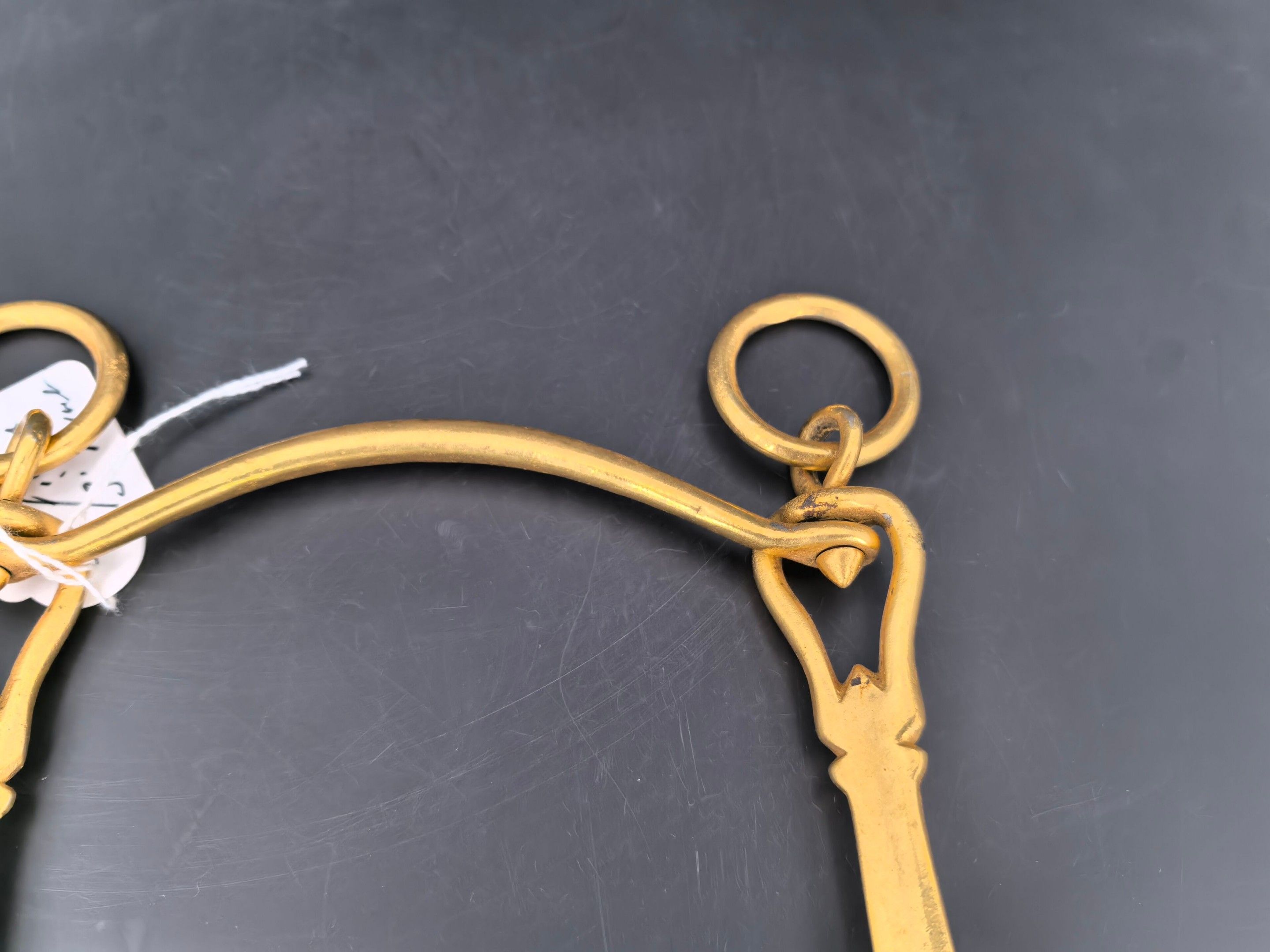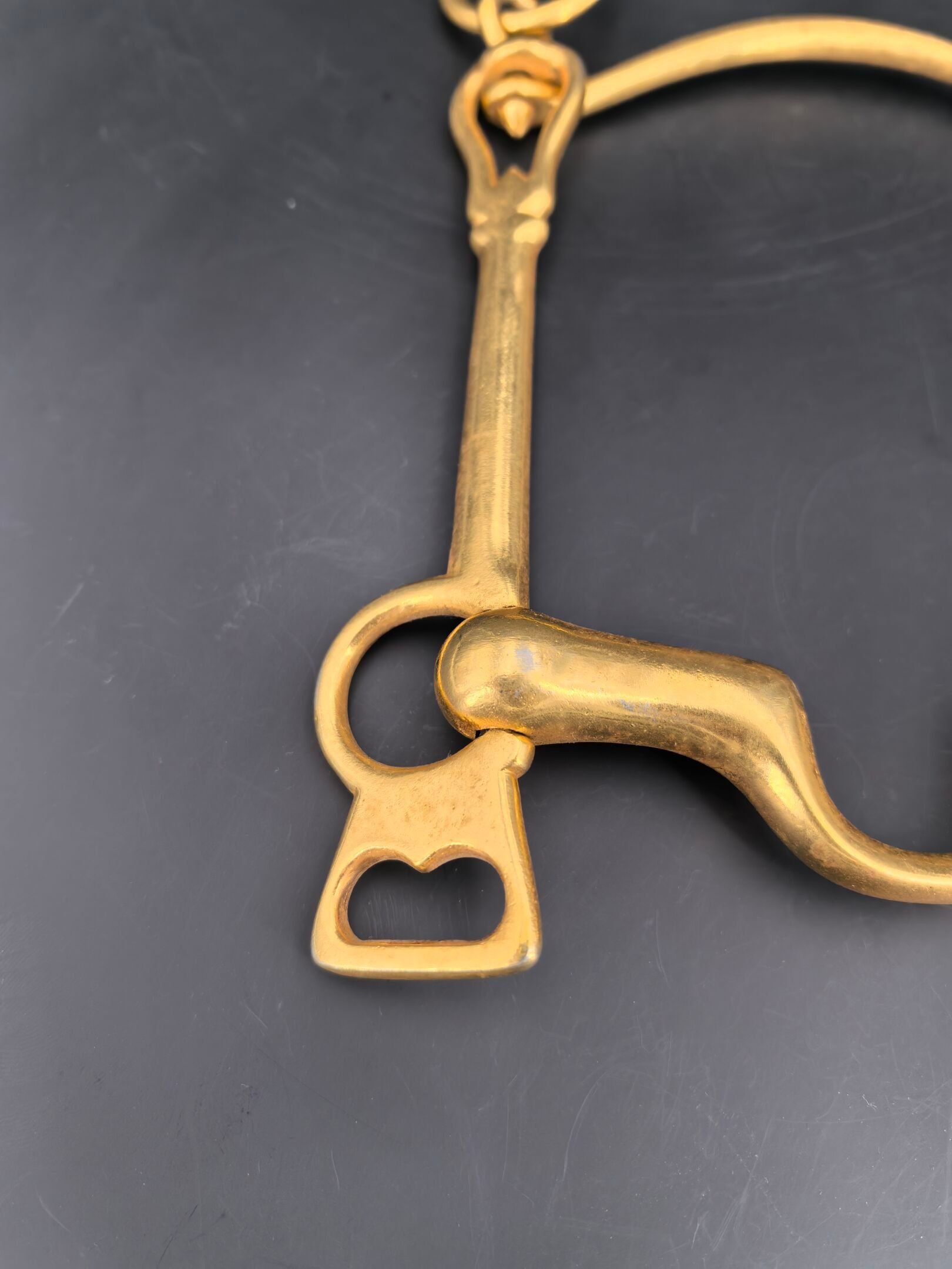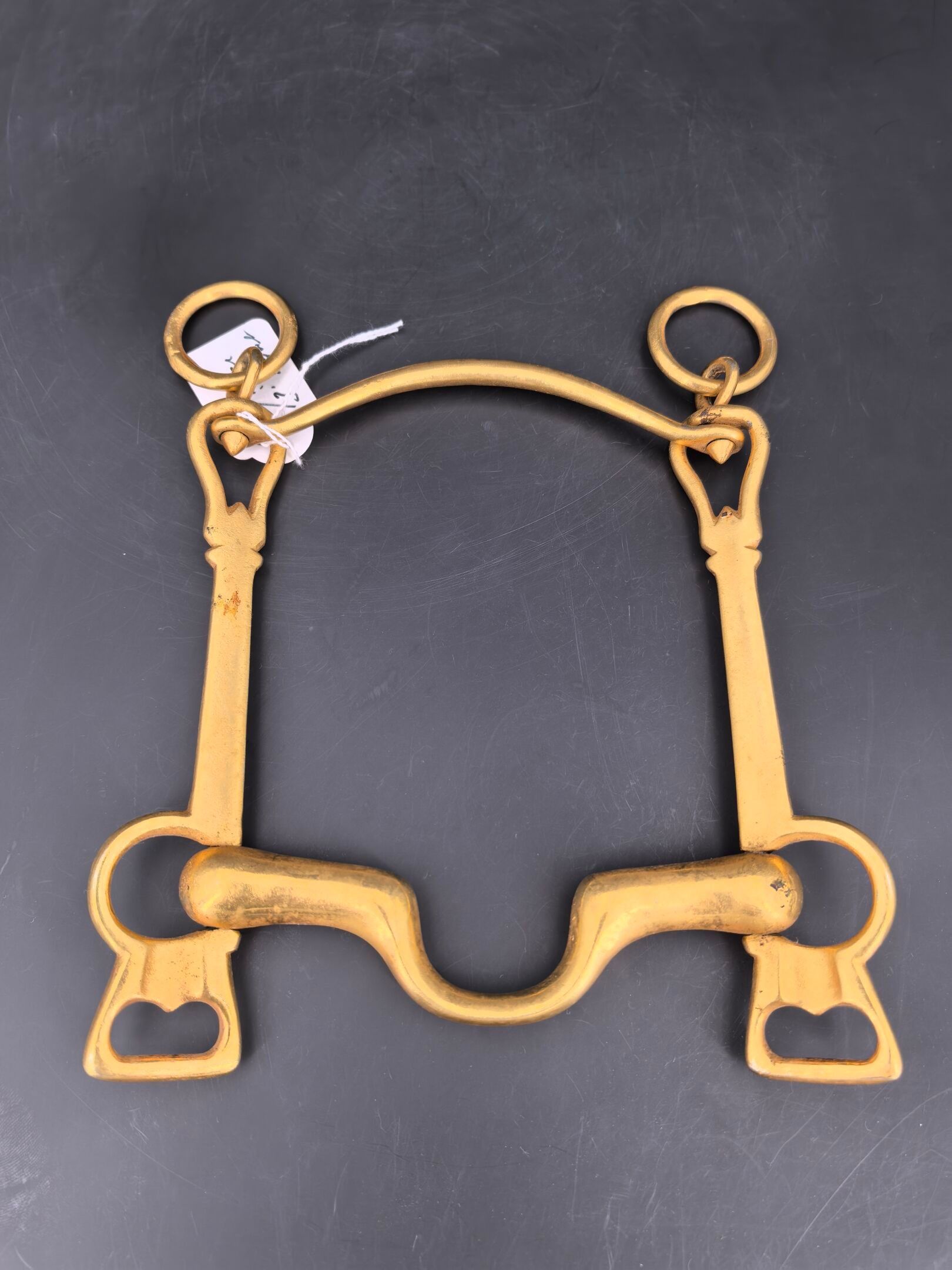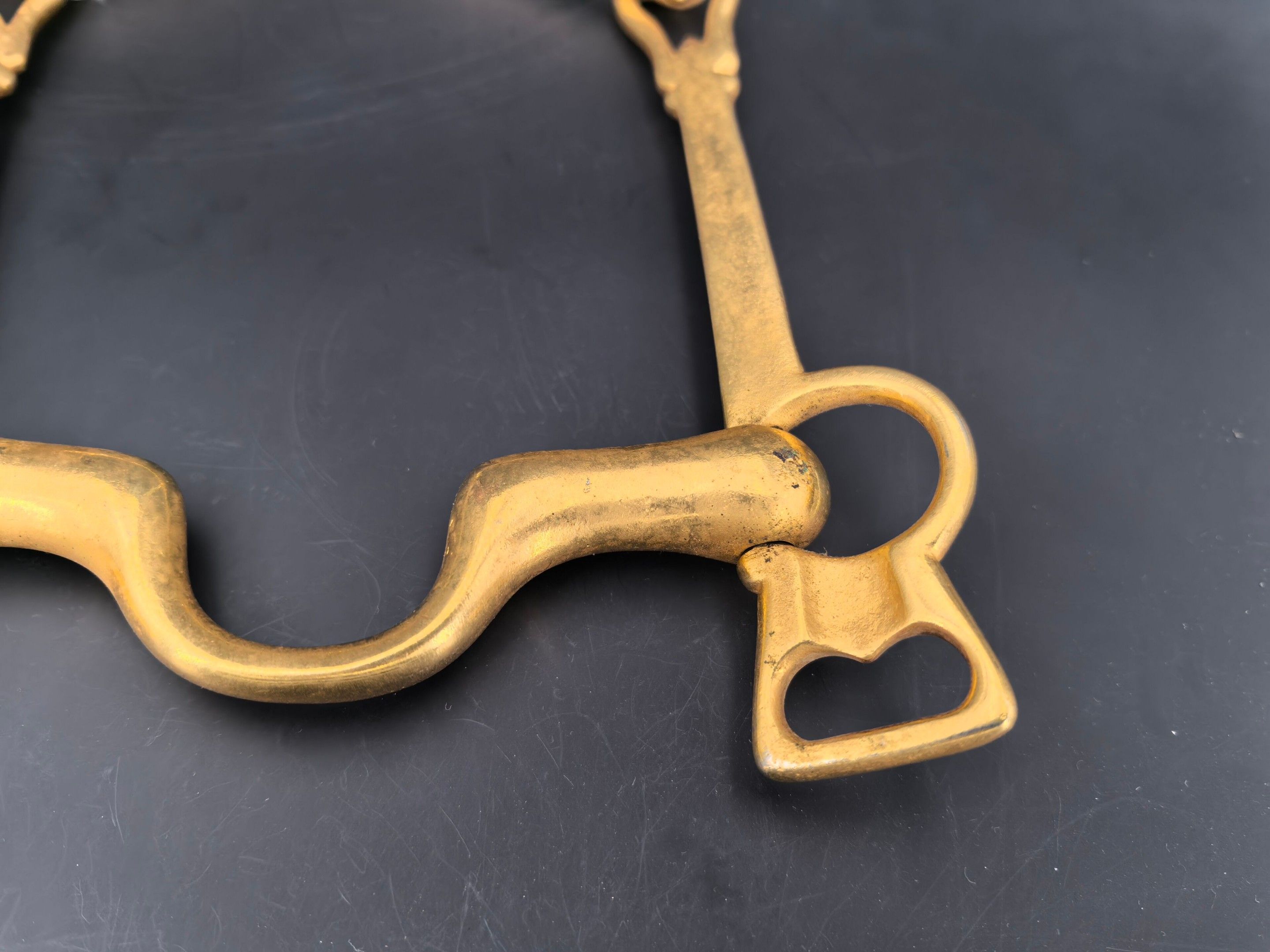 Brass cavalry officer's bit, lever model with movable limbs and curb chain passage. 3rd Republic.