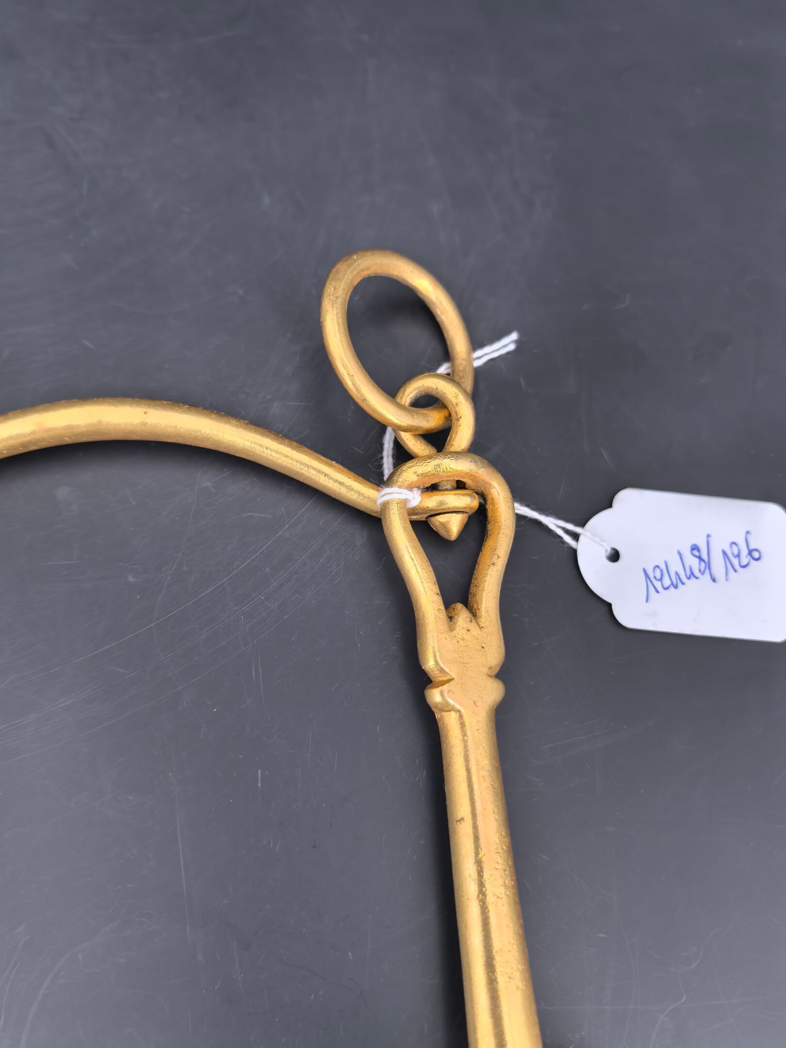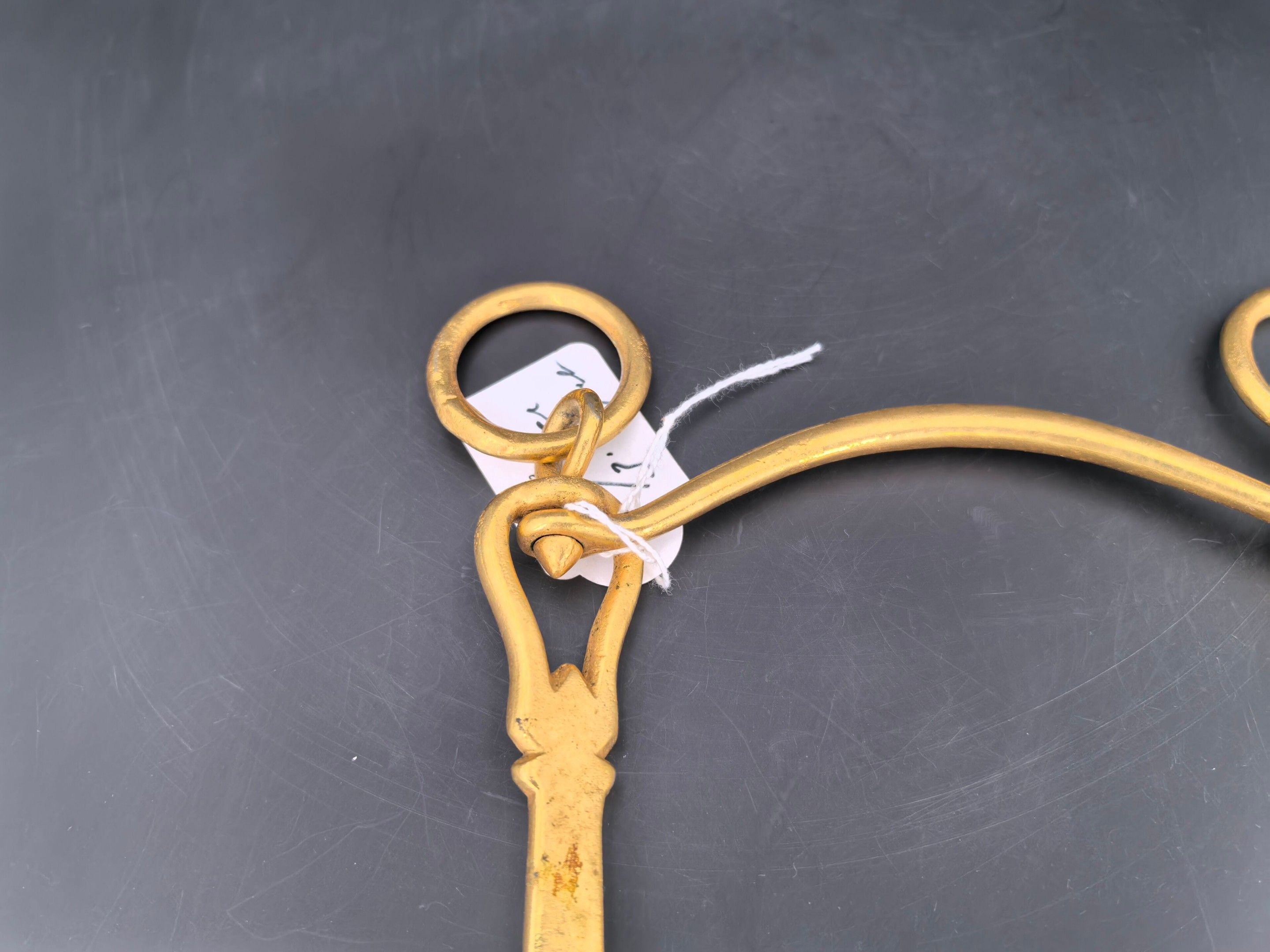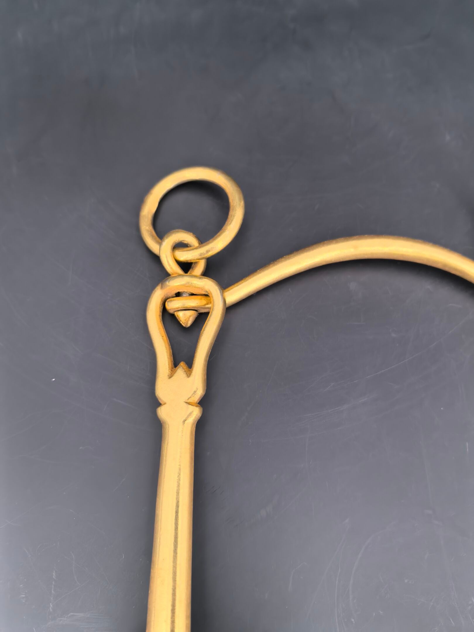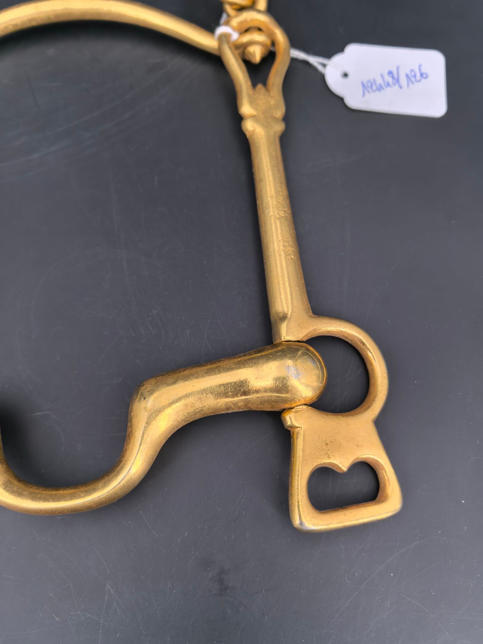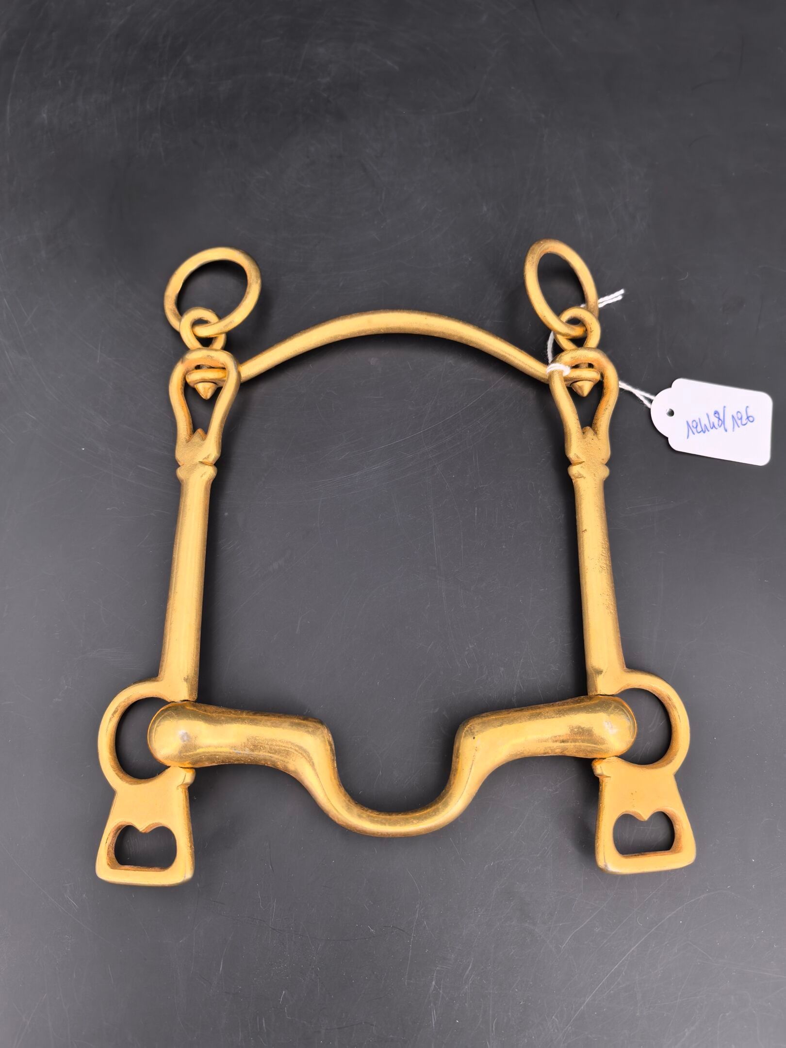 Brass cavalry officer's bit, lever model with movable limbs and curb chain passage. 3rd Republic.