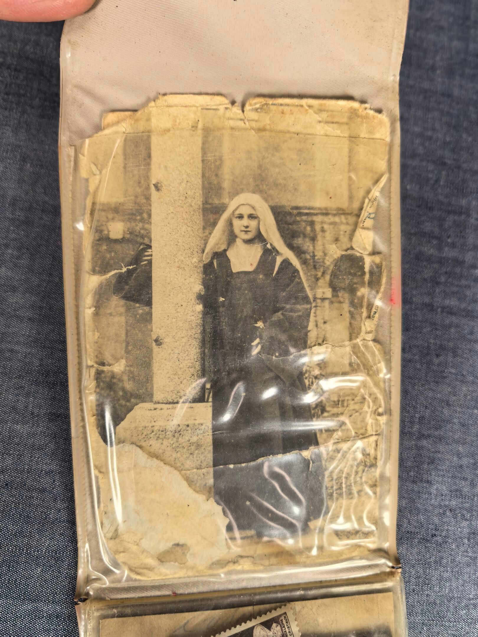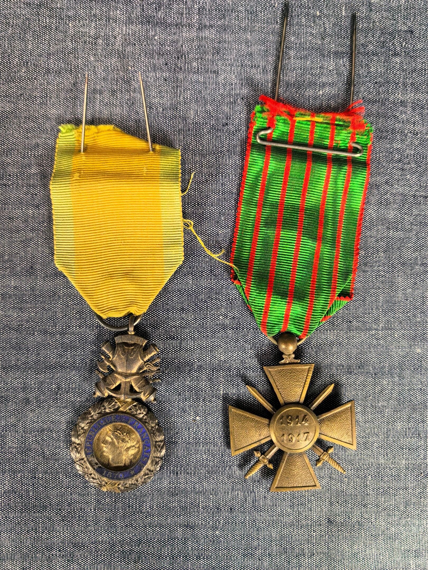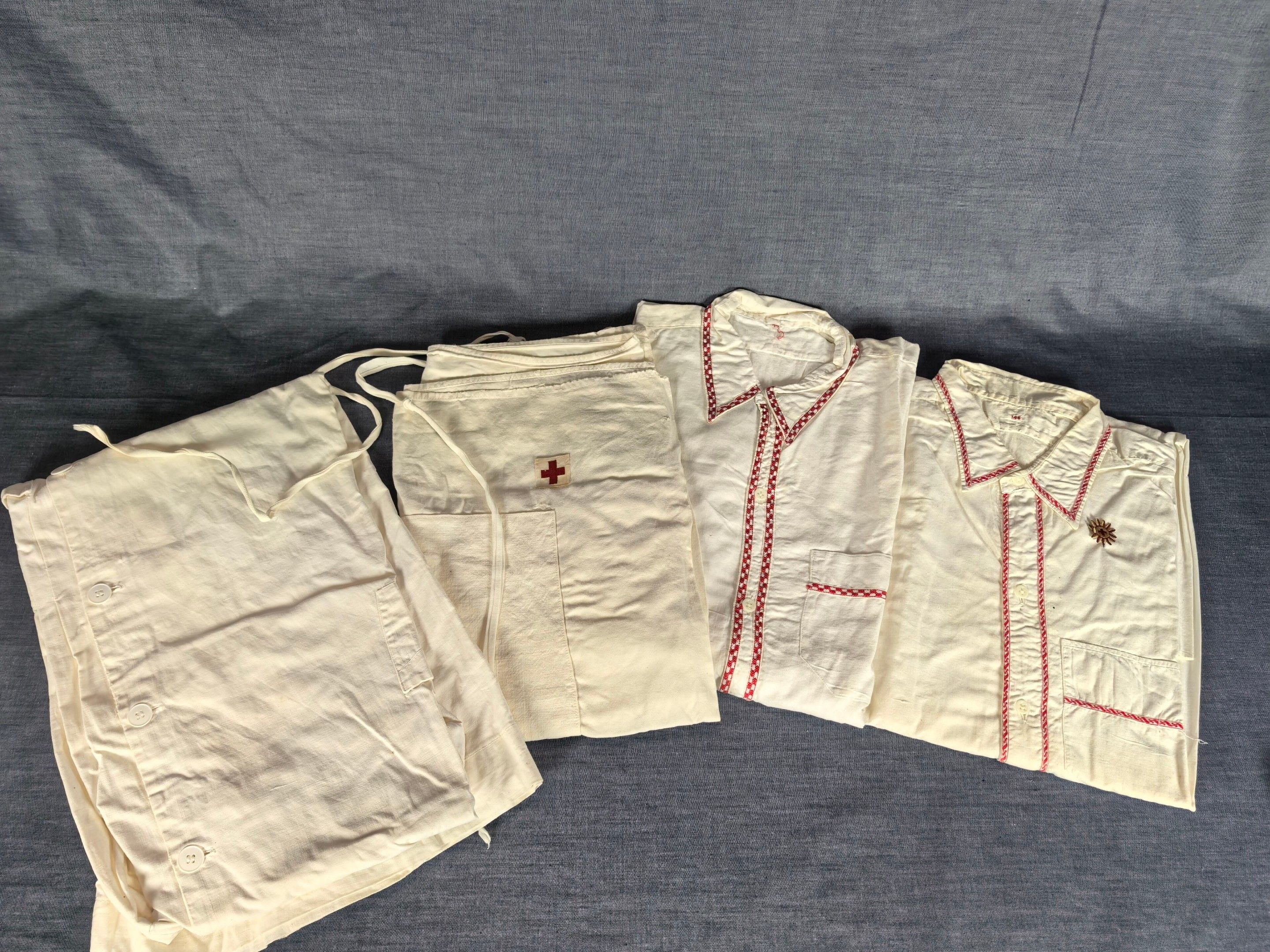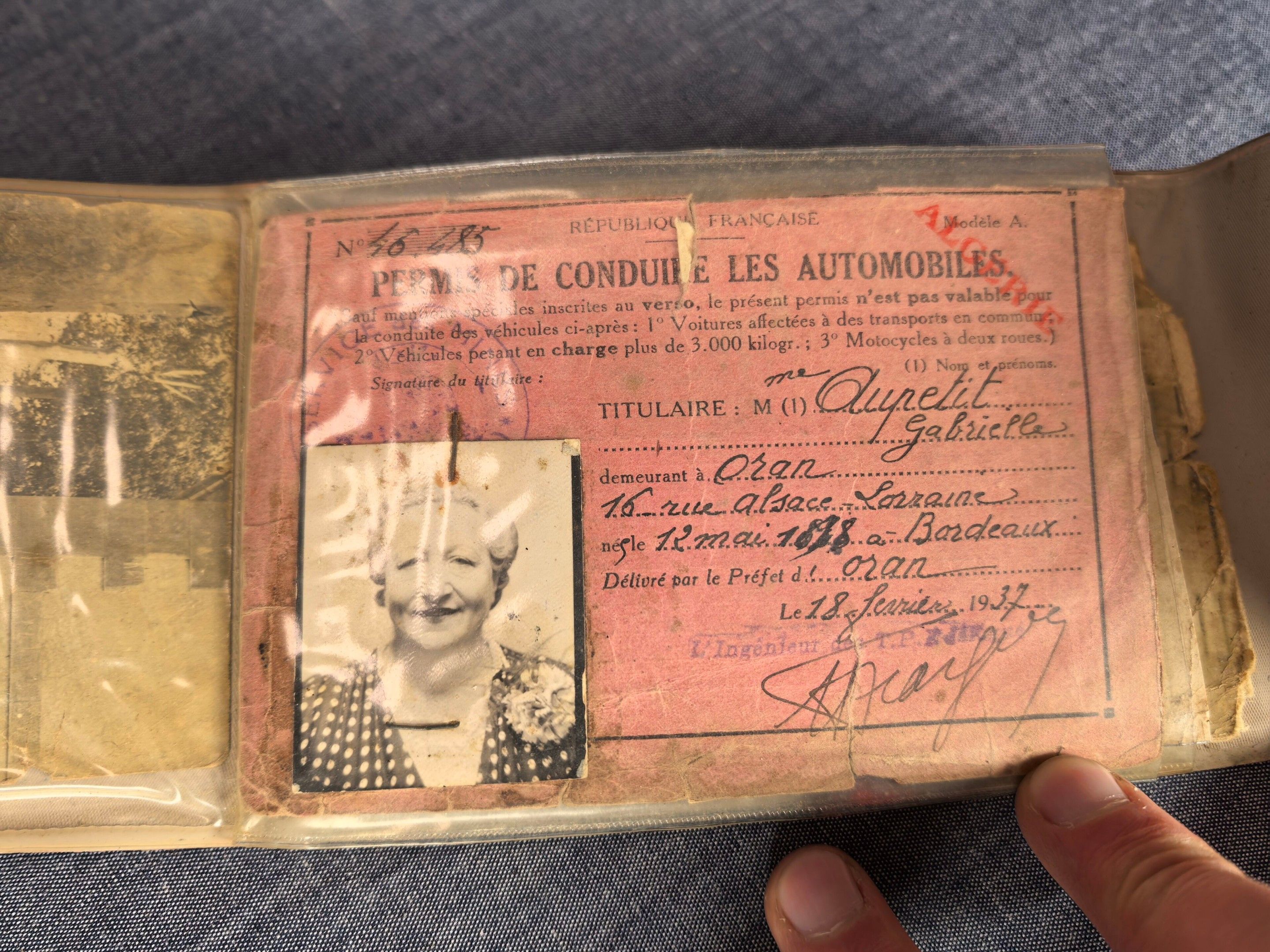 WW1 nurse's suitcase said to have belonged to Gabrielle Aupetit born 12 May 1888. Identity papers and photographs in a card holder. Suitcase containing the complete panoply of the wartime nurse, blanket, rosary, manual, whistle, watch, utensils, costume, soap, thread, dressings, belt, lead holder, syringes... 2 medals, including the Croix de Guerre and the veteran's medal.