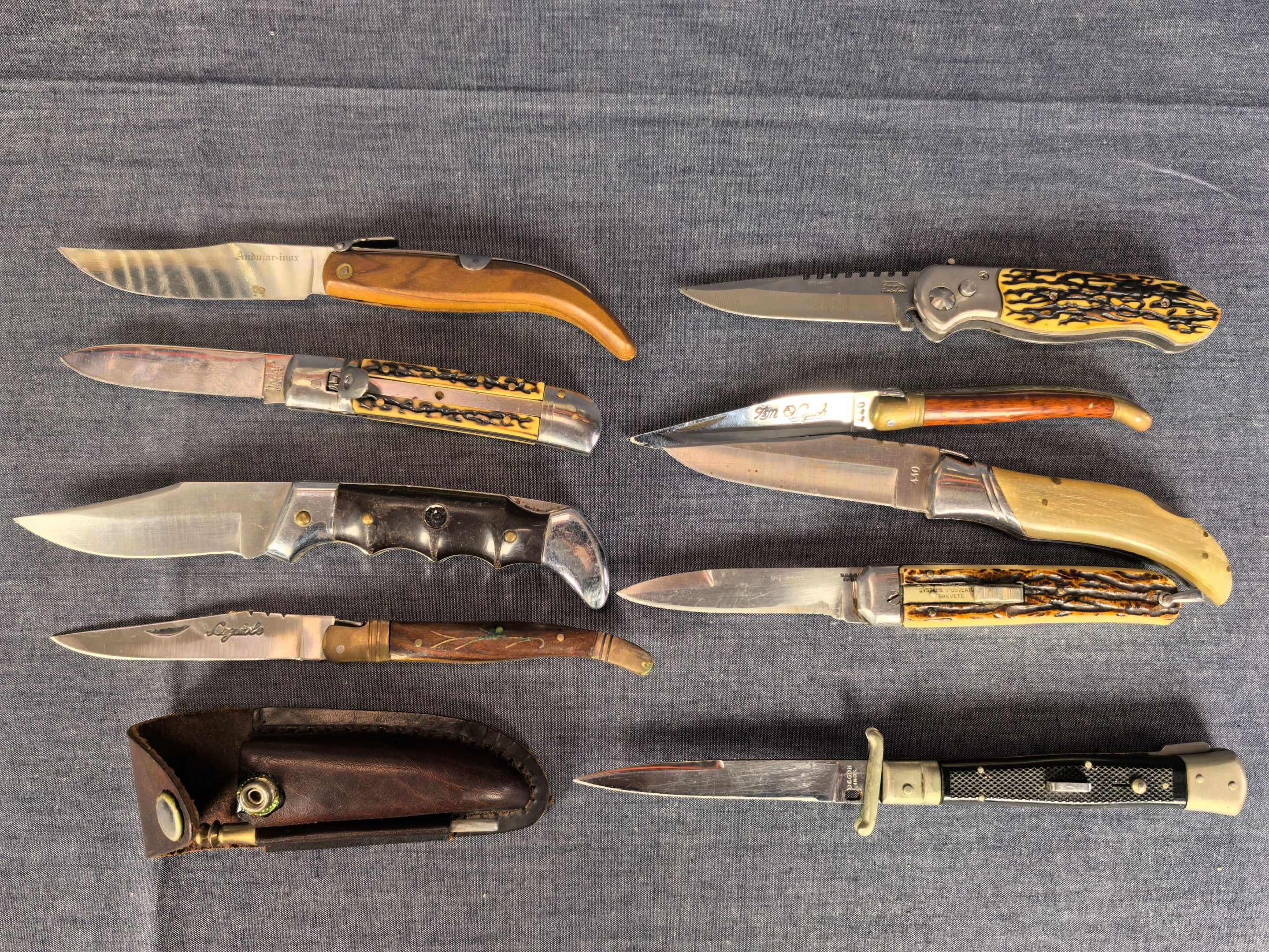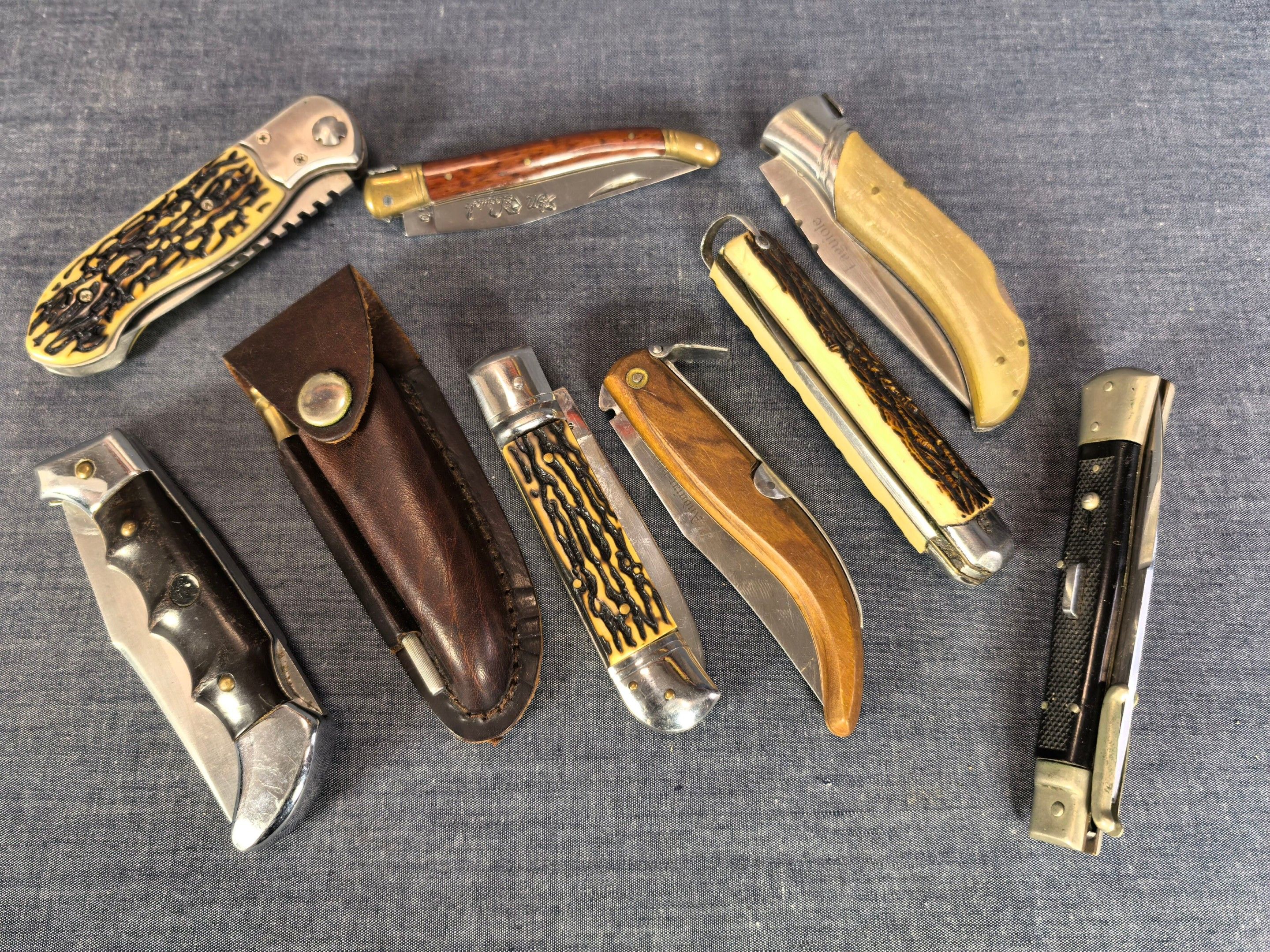 [Cat. D = +18 years] 1 set of 9 knives including LAGUIOLE and others
