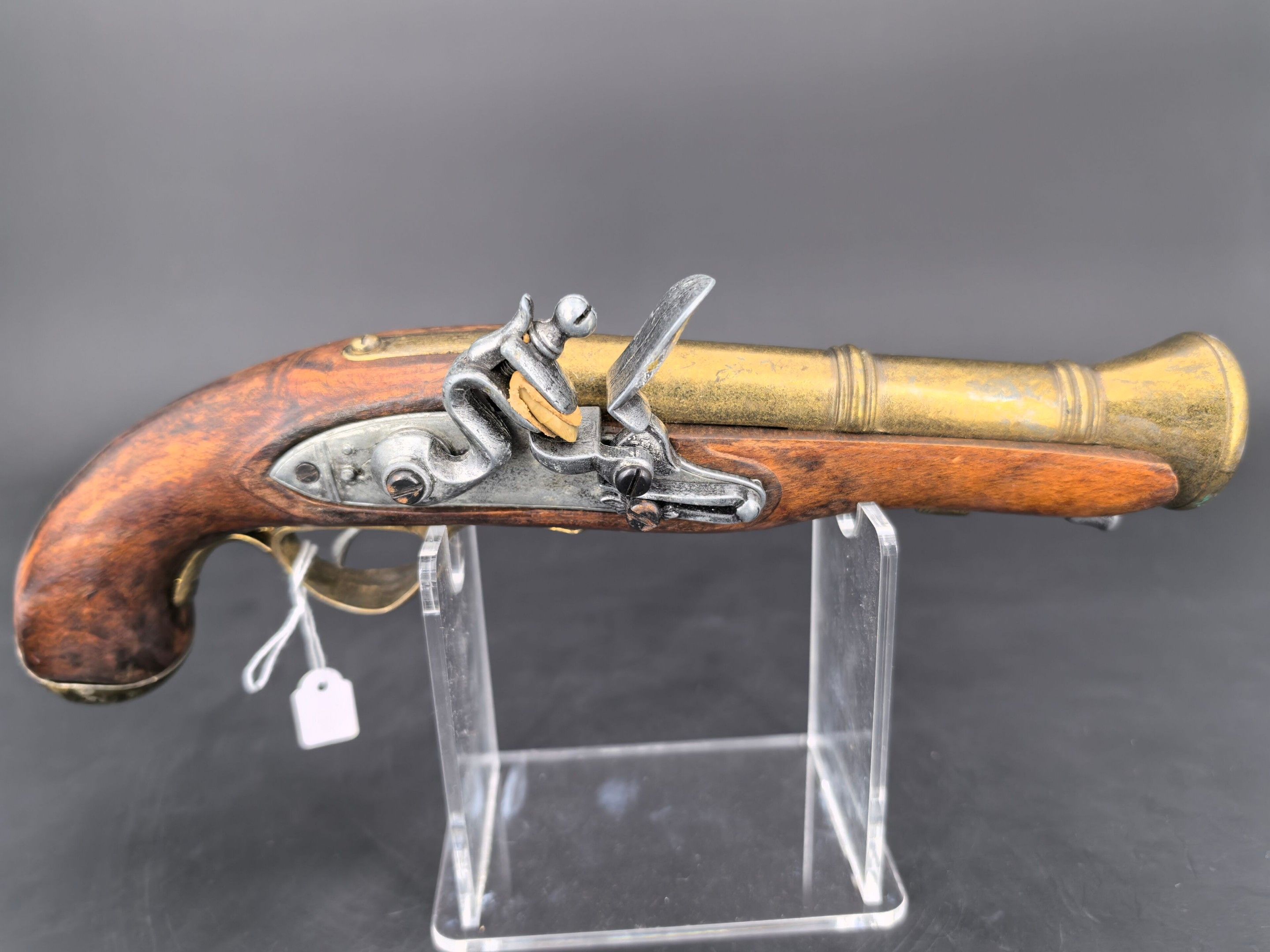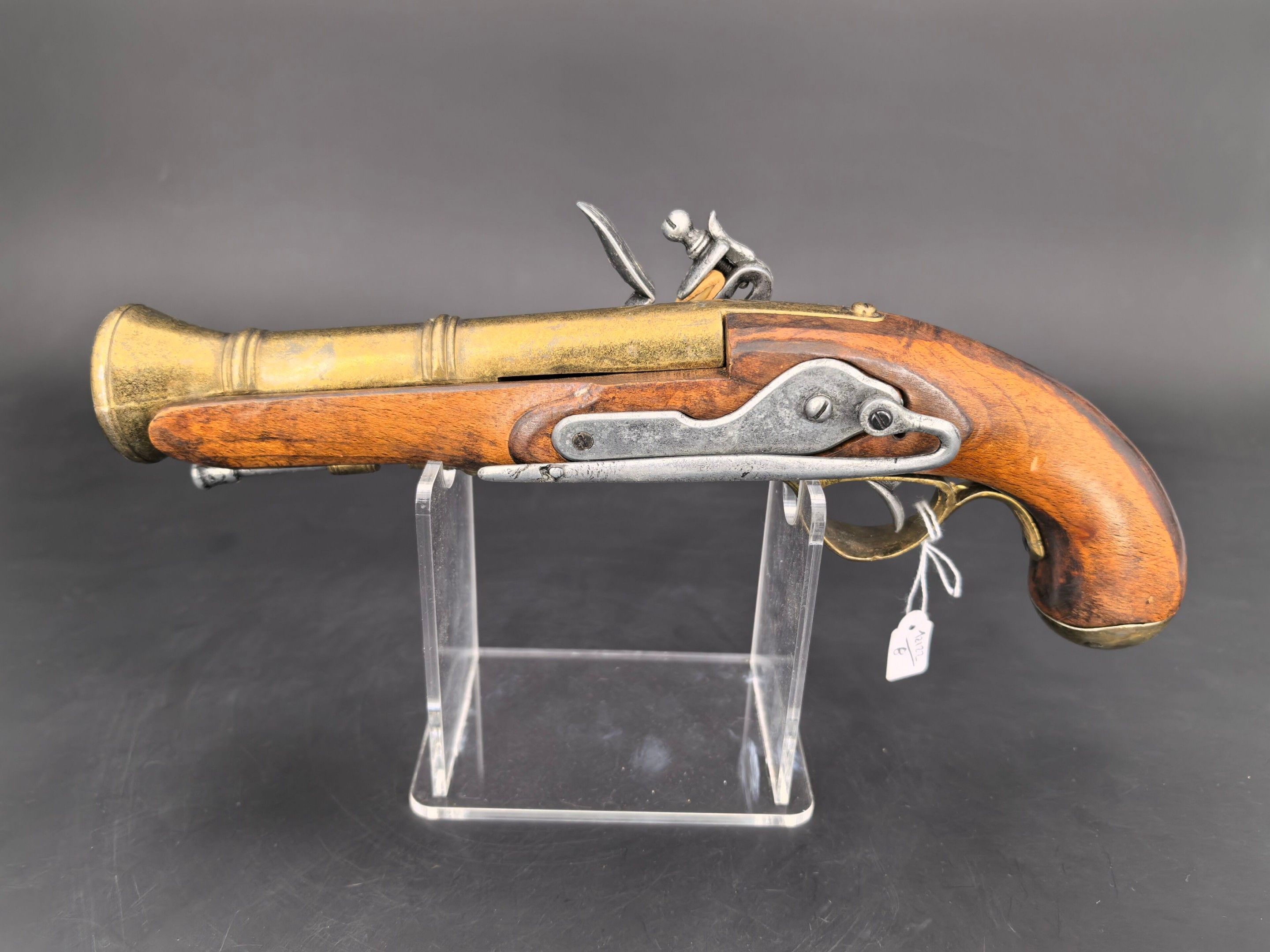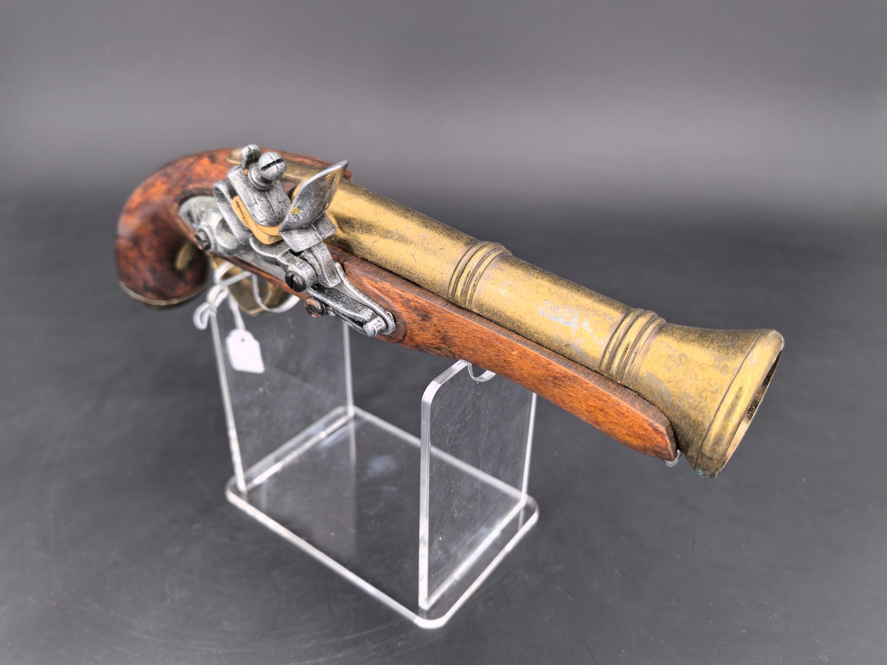 Modern replica flintlock travel pistol with blunderbuss barrel