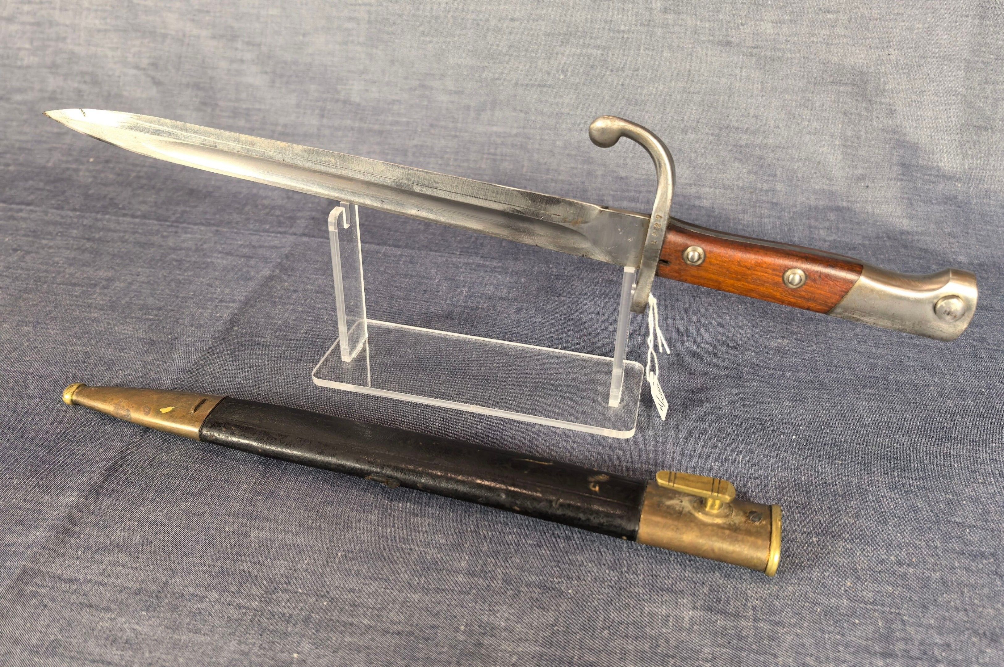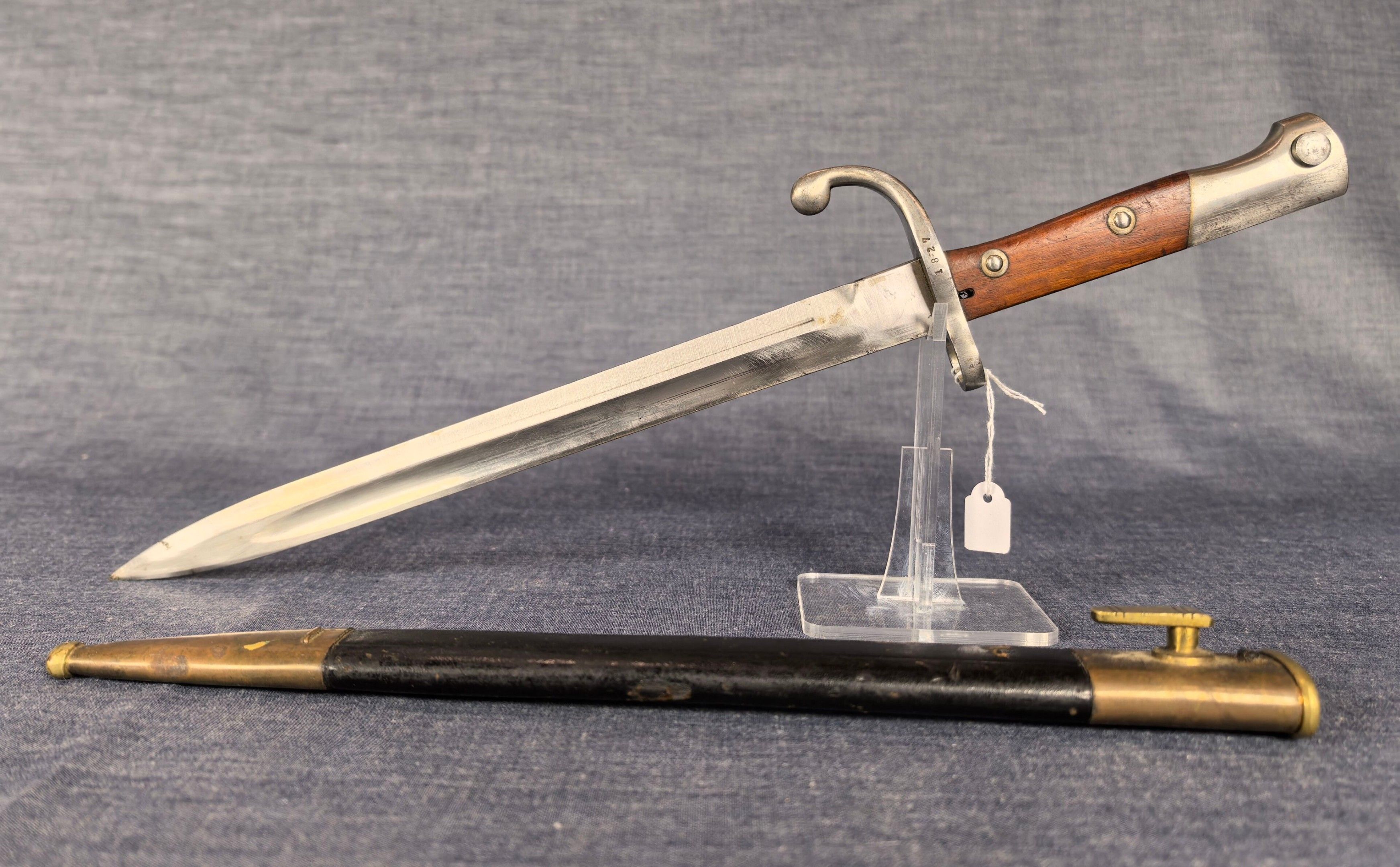 Bayonet model 1908 for Mauser rifle, blade signed Alex COPPEL, Solingen N°1827 with scabbard.