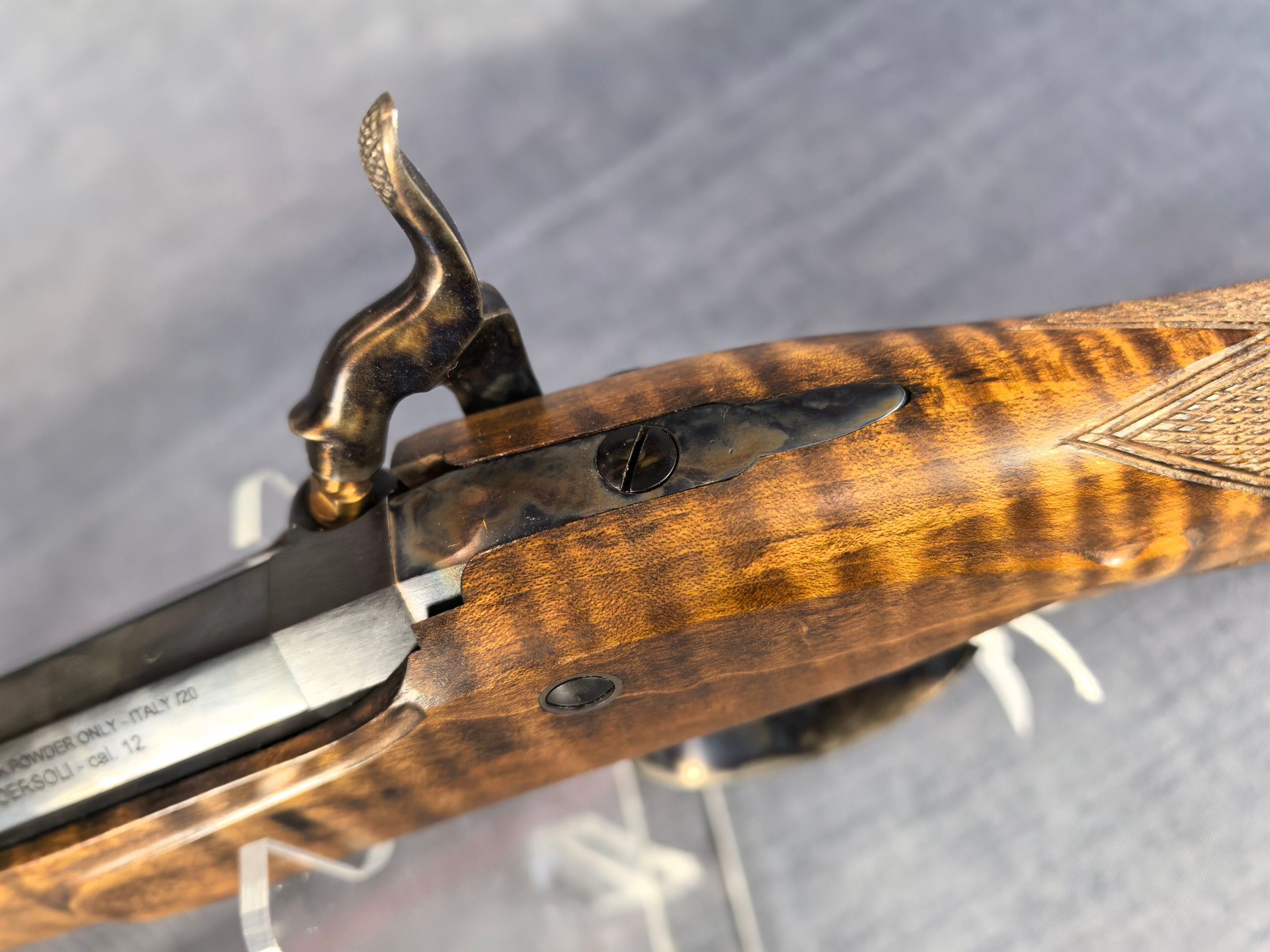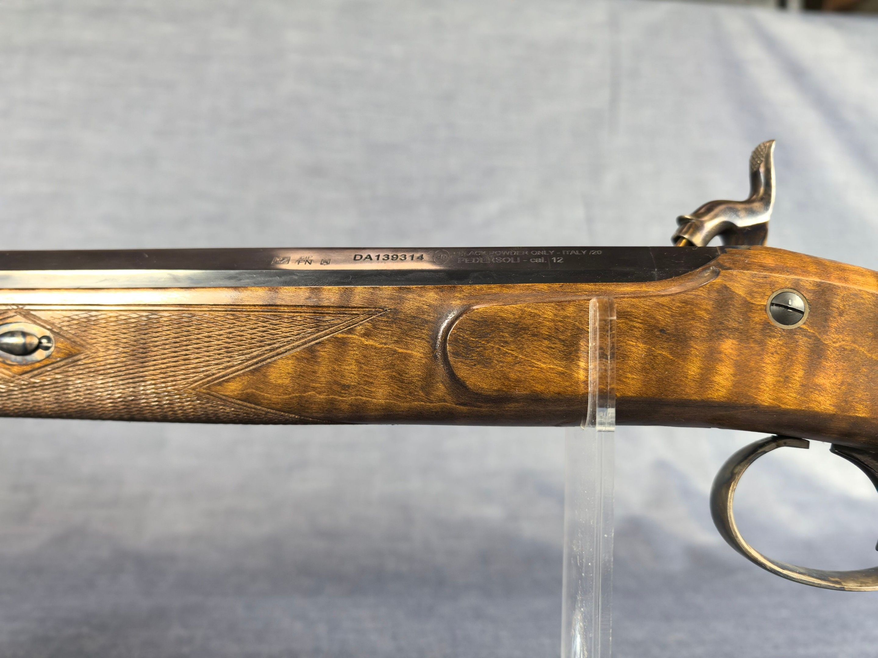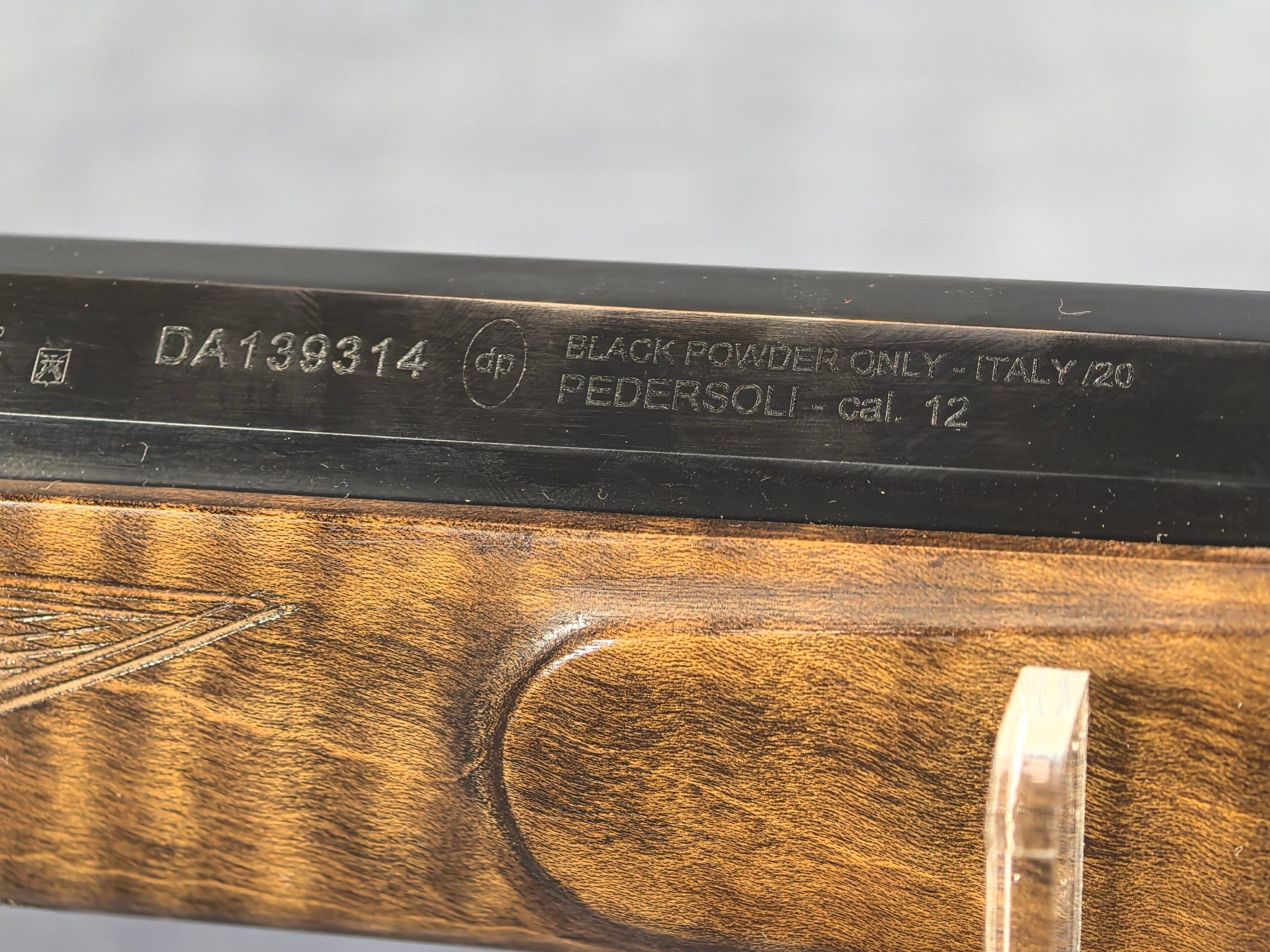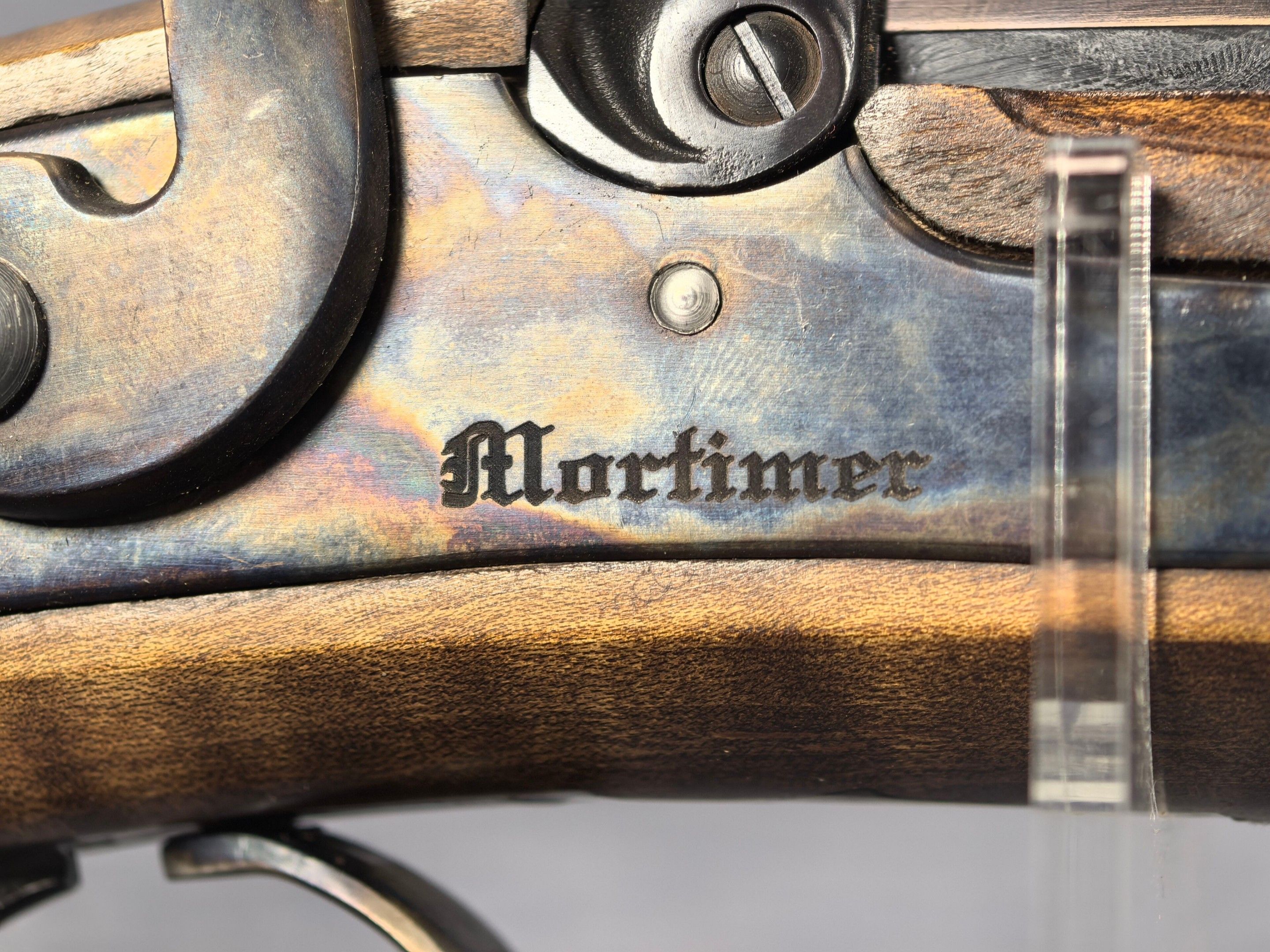 [Cat. D = +18years] Davide Pedersoli Mortimer black powder percussion shotgun - Cal. 12 pn - single shot- Octagonal barrel with cylindrical finish- Stock embellished with English cheekpiece and checkering- Case hardened lock and fittings- Muzzle loading. ramrod present. Number DA139314- TBE.