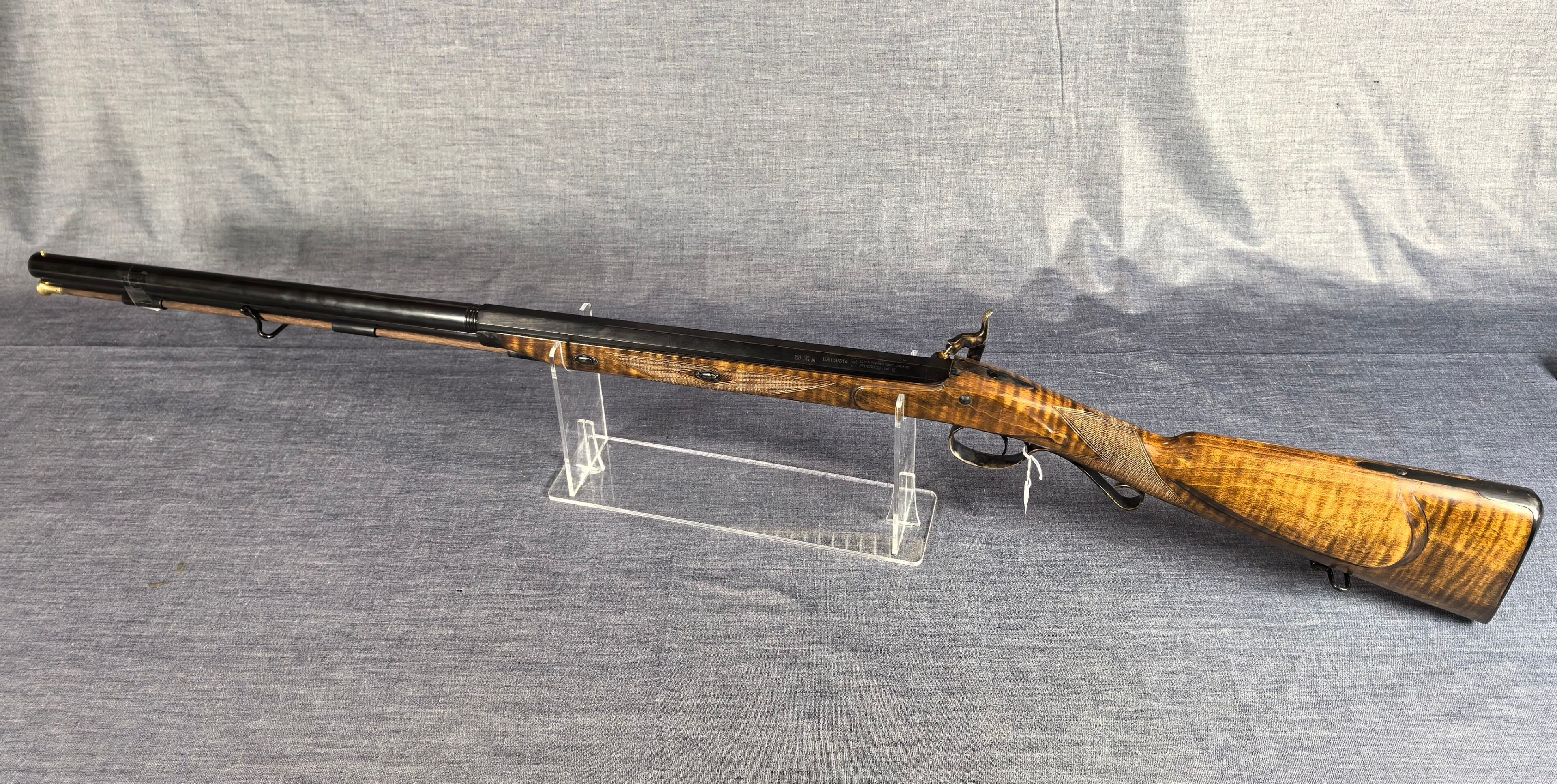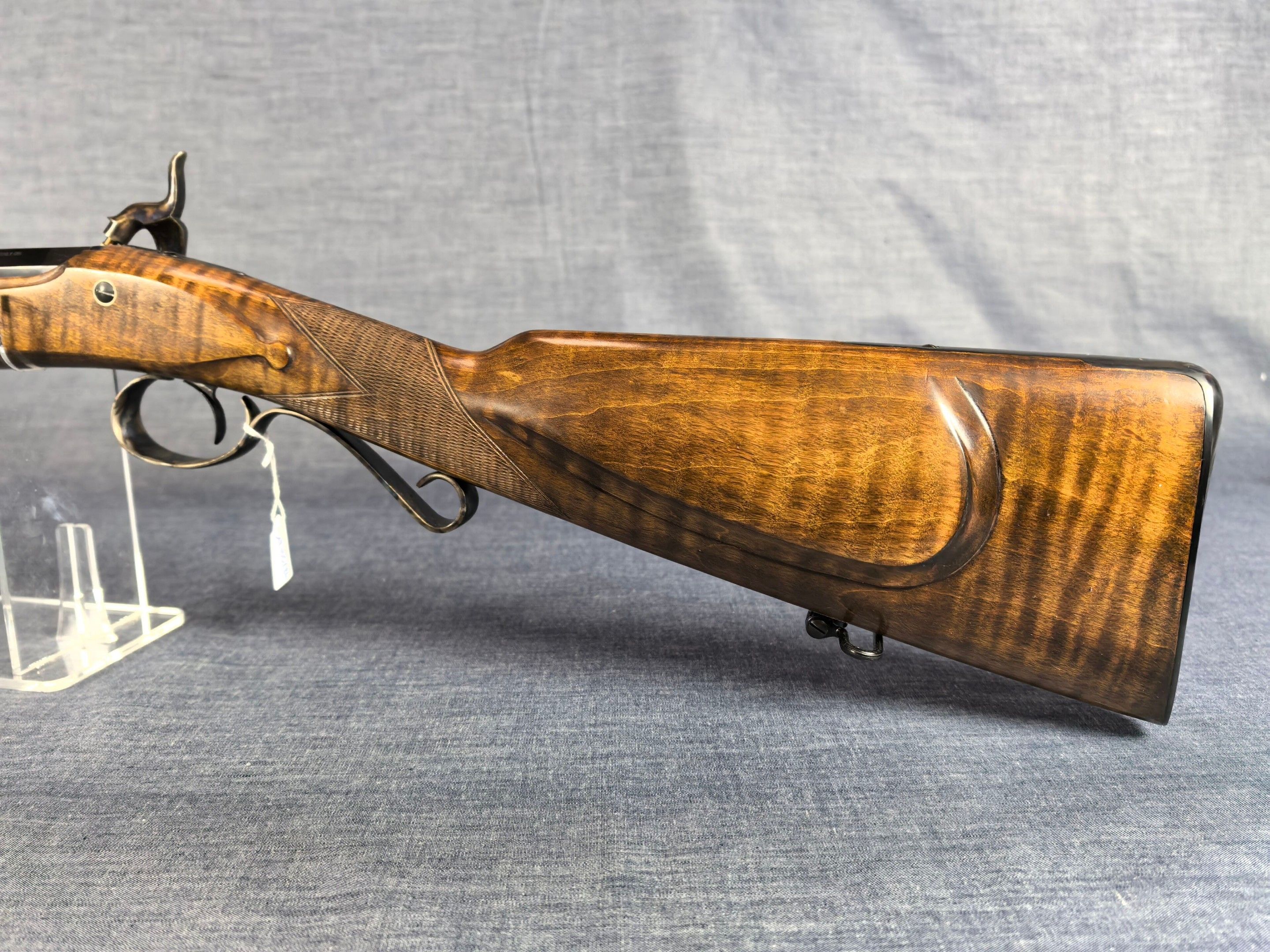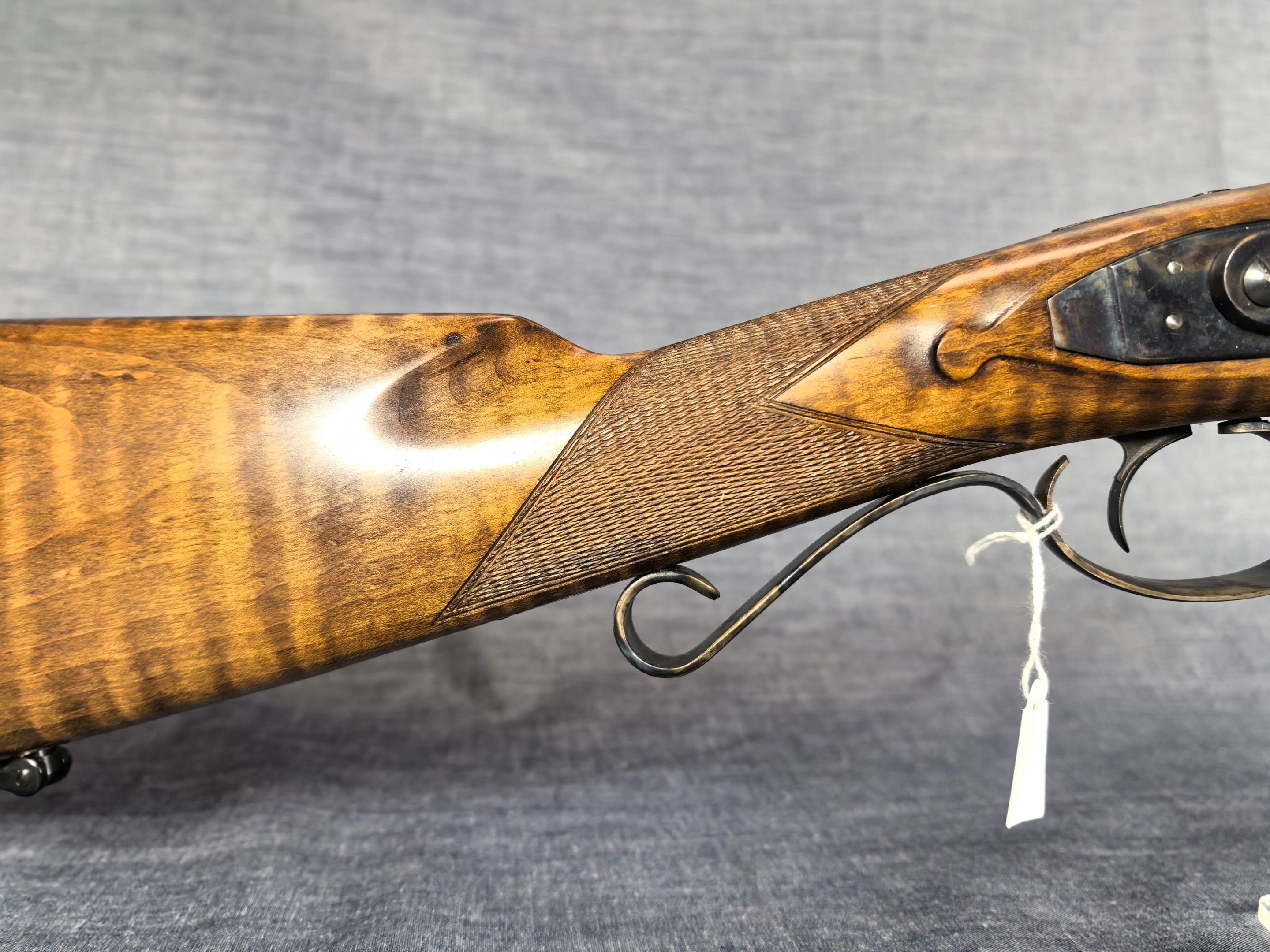 [Cat. D = +18years] Davide Pedersoli Mortimer black powder percussion shotgun - Cal. 12 pn - single shot- Octagonal barrel with cylindrical finish- Stock embellished with English cheekpiece and checkering- Case hardened lock and fittings- Muzzle loading. ramrod present. Number DA139314- TBE.