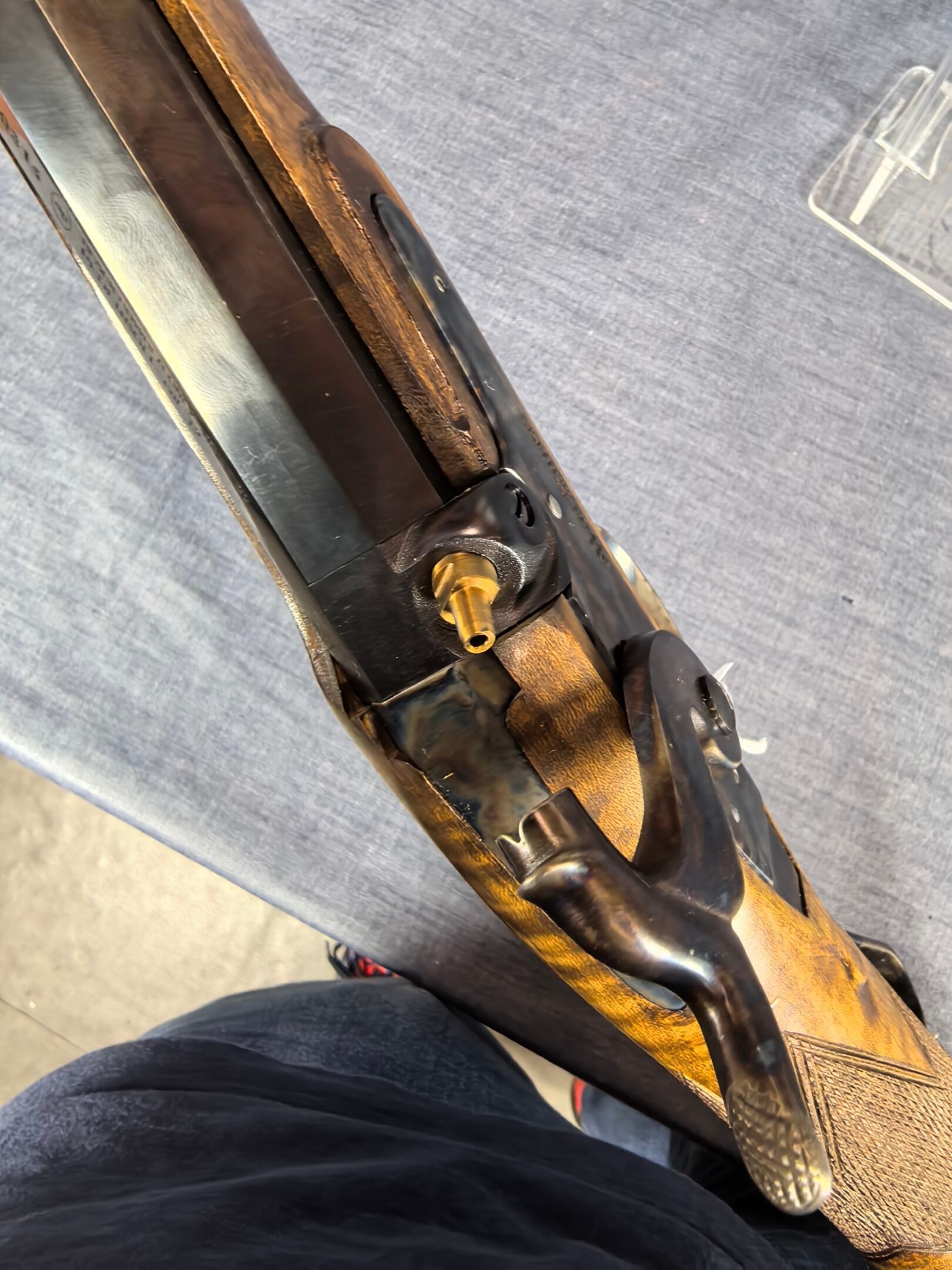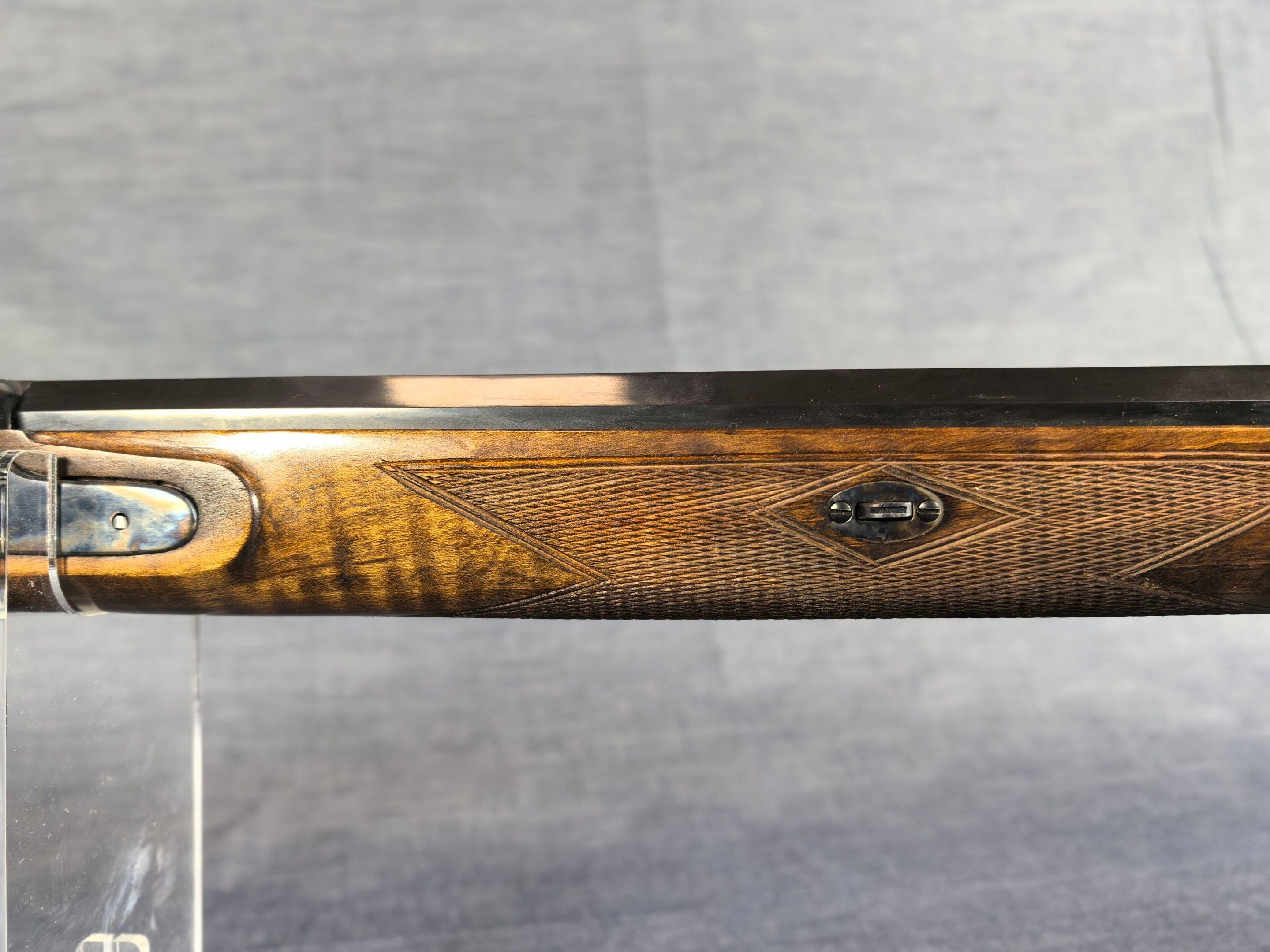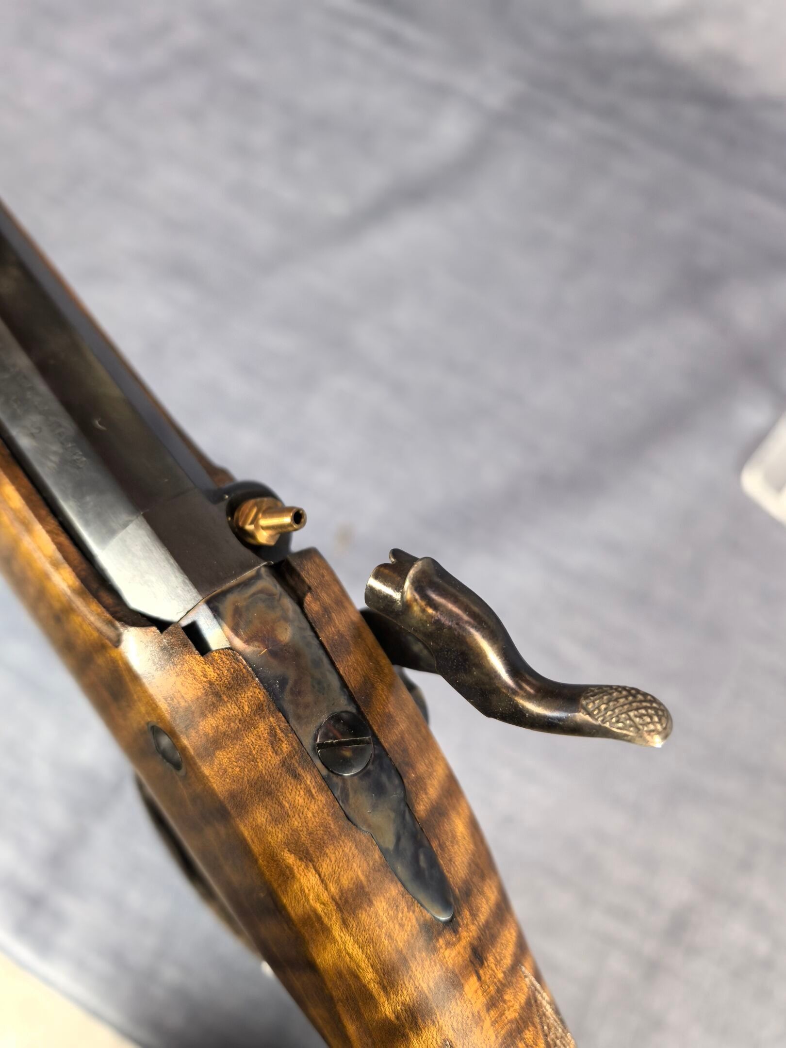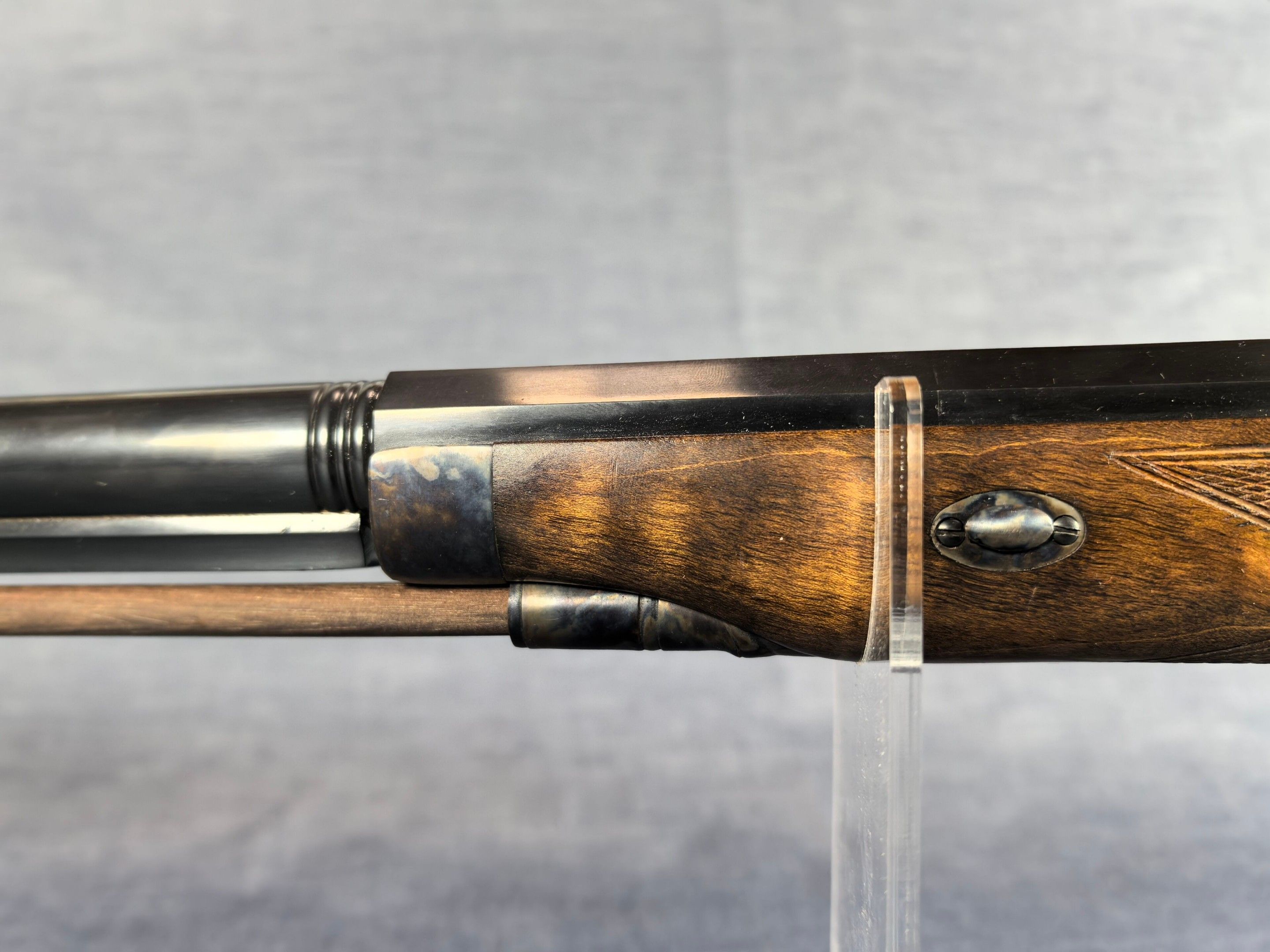 [Cat. D = +18years] Davide Pedersoli Mortimer black powder percussion shotgun - Cal. 12 pn - single shot- Octagonal barrel with cylindrical finish- Stock embellished with English cheekpiece and checkering- Case hardened lock and fittings- Muzzle loading. ramrod present. Number DA139314- TBE.