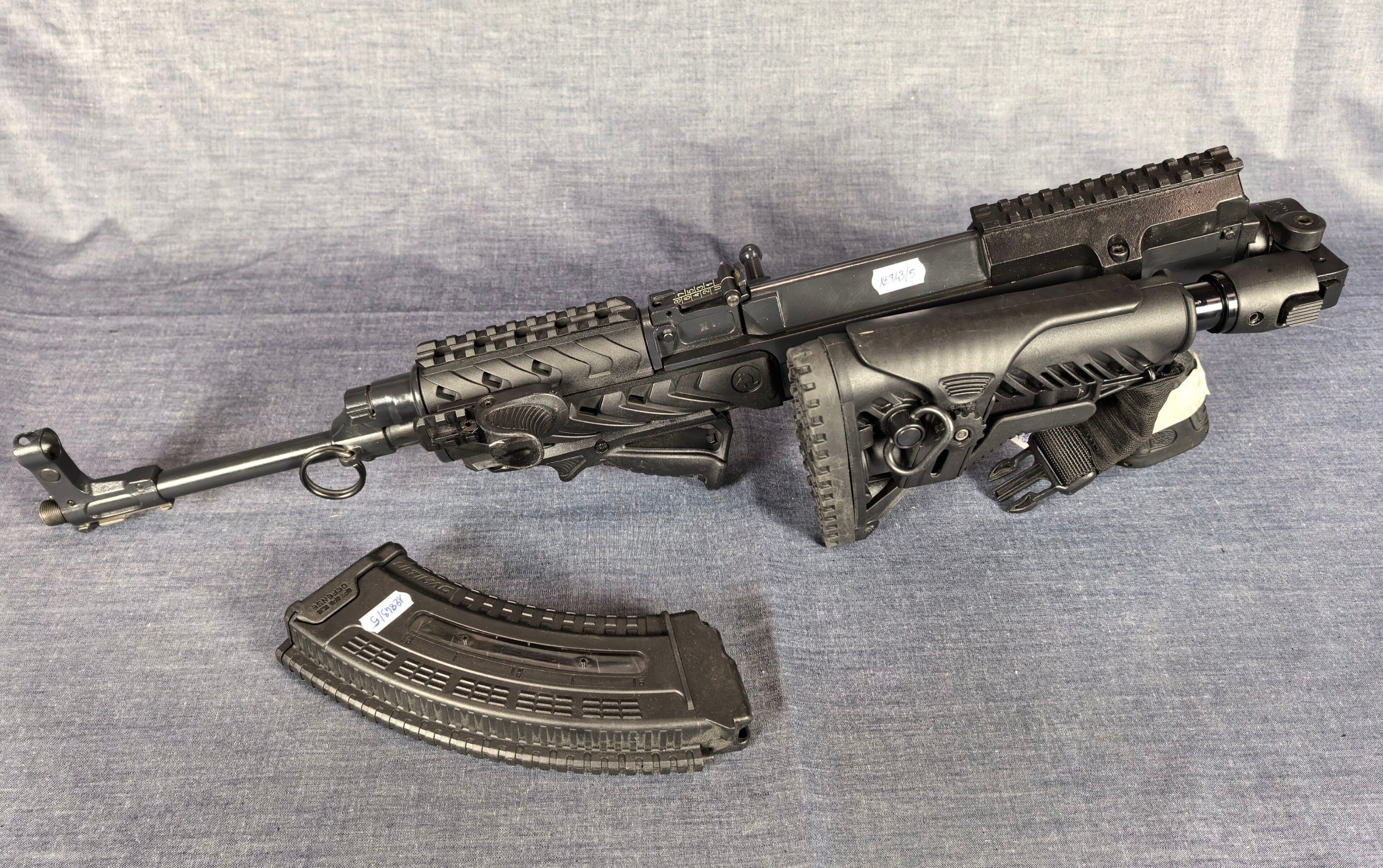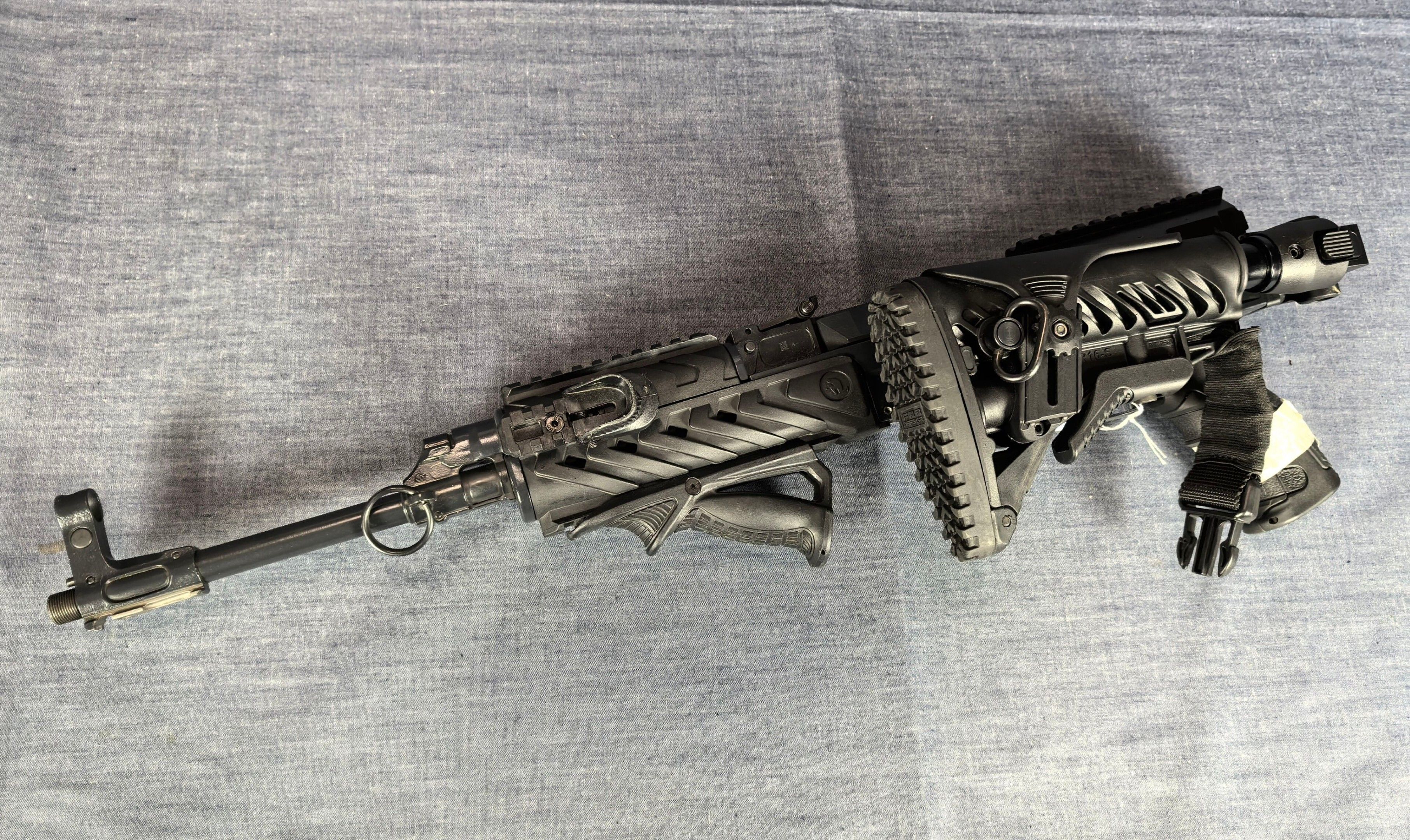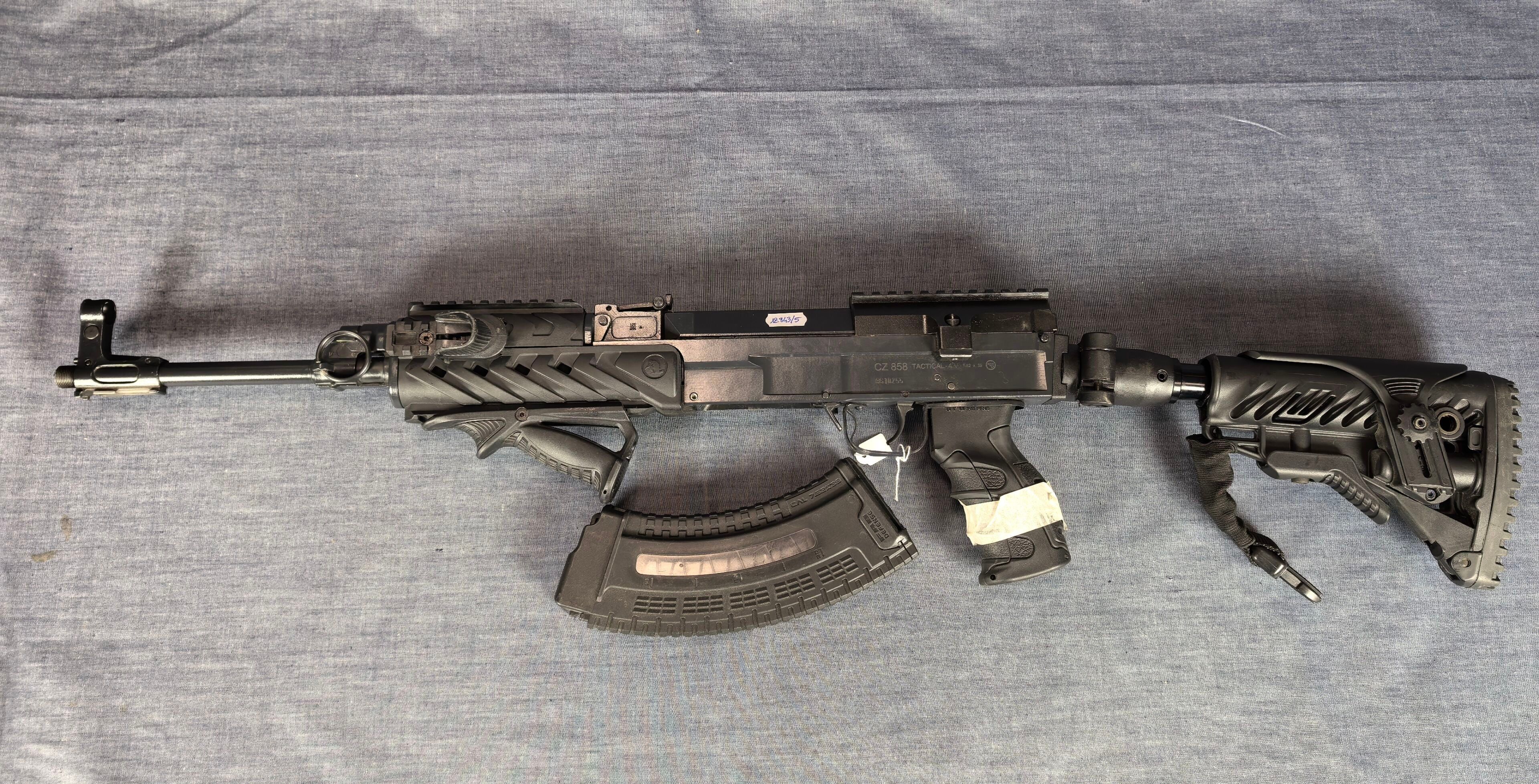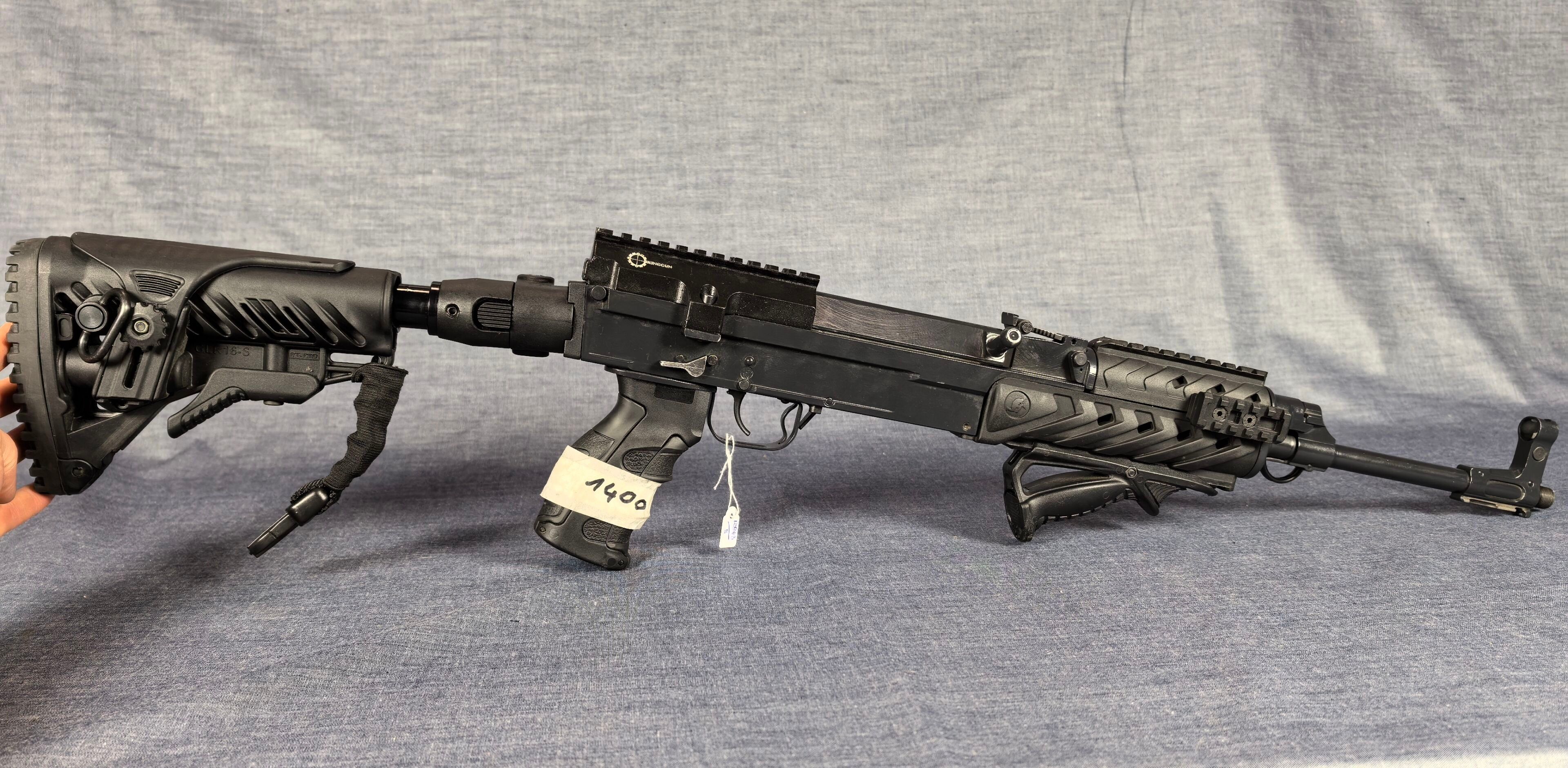 [Cat. B4b = Shooting Licence] CZ CARABINE, model CZ858 tactical 4V, serial number B610255, calibre 7.62*39. Barrel length 375 mm Various equipment including FAB defence with magazine. With its bag of transport.
