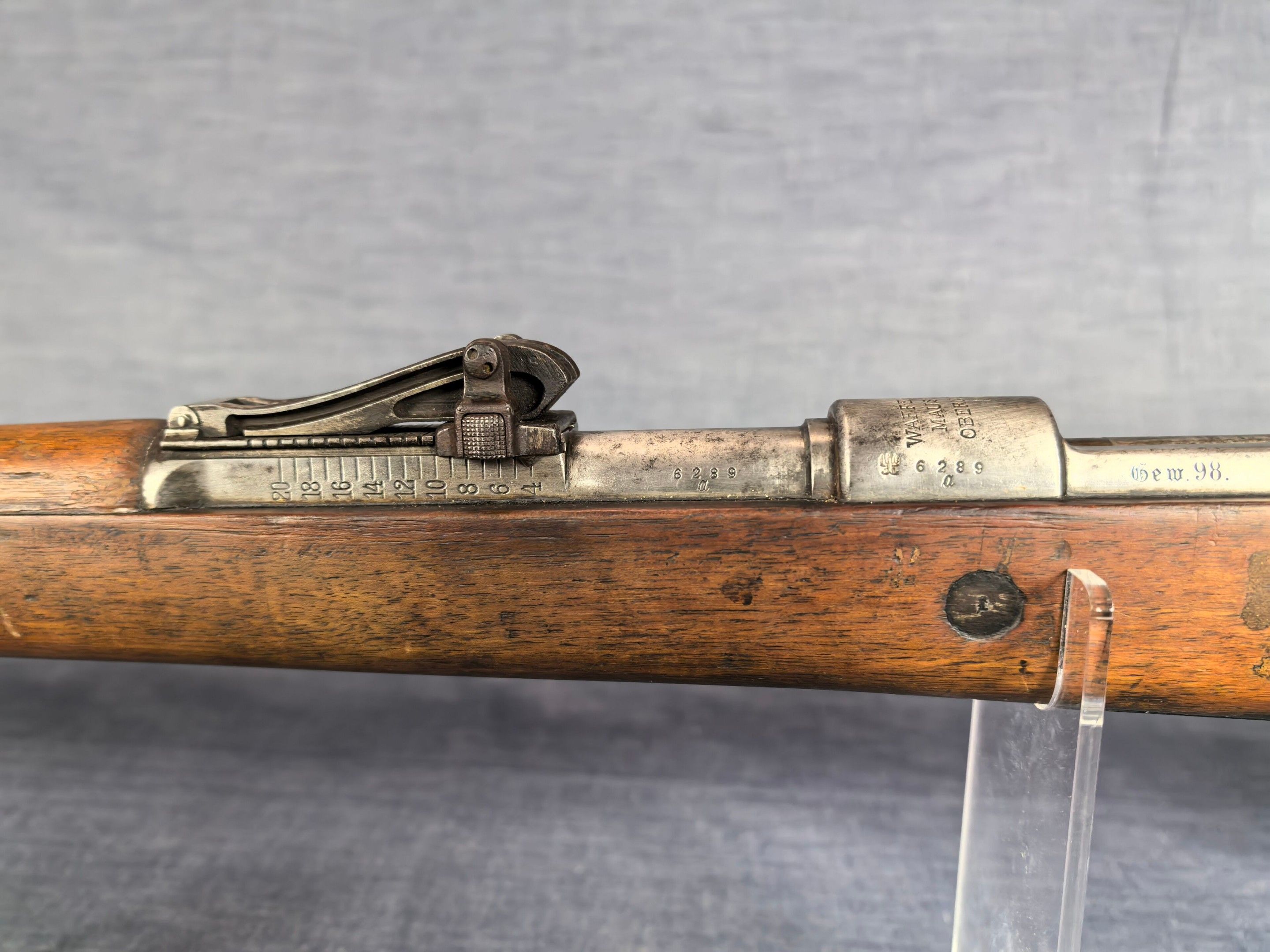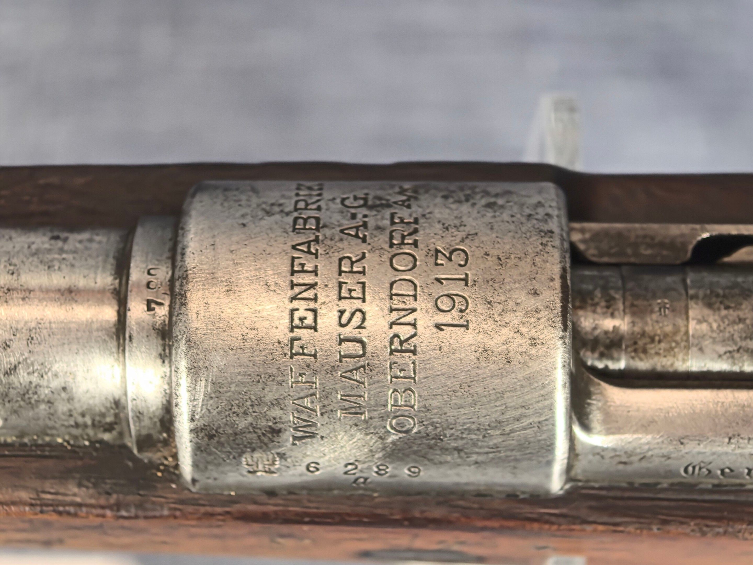[Cat. C = Shooting/Hunting Licence] Germany, WW1. Mauser Gew 98 repeating rifle, produced by the Waffenfabrik Mauser A.-G. Oberndorf A/N in 1913. Serial number "6289". All parts with the same number. Marking manufacturer on the thunder "WAFFEN FABRIK MAUSER A.G. OBERNDORF A/N 1913". Walnut stock with good hallmarks, ramrod not present.