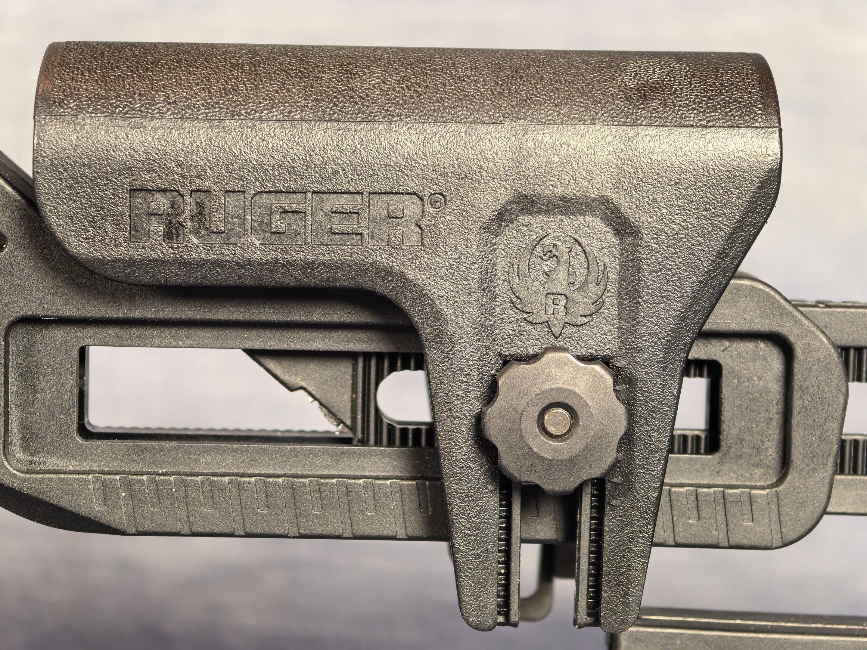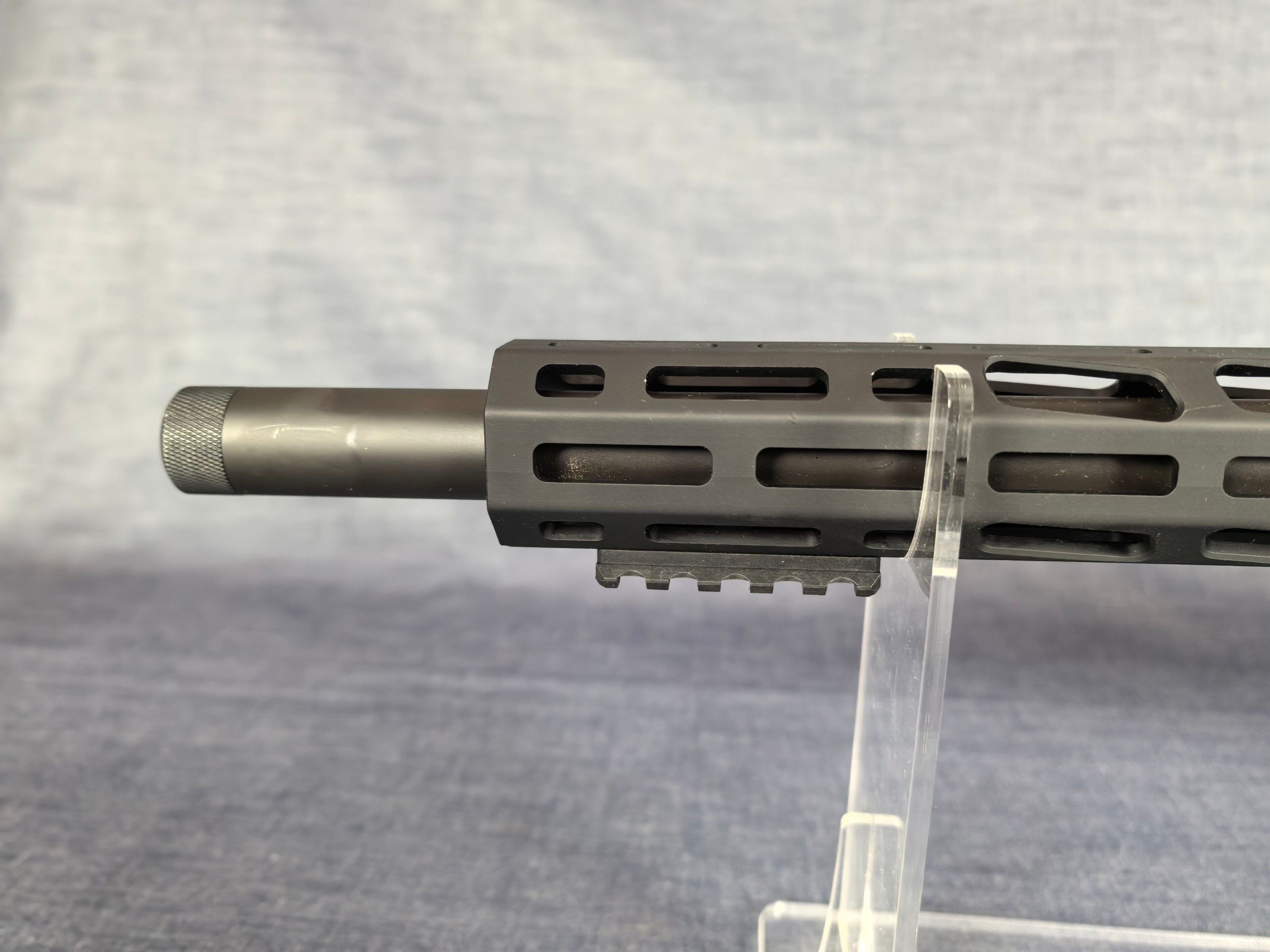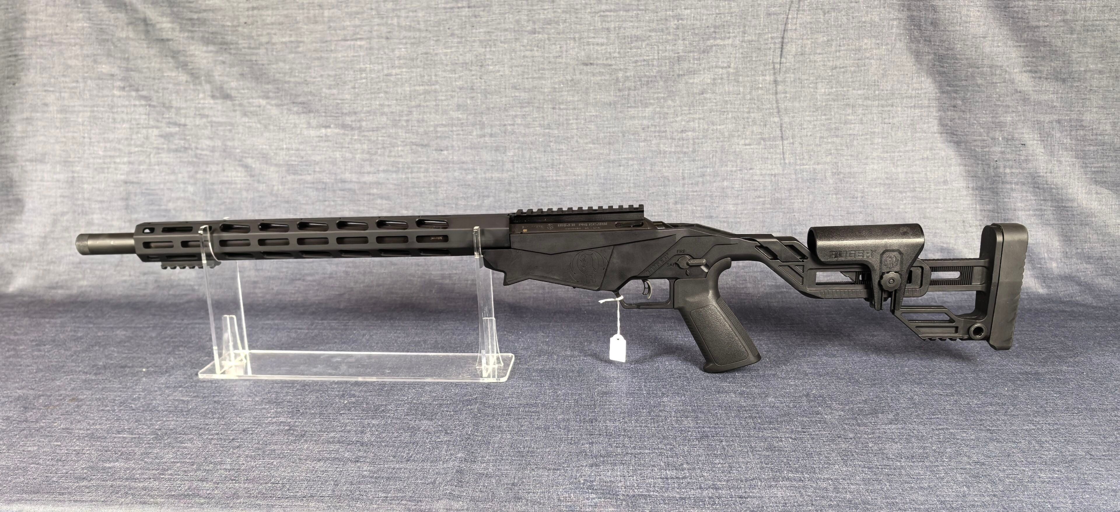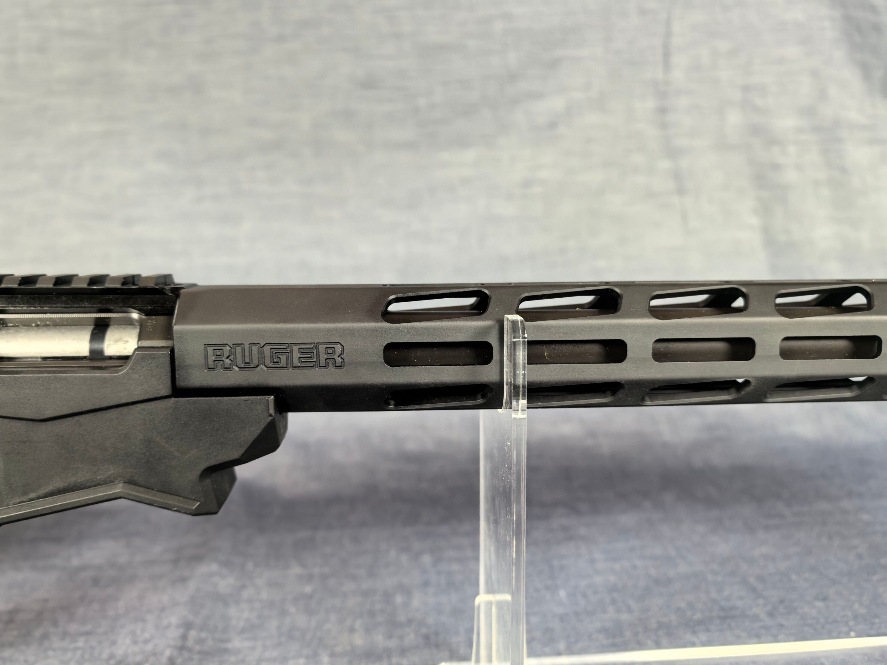 [RUGER Model: PRECISION RIMFIR Cal.22 lr, 46cm heavy barrel, 1:16" rifling pitch, 1/2 X 28 silencer thread. AR-15 Tactical type stock and grip, ergonomic black, ultra light, adjustable in length and adjustable busk. Picatinny rail for scope mounting, Oversized breech lever, M-LOK MAGPUL lightweight handguard.