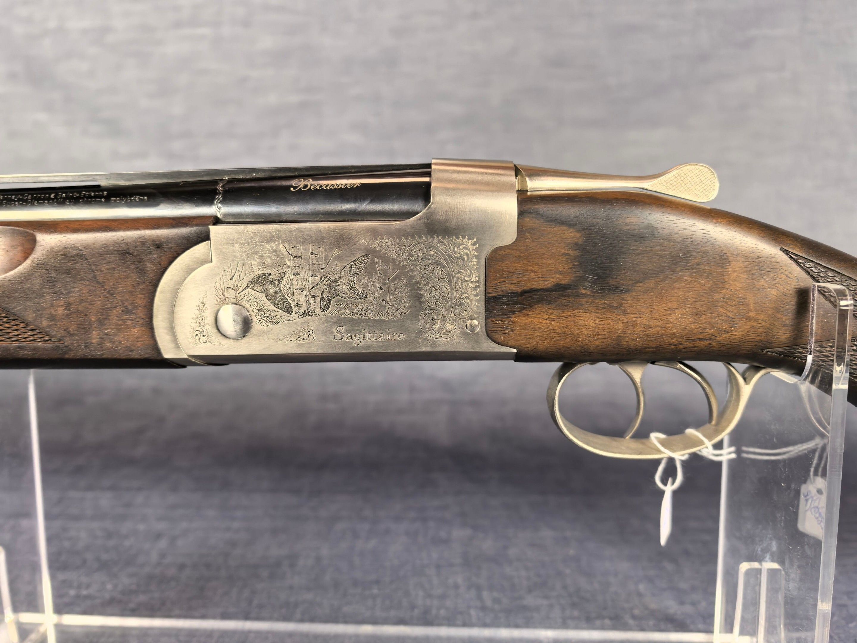 [VERNEY ET CARRON SAGITTAIRE BECASSIER double trigger 60 CM very good general condition mirror barrel, ventilated band. BARRELS :60 cm cold forged in "Super Diamant" chrome molybdenum steel, 1 smoothbore and 1 rifled 60cm - Verney-Carron lower tube with rifling N° 653120, RGA BJ523. Category C -