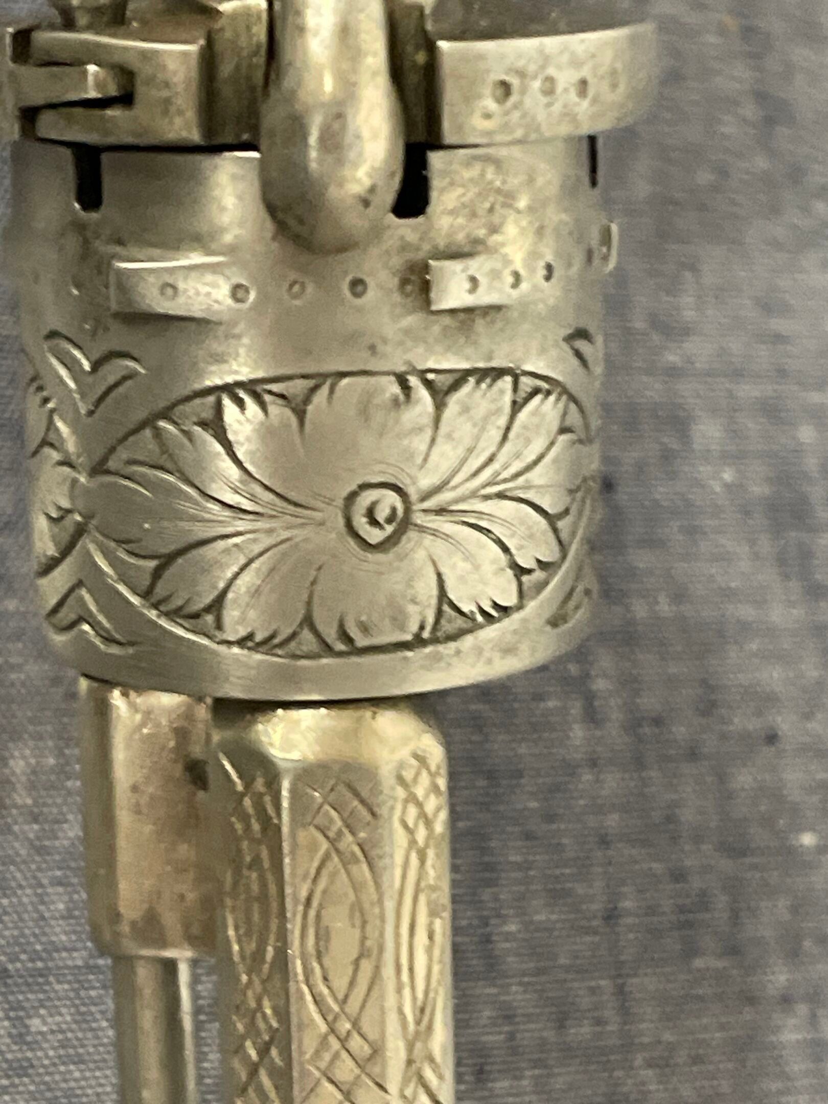 residual nickel plating, corrosion-free steel, floral and arabesque engravings