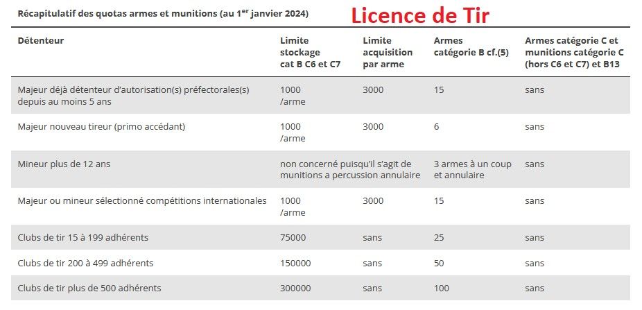 Weapons and ammunition quotas (Shooting Licence) => https://www.armes-ufa.com/spip.php?article3342
