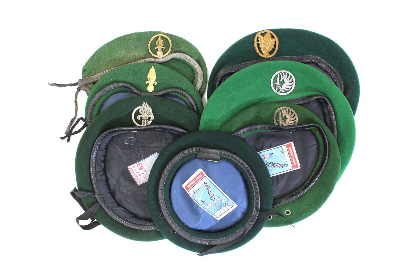 Set of 7 green berets: legion infantry regiment, 1964-1974 first legion infantry regiment, air commandos, german beret, 1958-1964 legion paratrooper, legion paratrooper