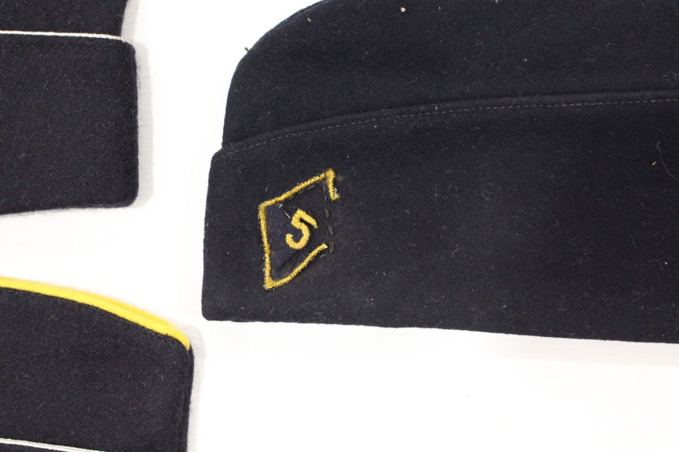 Set of 5 caps: 3 model 1957 of officer of chasseurs d'Afrique, chasseur d'afrique, model 1956 of the 5th regiment of chasseurs in Perigueux.