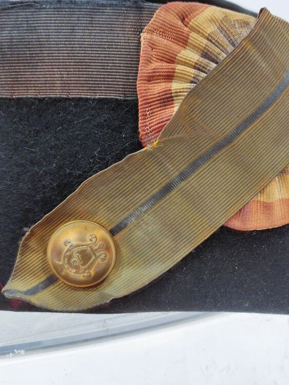 Republican Guard musician's bicorne based on the 1885 model, silver braid, non-original gilt lyre button, no internal markings. ABE.