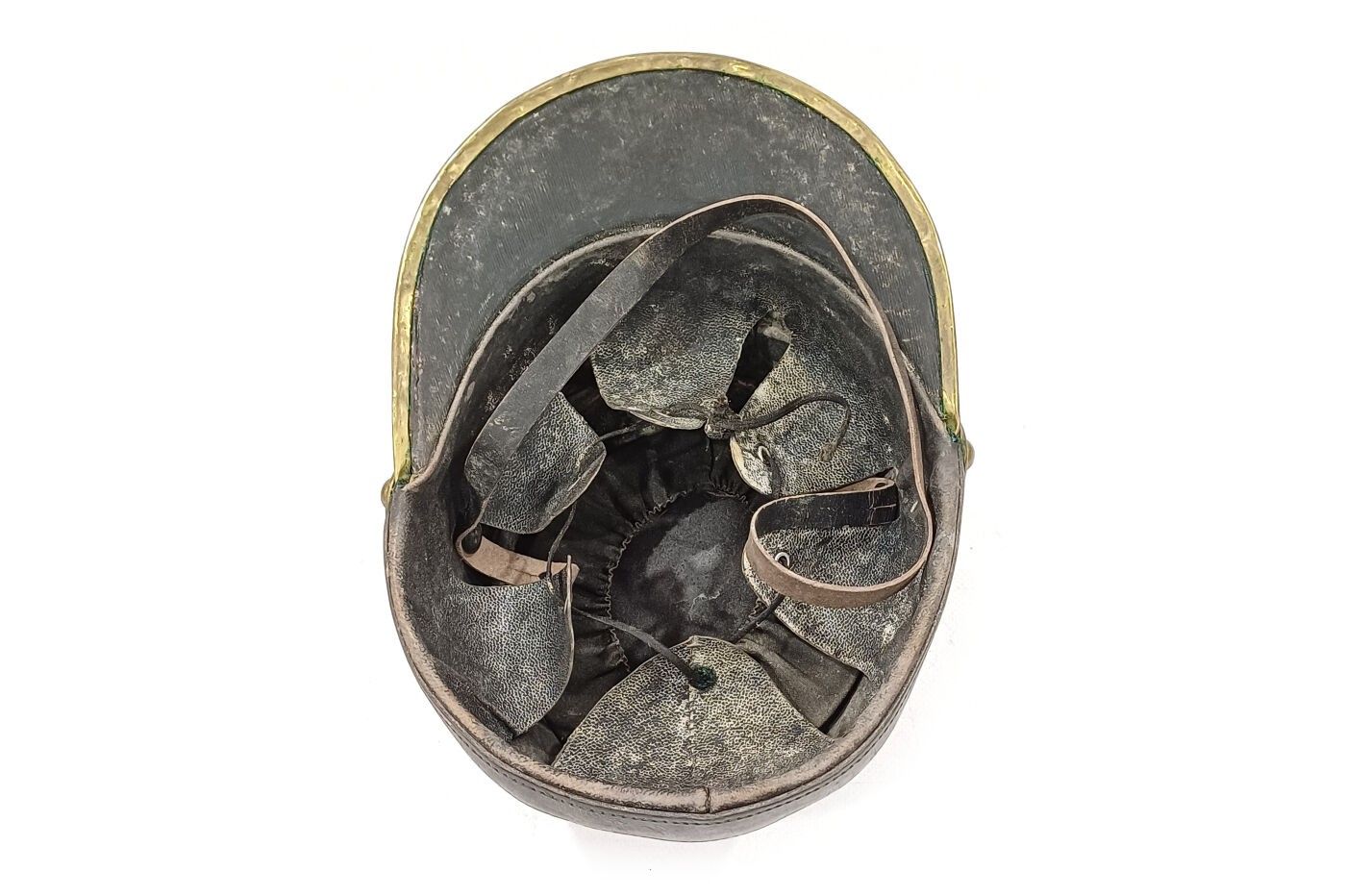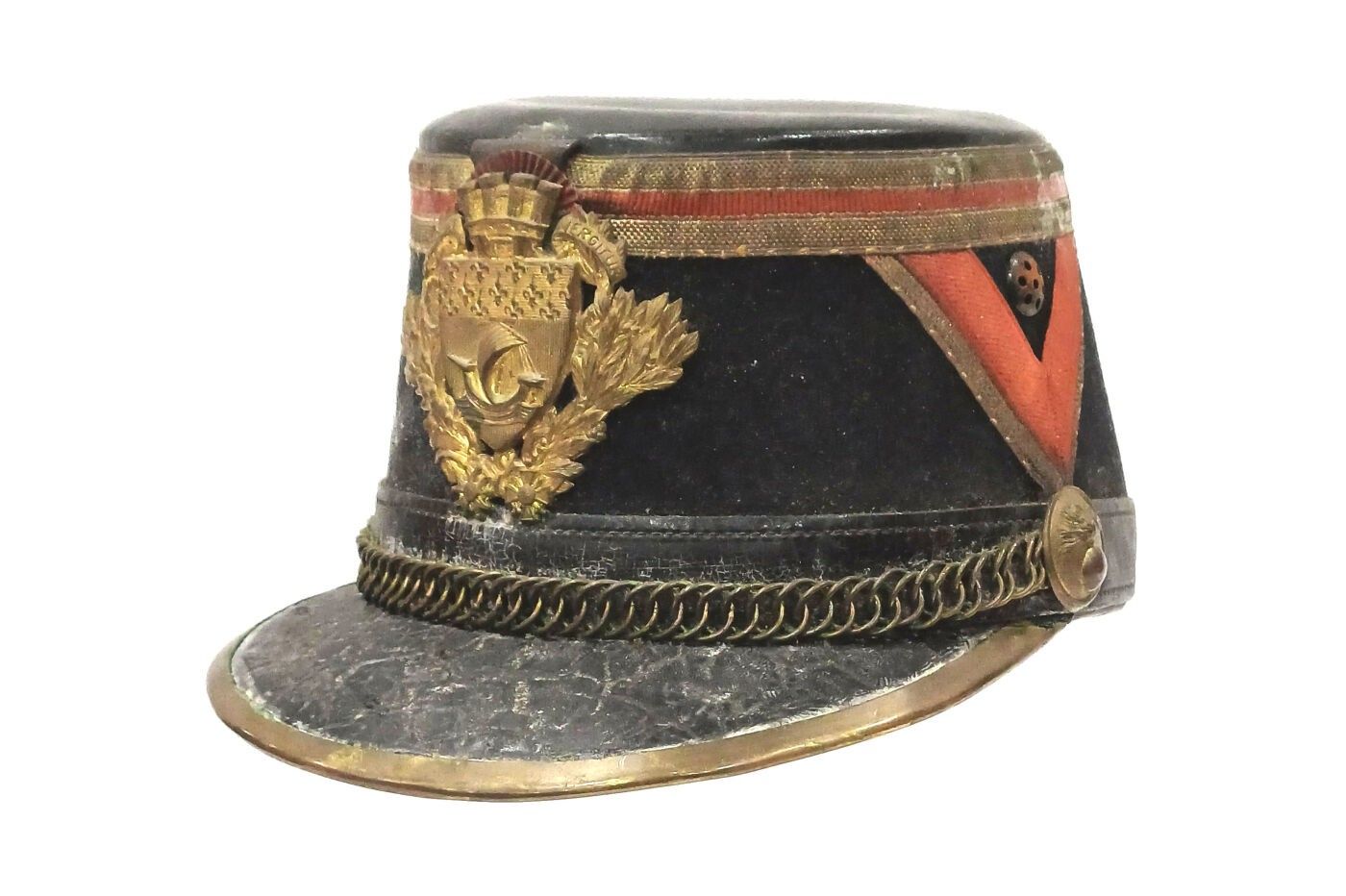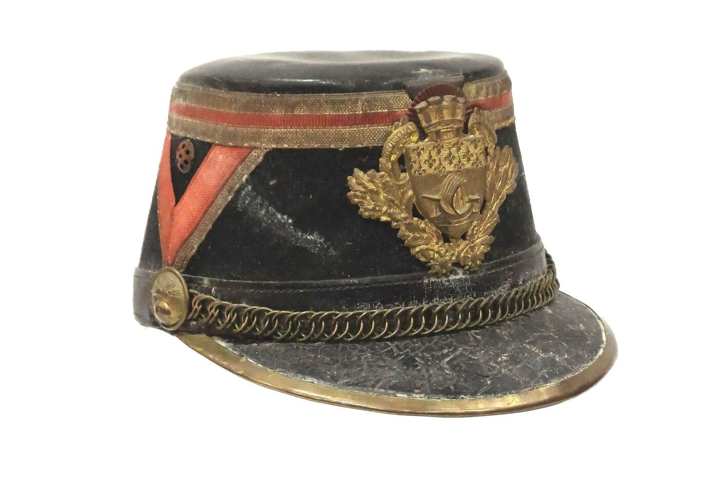 Shako of the Republican guard model 1933, badge with the weapons of Paris, Fluctuat Nec Mergitur, tricolour cockade inserted under the badge, without thistle. ABE.