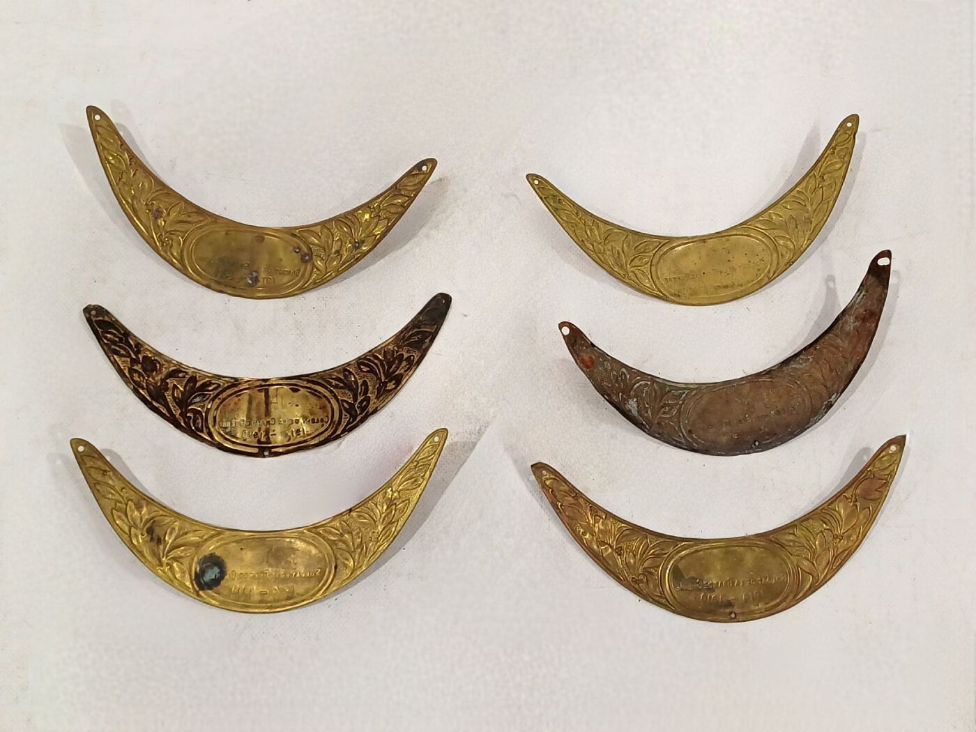 Set of 6 Adrian helmet plates marked Soldier of the Great War 1914-1918 including one marked Martenet Henri 24th BCA. ABE.