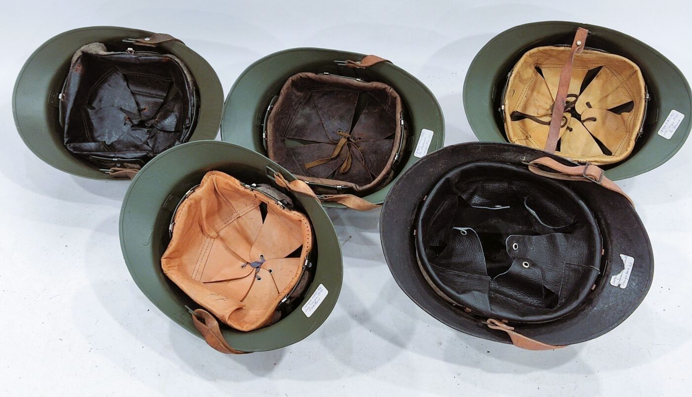 Set of 5 Adrian model 26 helmets, repainted, old and modern …