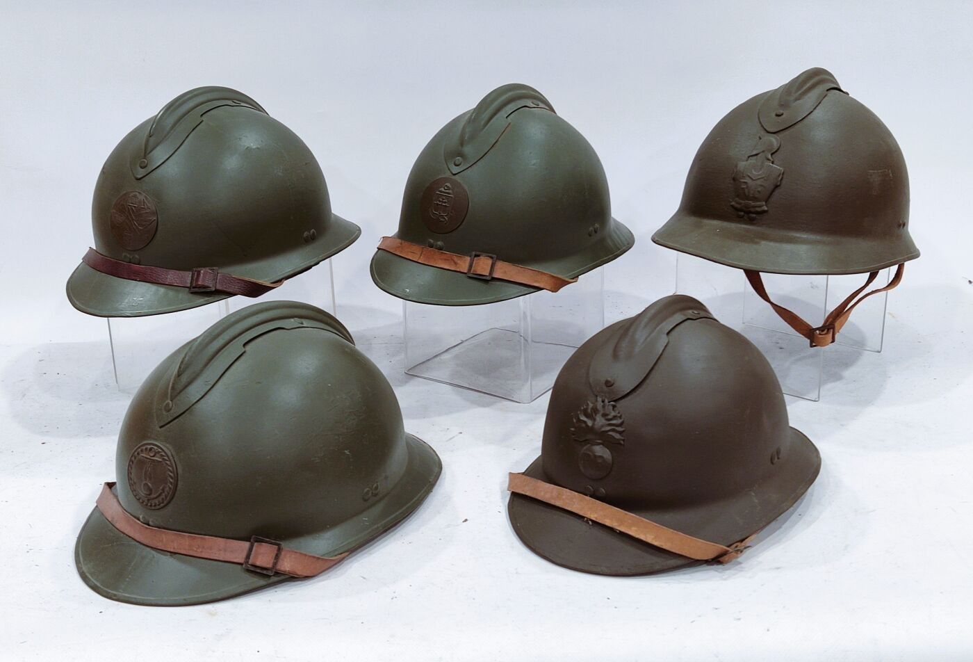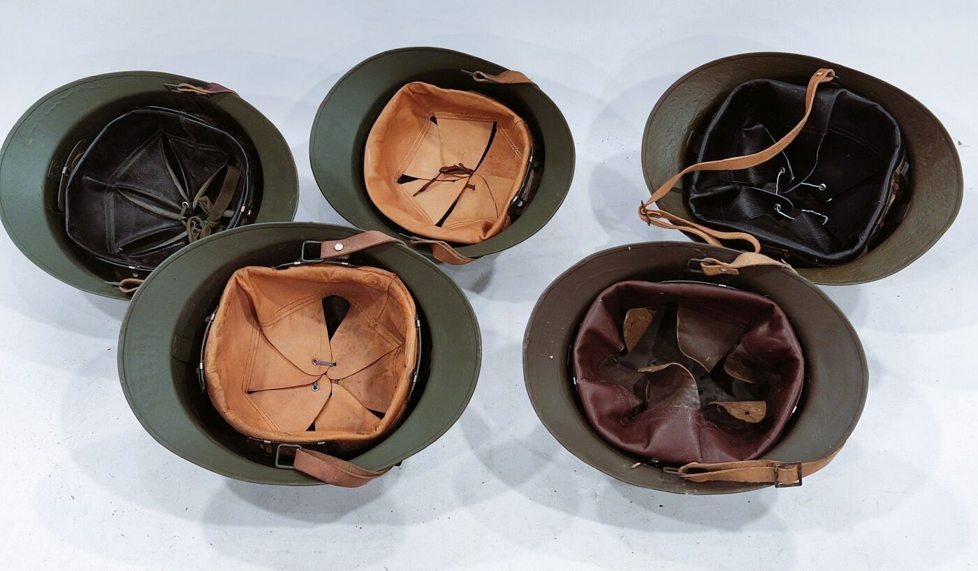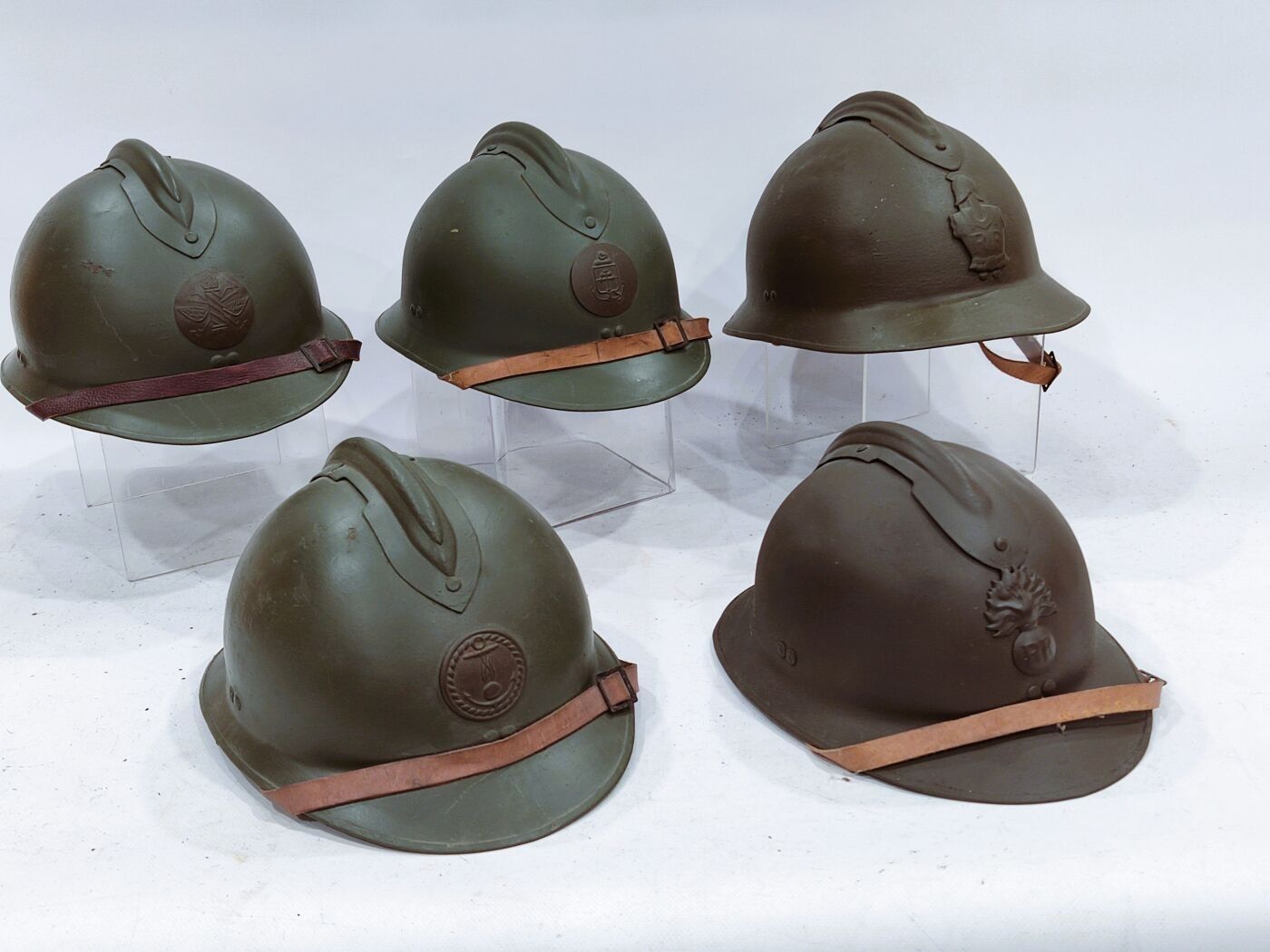 Set of 5 Adrian model 26 helmets, repainted, old and modern …