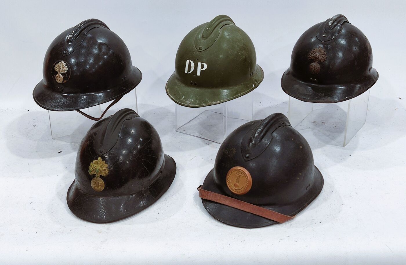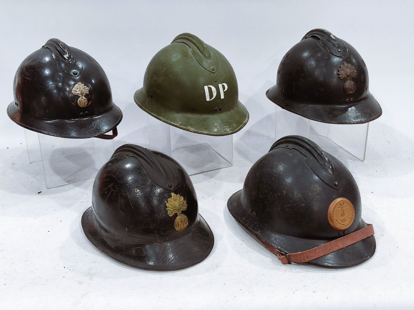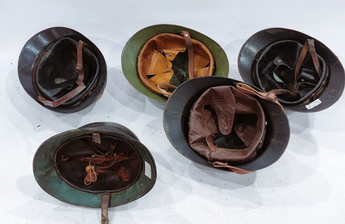 Set of 5 Adrian model 26 helmets, old and modern internal ca…
