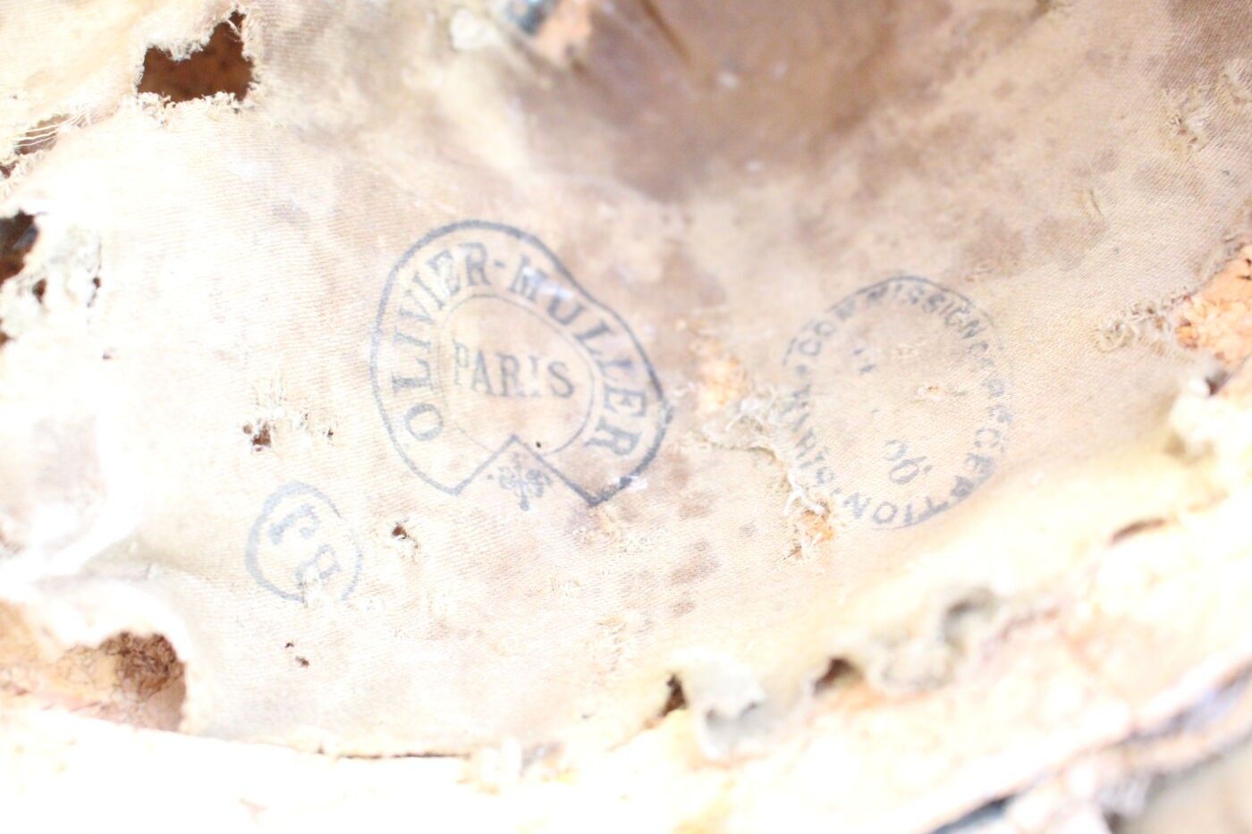 Colonial gendarmerie model 1886 cork helmet covered in bleached canvas, without leather headband but with chinstrap, silver front grenade, marked MULIER, Paris. 3rd Republic period. EM