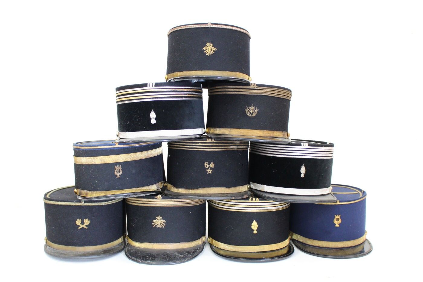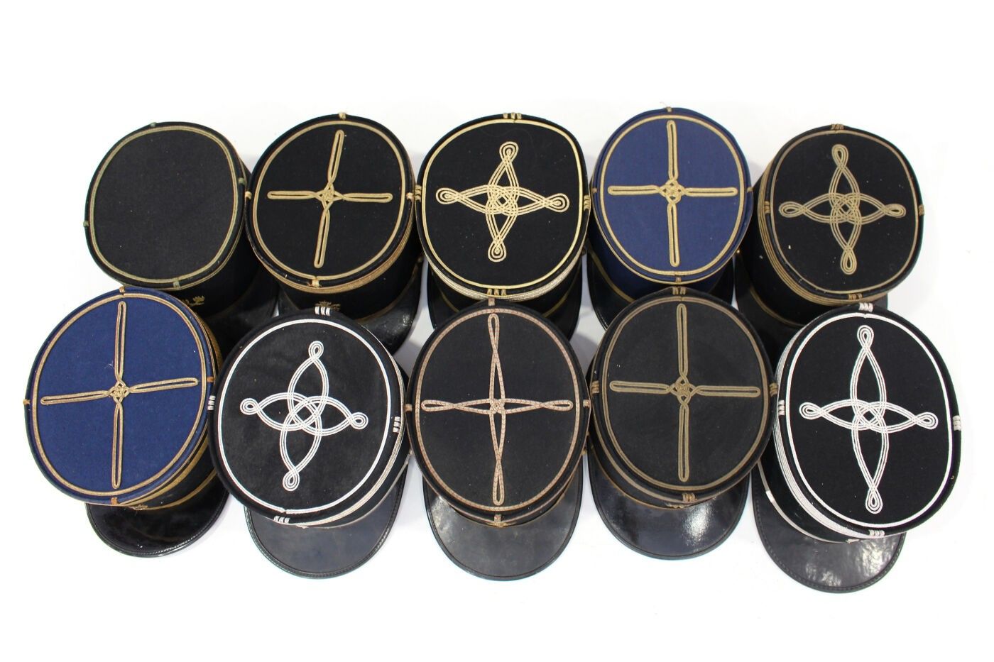 Set of 10 officers' kepis from various corps, powder service…