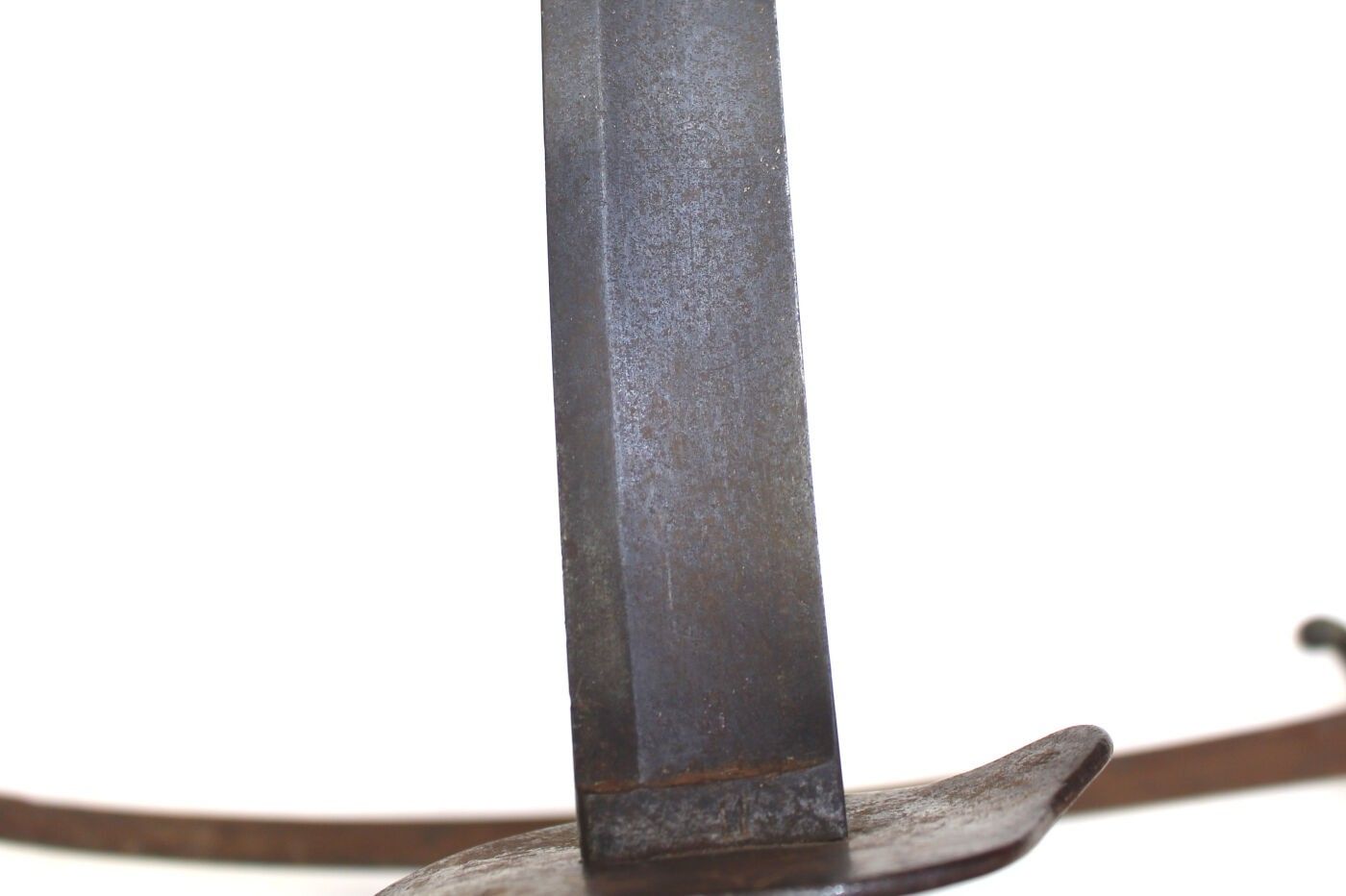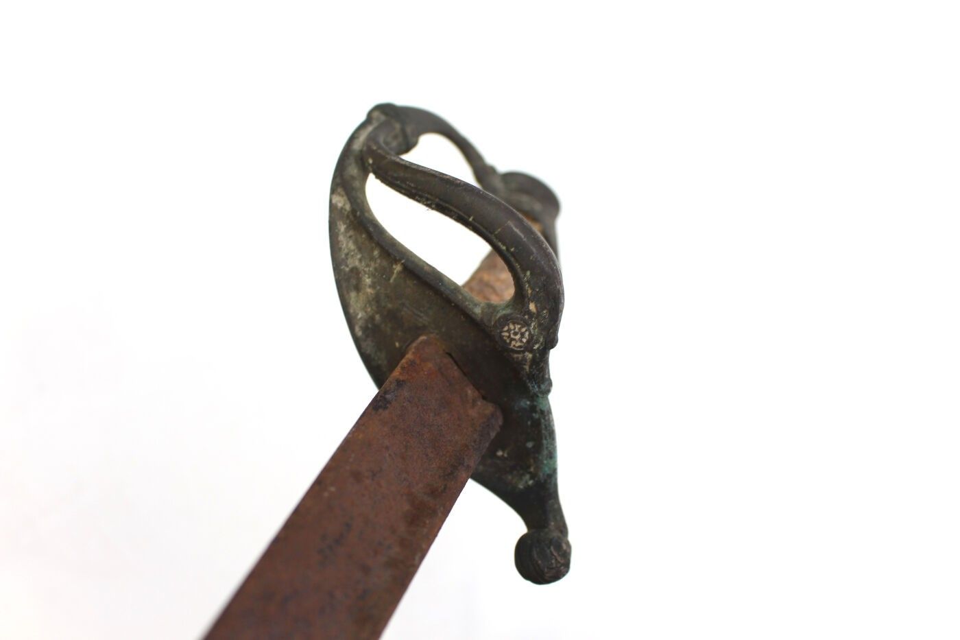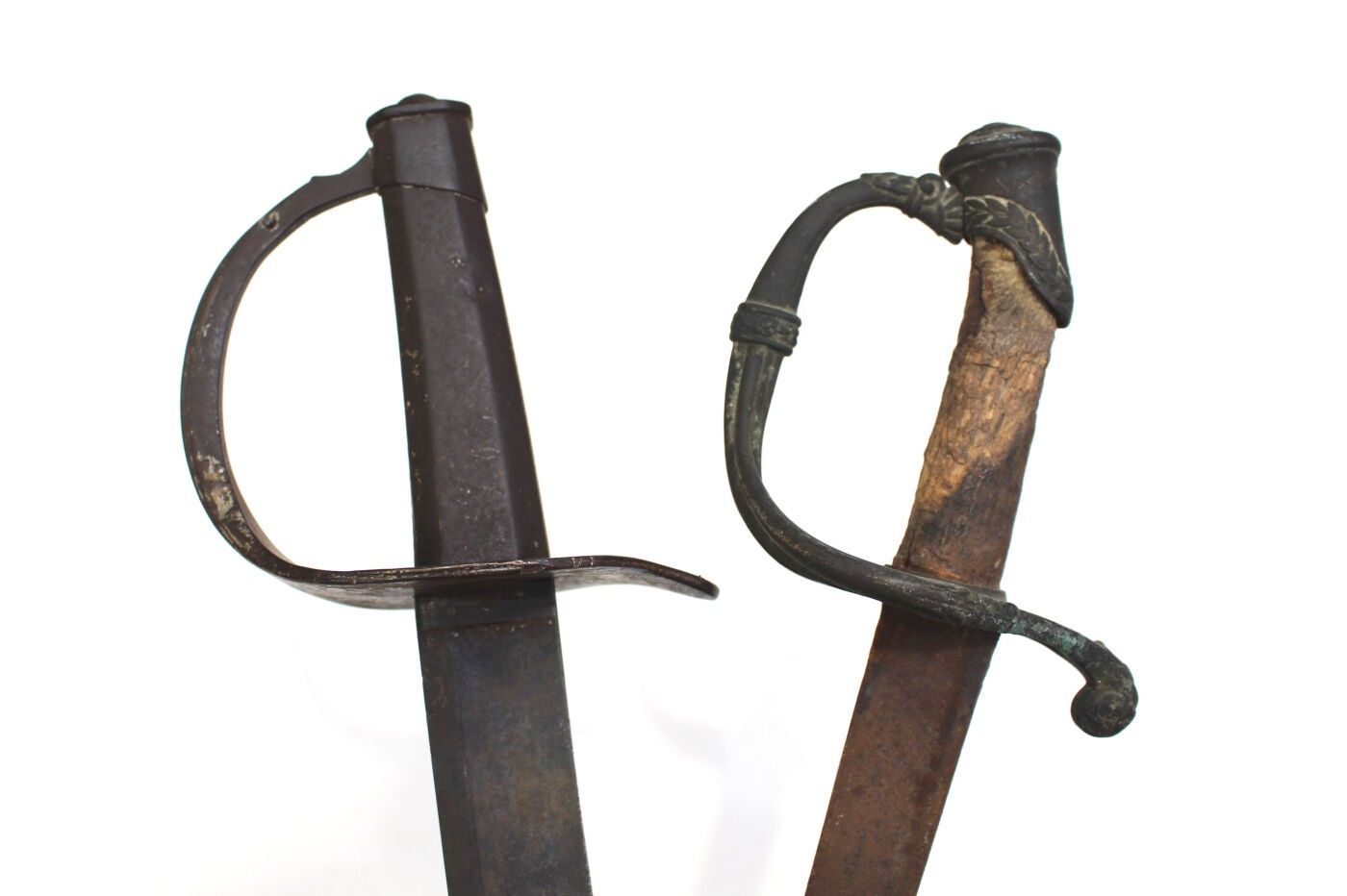 Set of 2 French sabres. A boarding sabre model 1833, France, Monarchie de Juillet, shell removed, oxidized, without scabbard, back marked Manufacture Royale de Châtellerault (...), total length 82 cm, blade 68 cm. An infantry officer's sabre model 1821, oxidised, damaged bare wood spindle, overall length 90 cm, blade 76 cm. Poor condition.