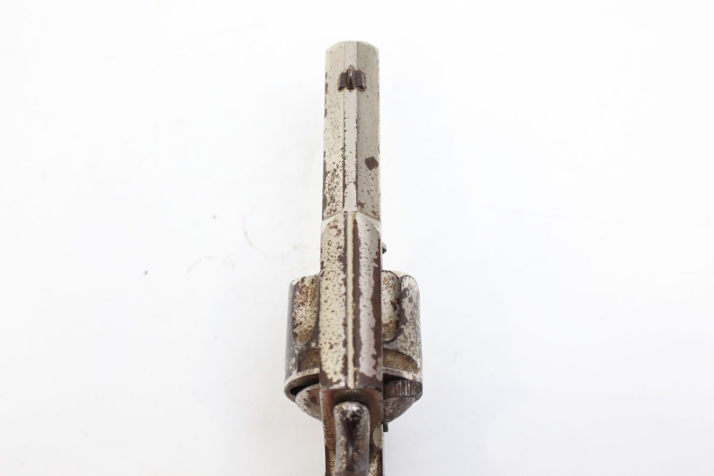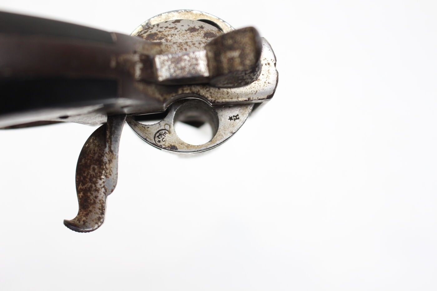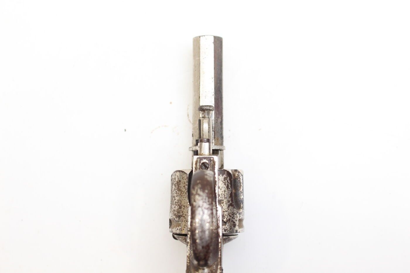 Bulldog type revolver, Belgium, late 19th or early 20th century. 5-shot cylinder, marked ELG for the manufacture of Liege and K spangled, octagonal barrel marked K spangled, damaged nickel plating, oxidation. Overall length 19 cm, barrel 7 cm, muzzle diameter 11 mm. Average condition, working mechanism.