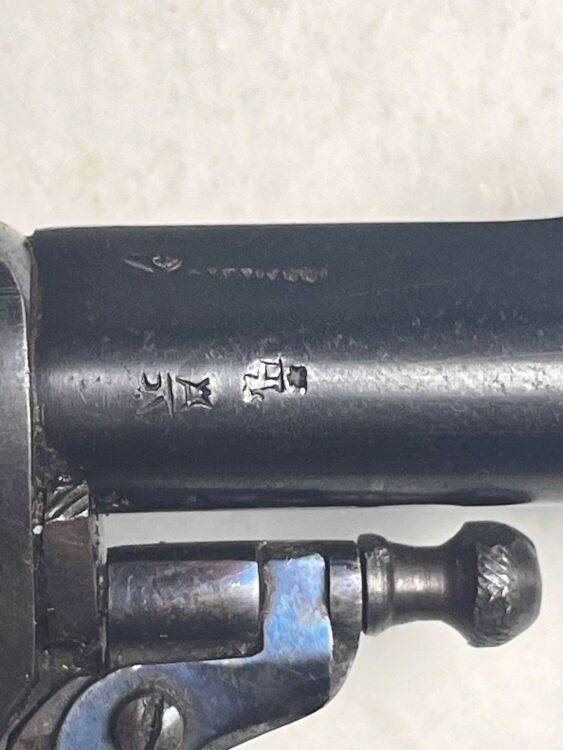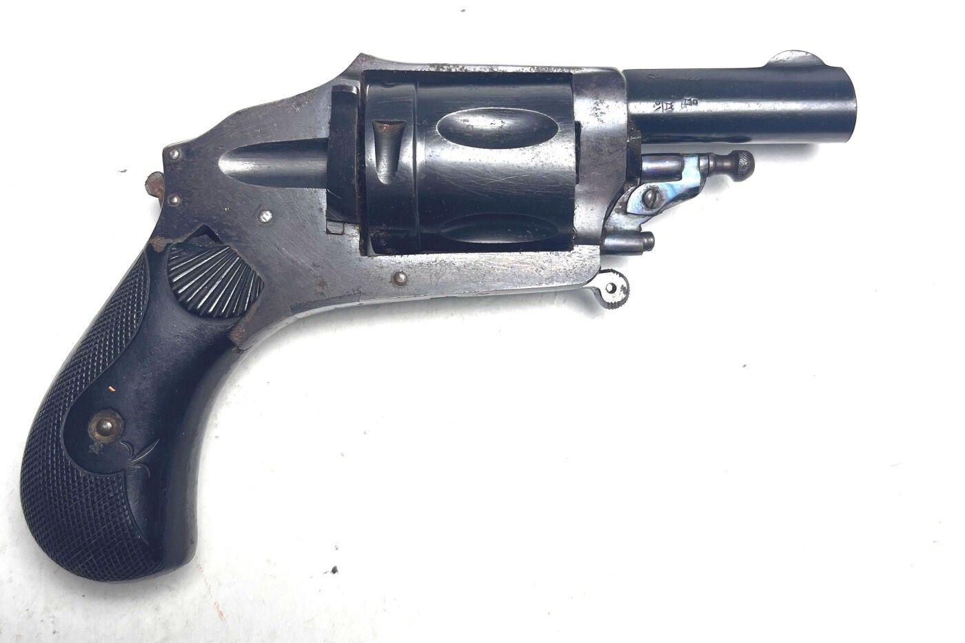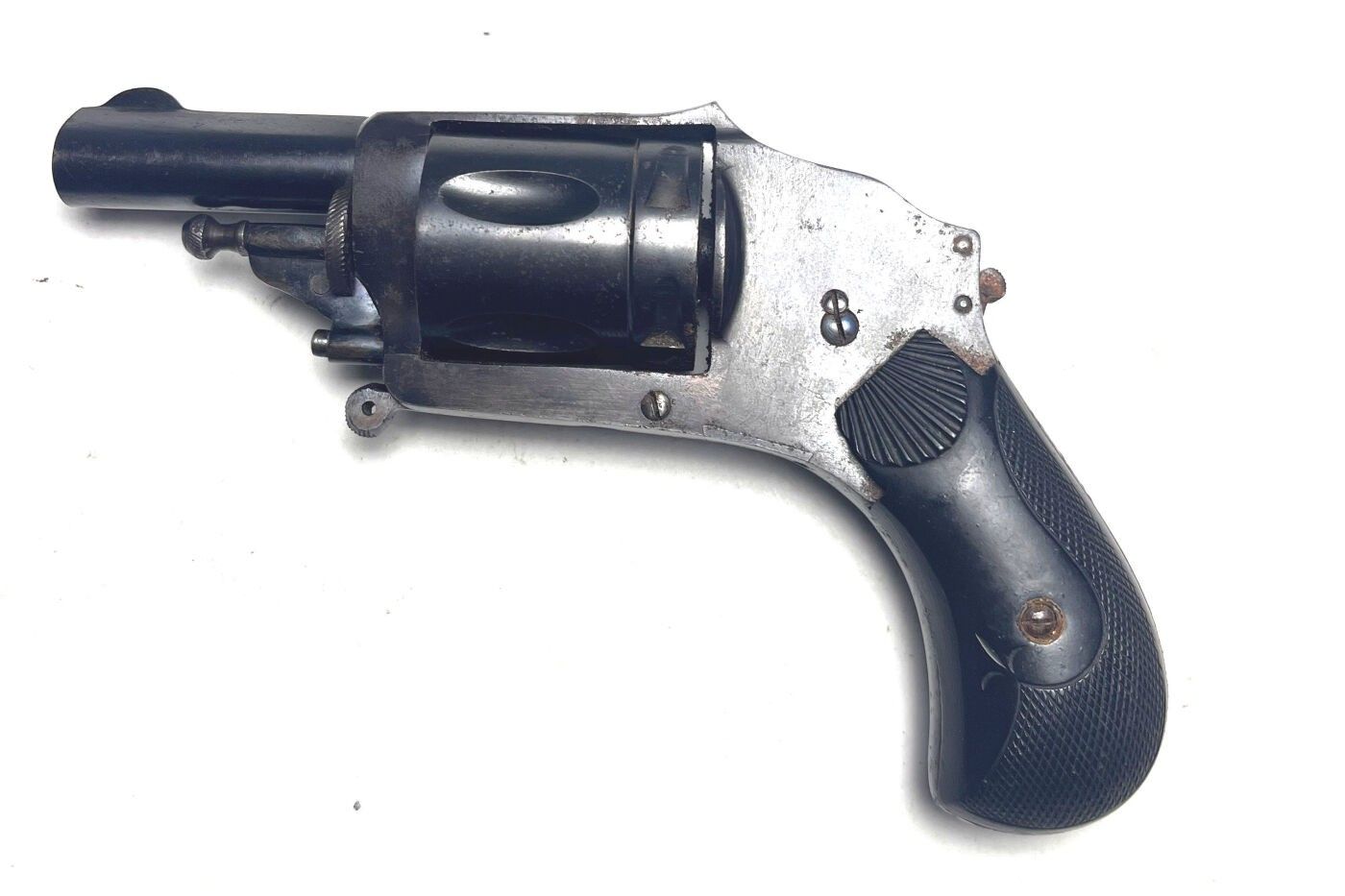 Hammerless revolver, France, late 19th or early 20th century. Barrel with 5 shots, parts with the same number 21, punches of control, marked St Etienne. Overall length 17 cm, barrel 4 cm, muzzle and chamber dimensions 8 mm. Good condition, in its original bronzing, small lack on a plate, functional mechanism.