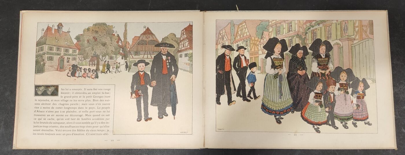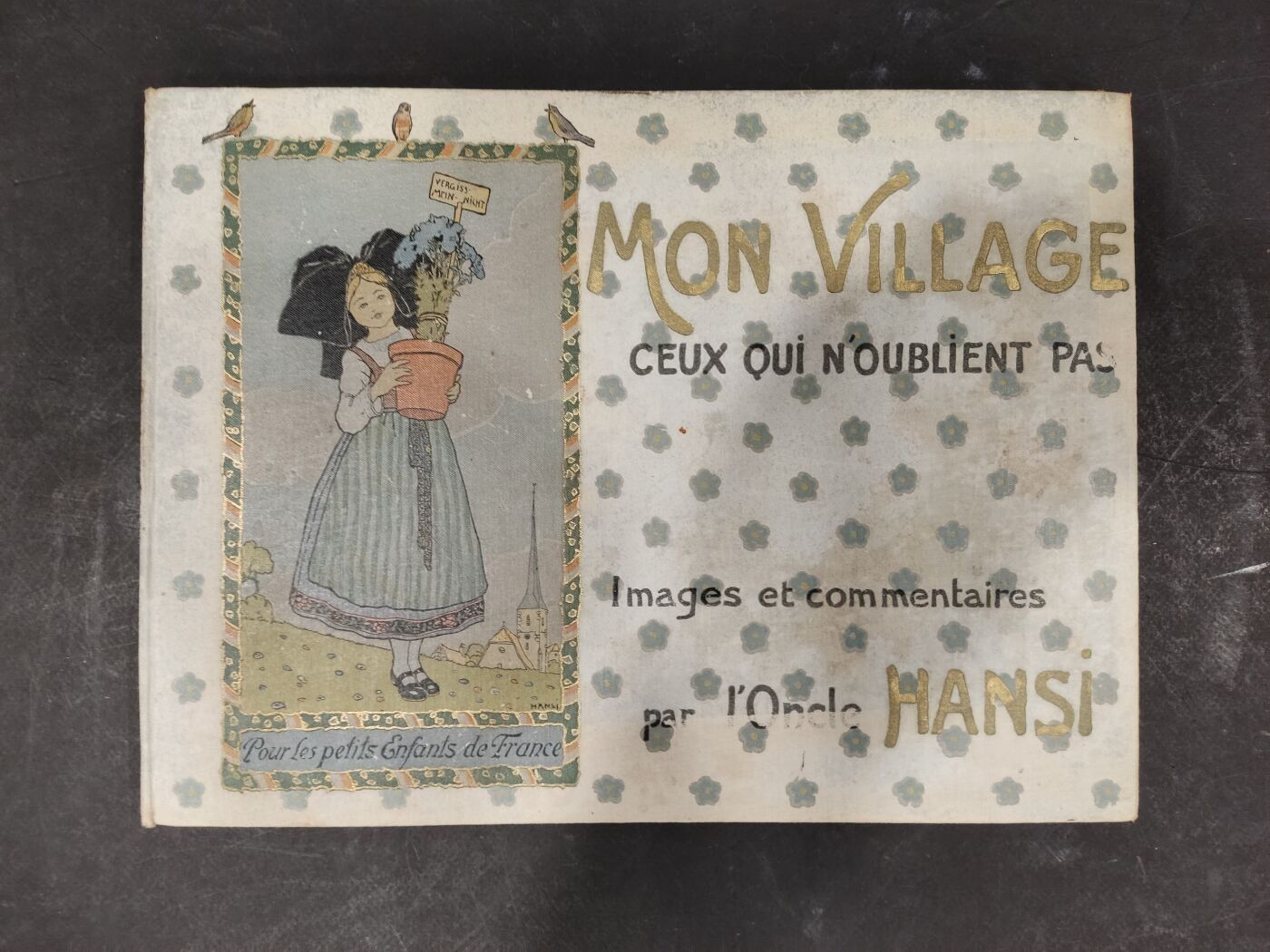 -HANSI "Mon village - Ceux qui n'oublient pas", F. Floury - éditeur, in-8, percaline binding. Freckles, some spotting, inscription in ink on flyleaf, tears at joints between front cover and flyleaf, boards seem to have become damp (faded colours, spine in poor condition).