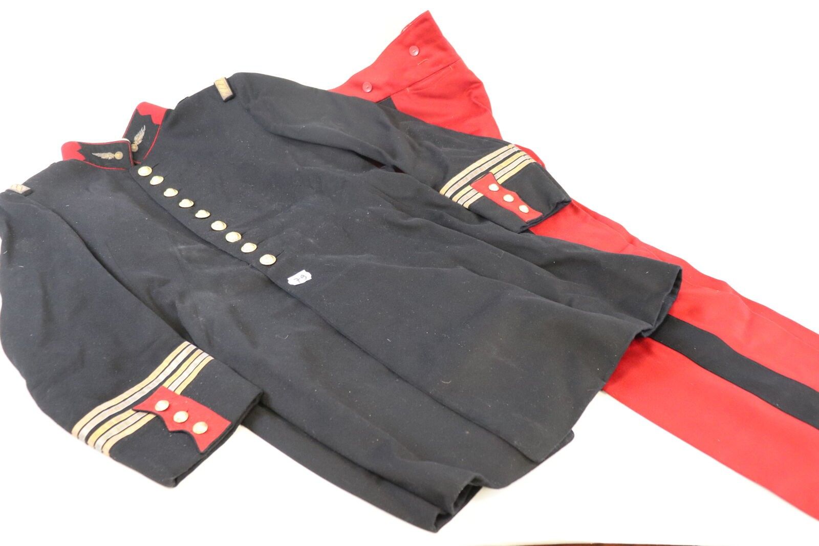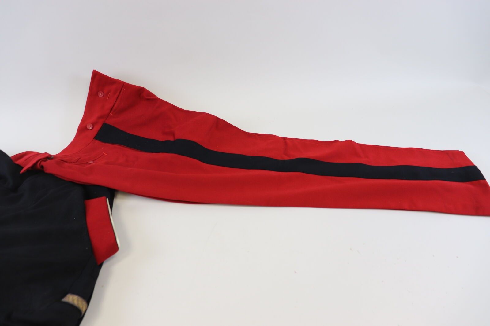 Lieutenant-colonel's uniform: black cloth tunic, red collar and facings, gold buttons; red trousers with black stripe. ABE