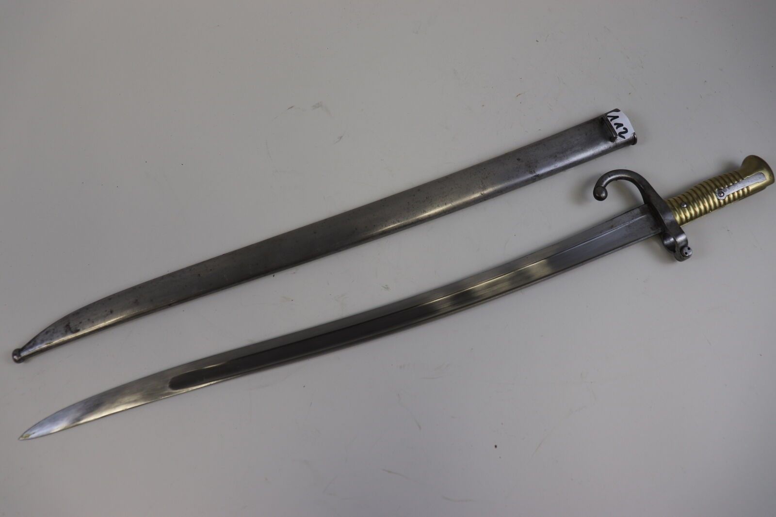 France Bayonet, model 1866. Blade dated March 1873. Iron scabbard. Same number. (oxidation).