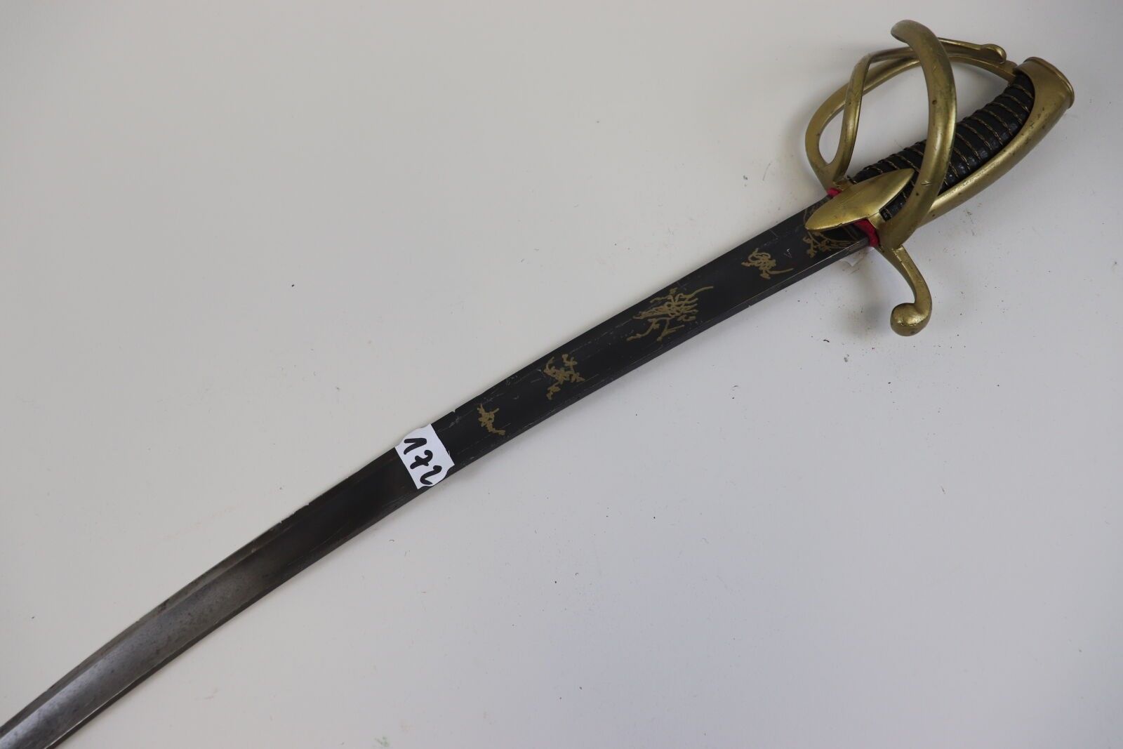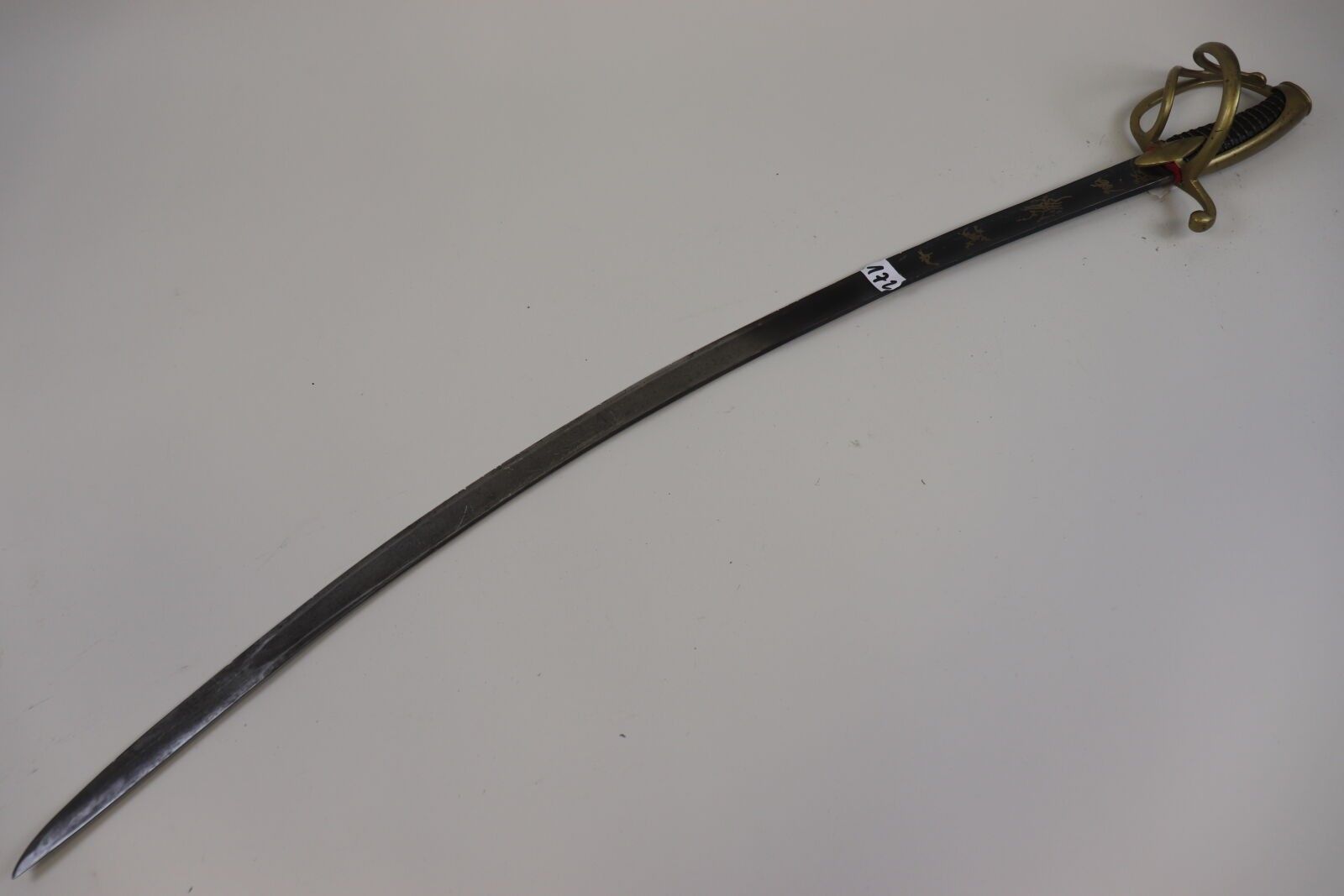 Light Cavalry sabre, AN IX type. Brass three-point hilt. Curved blade with hollow sides. In SF condition (composite, restorations, re-coloured).