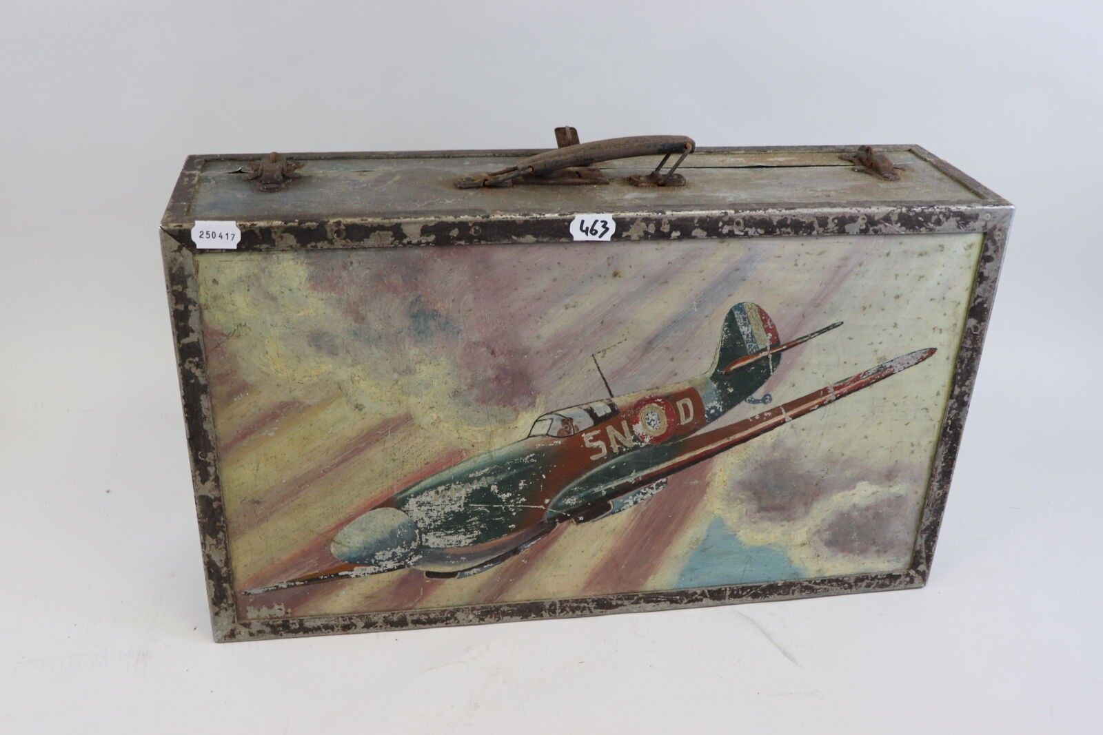 Aluminium suitcase, painted with a Spitfire on one side and …