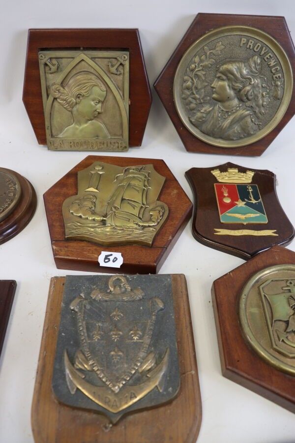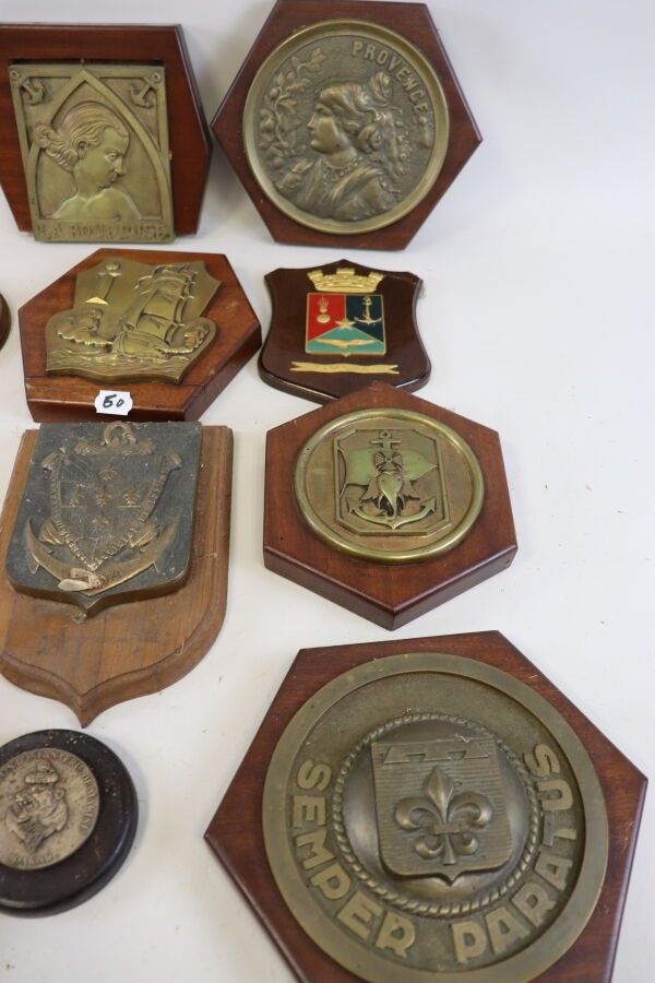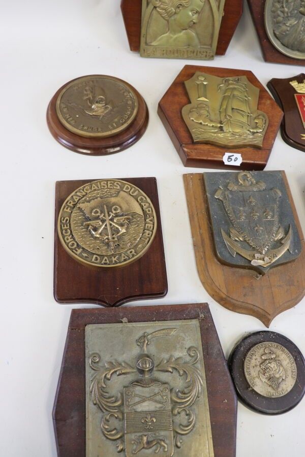 France Lot of 11 mouth plates, bronze, 11 RAMa, Jean Bart, Semper Paratus...