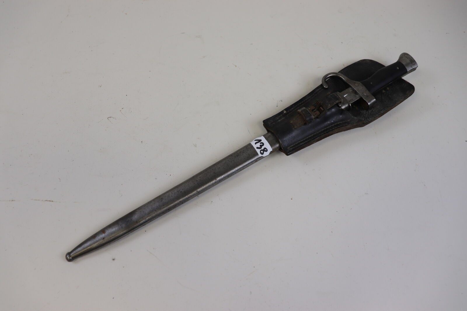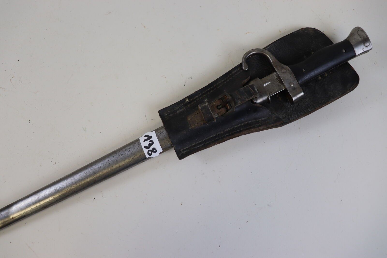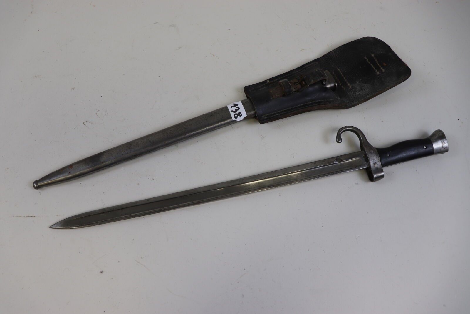 France Bayonet, model 1892. Iron scabbard. Leather scabbard (oxidation, wear, accidents, missing parts).