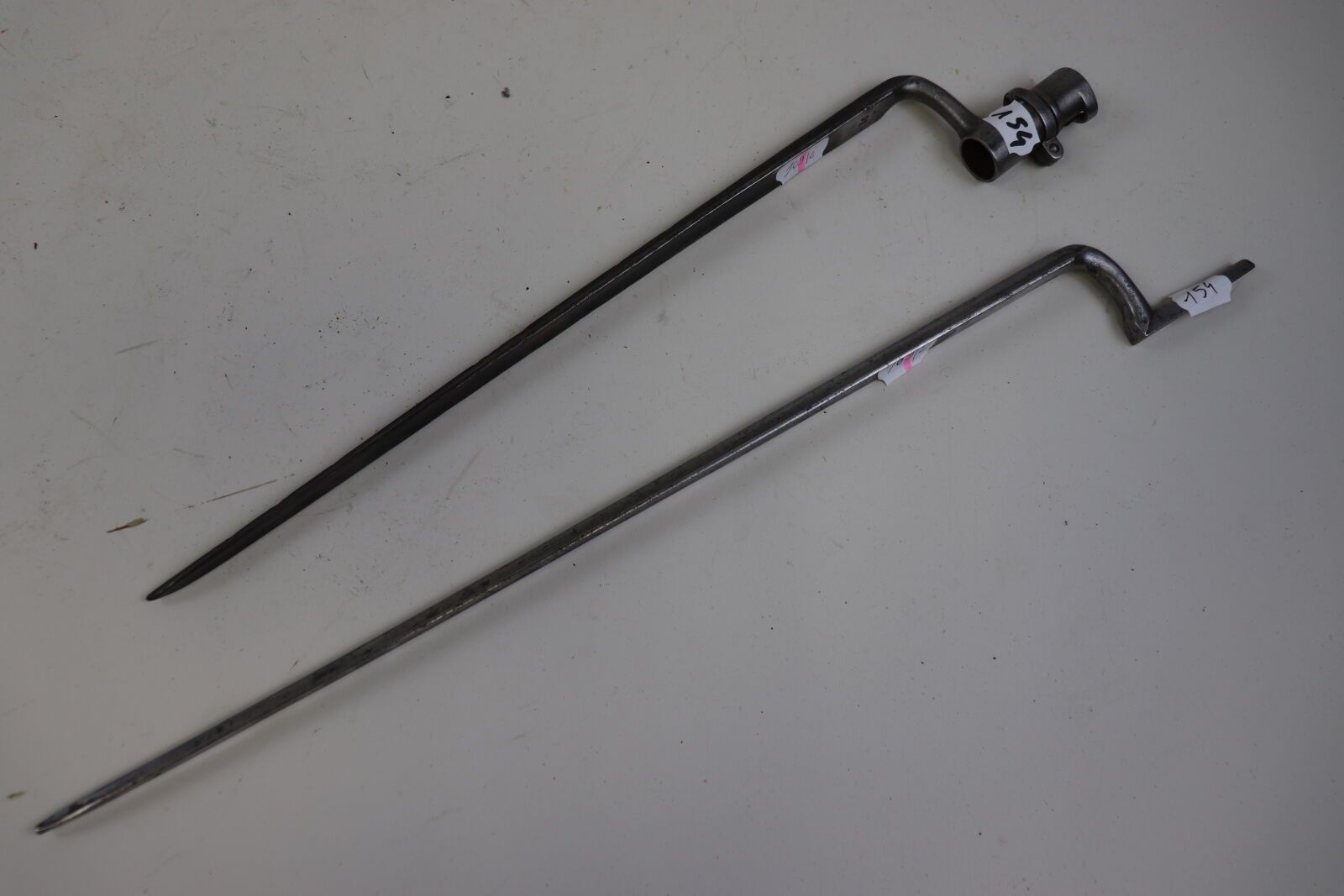 Miscellaneous Set of 2 bayonets, one with triangular blade and socket, the other with groove. (oxidation)