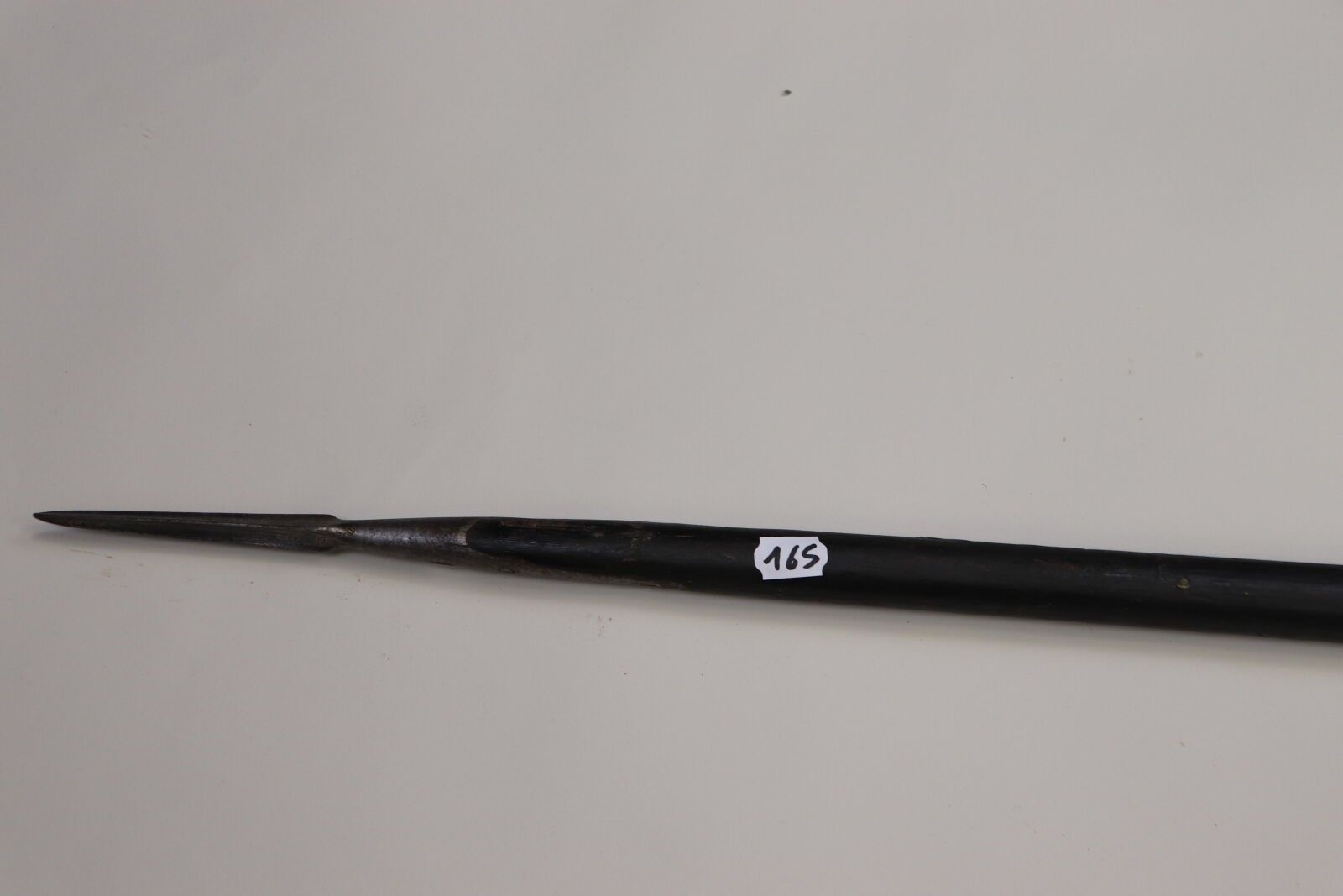 Cavalry lance, model 1816. Triangular iron with two asymmetrical braces, stamped with the anchor. Shortened shaft in blackened wood (oxidation).